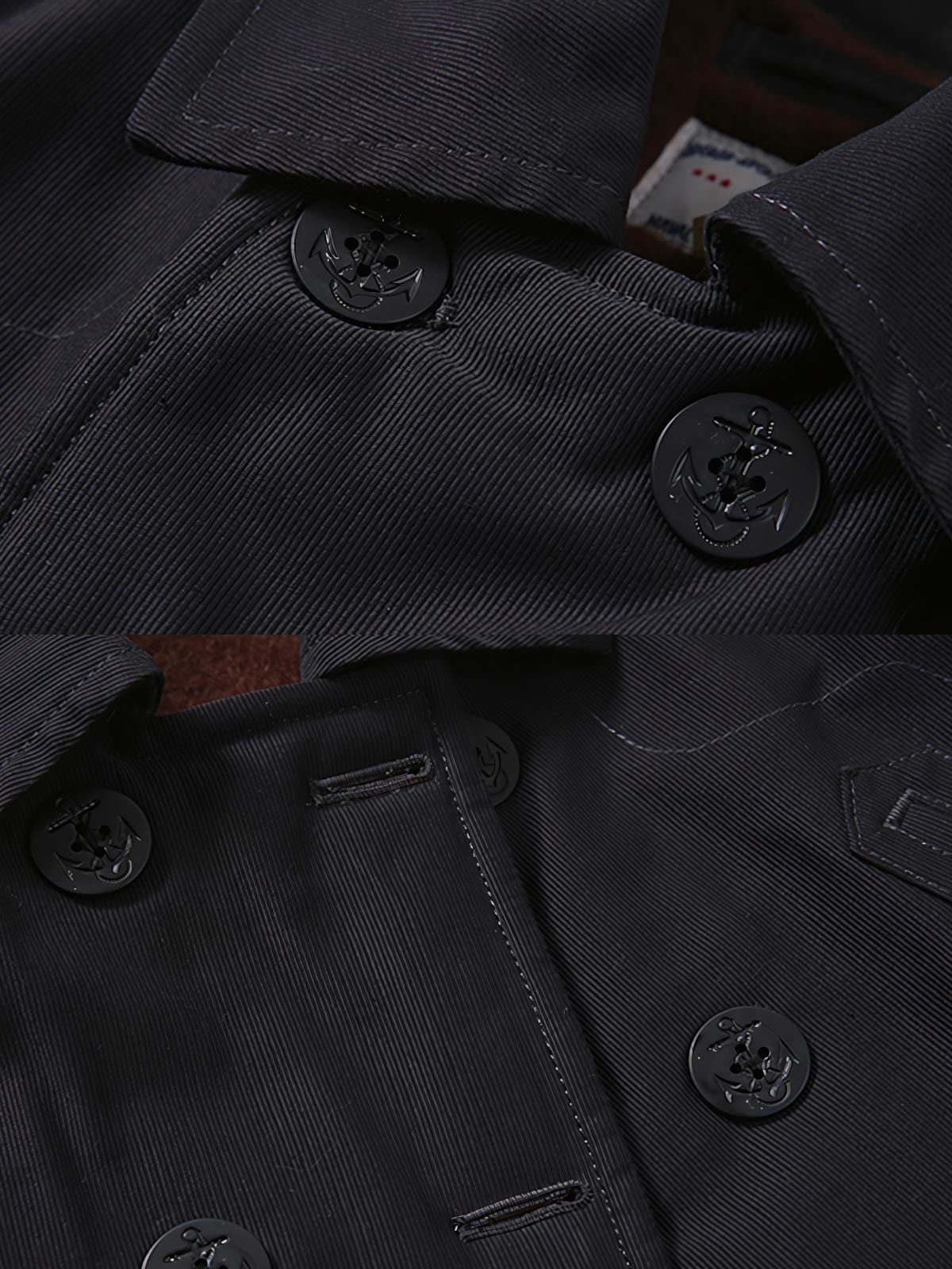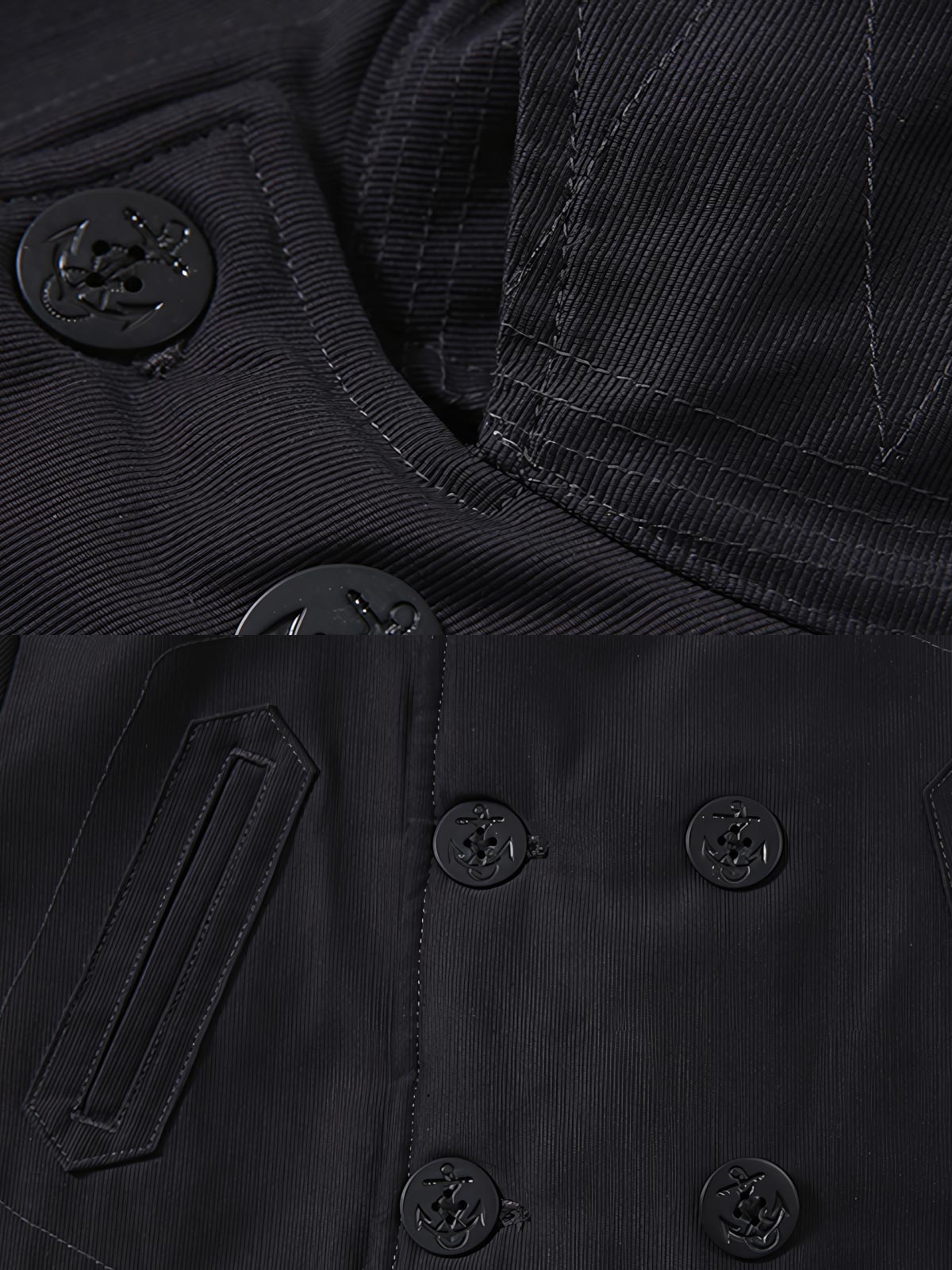このジャケットはアメカジとクラシックなデッキジャケットのデザイン要素を融合しており、海軍の制服の整然とした実用性を受け継いでいます。95%のウールは、寒い天気の中でも暖かさを保つことを保証し、デッキジャケットの厚手デザインの特徴を反映しています。