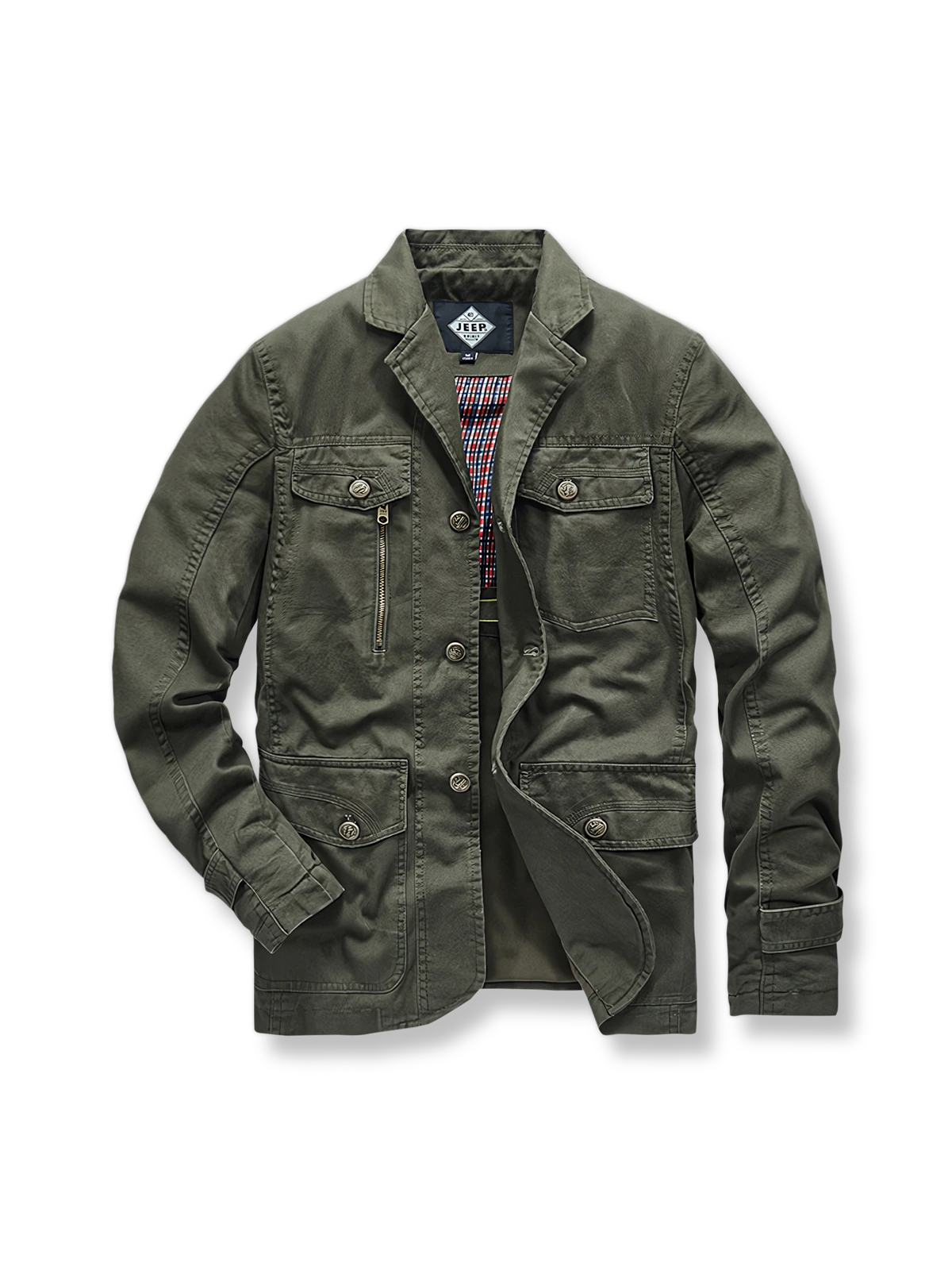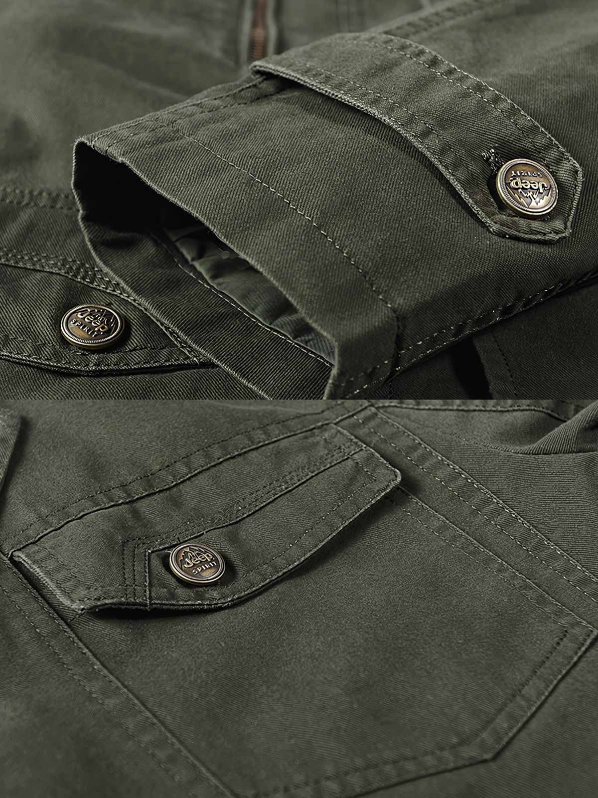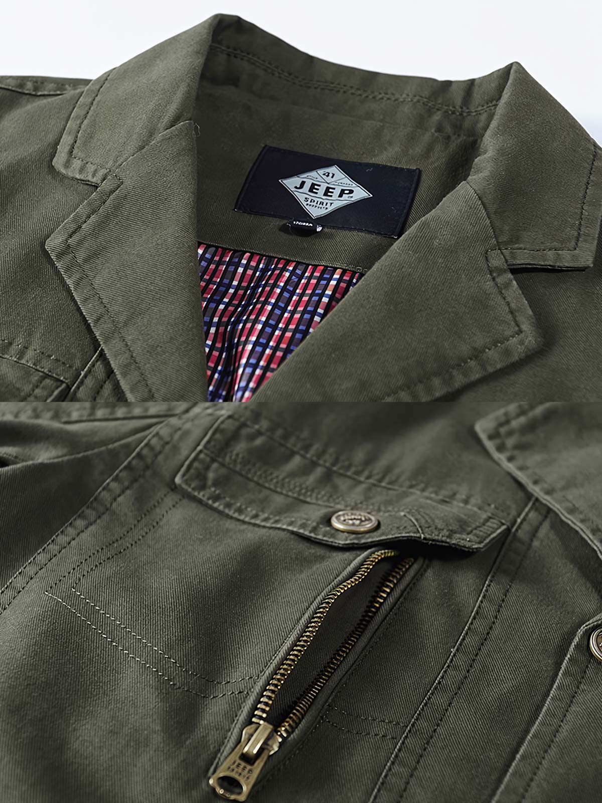 このアウトドアジャケットは、耐摩耗性と実用性を中心にデザインされており、現代のカジュアルウェアとアウトドア活動装備の融合を表しています。デザインはクラシックな軍用ジャケットを参考にし、頑丈な生地と実用的なポケットレイアウトを採用して、様々なアウトドア環境に適応しています。