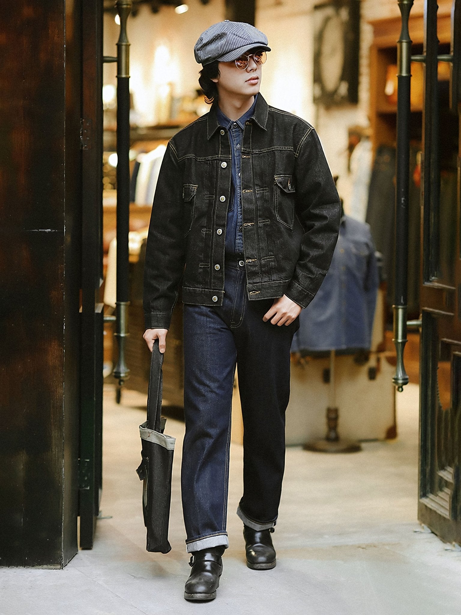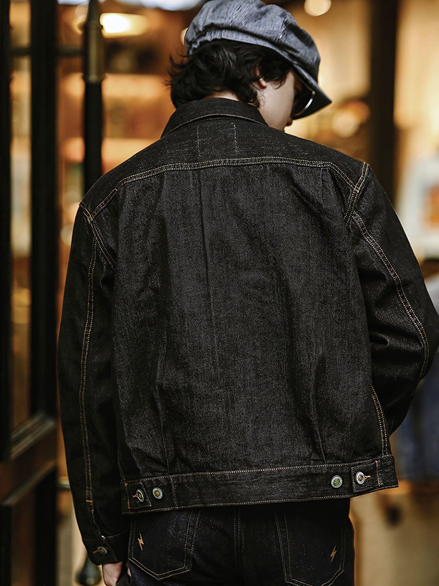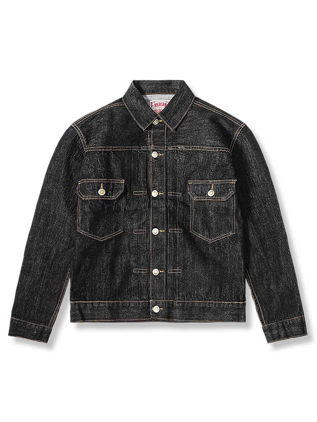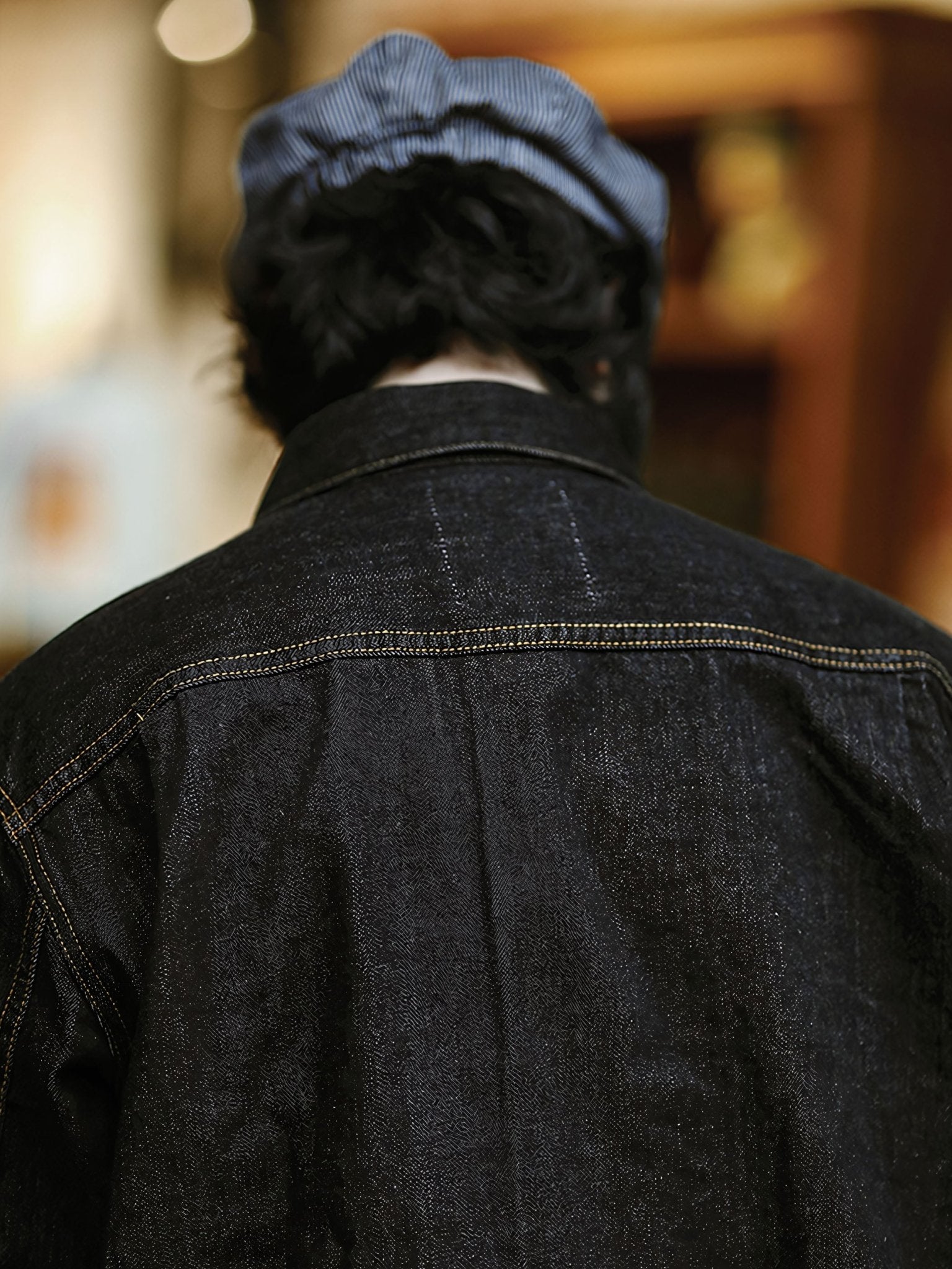このデニムジャケットは前ポケットがフラップとボタンで装備されており、日常の使用において安全性を提供しています。