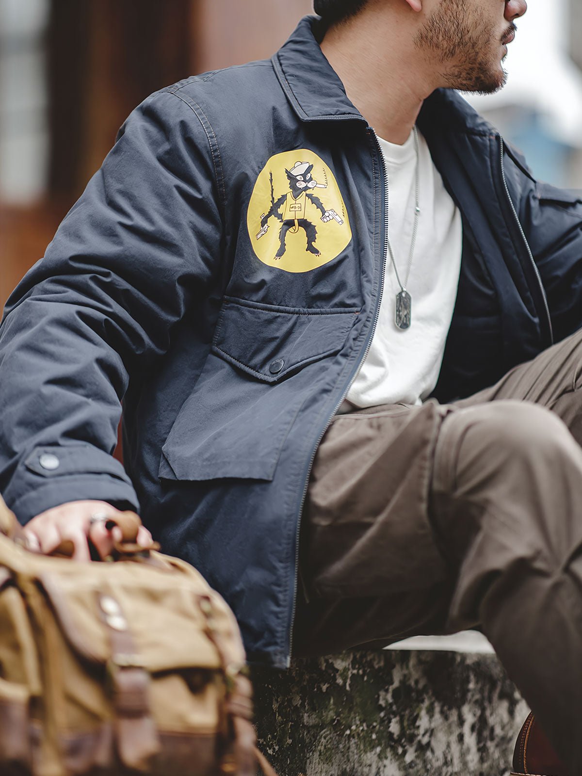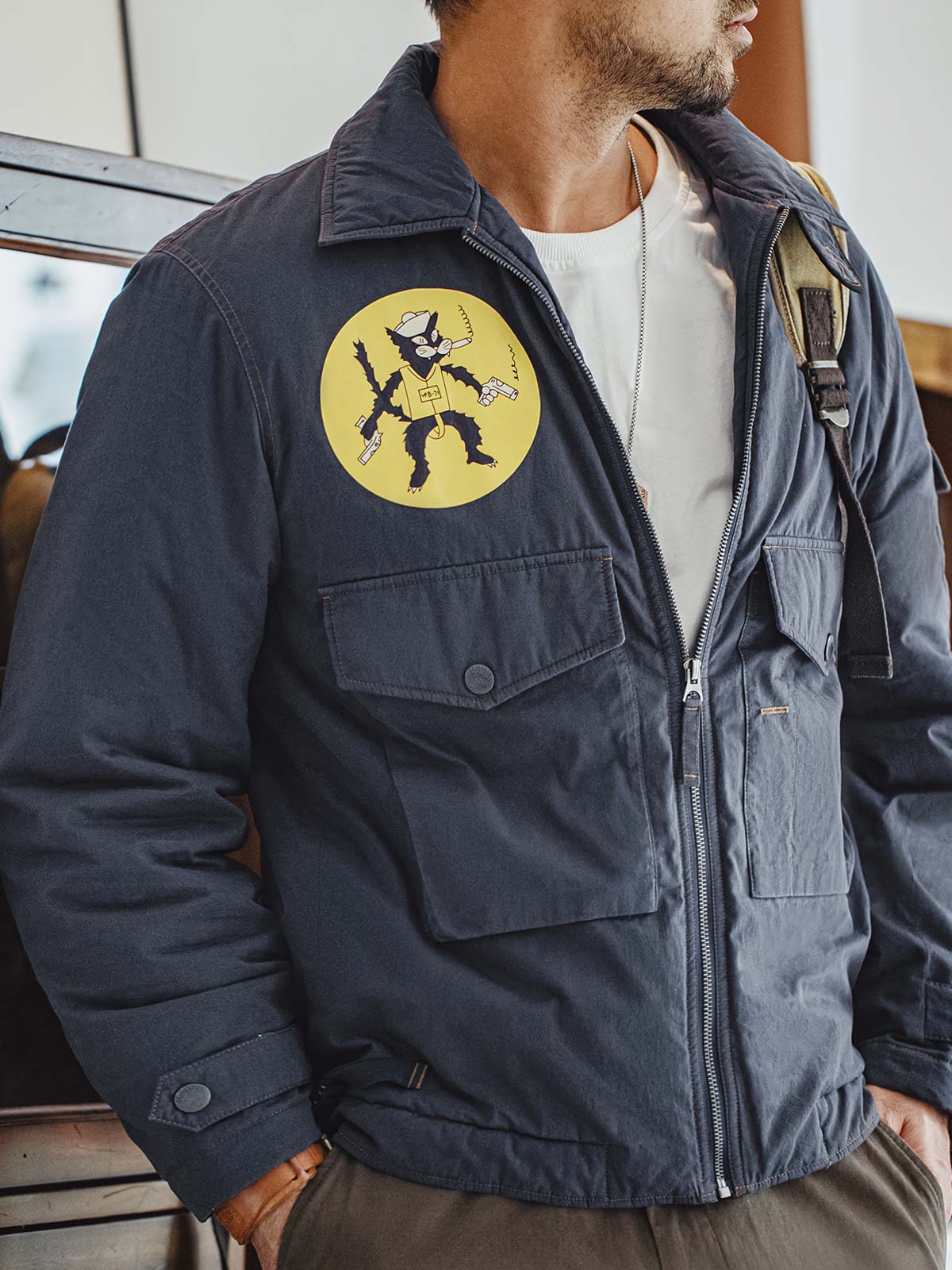 胸部の「VPB-71 BLACK CATS」デザインは、かつての「BLACK CATS」デザインをインスパイアしています。VPBはNAVYの「V」パトロール、「P」ボンバー、「B」の71部隊の略称で、襟の仕様には30年代の特徴的なチンストラップが付属しています。