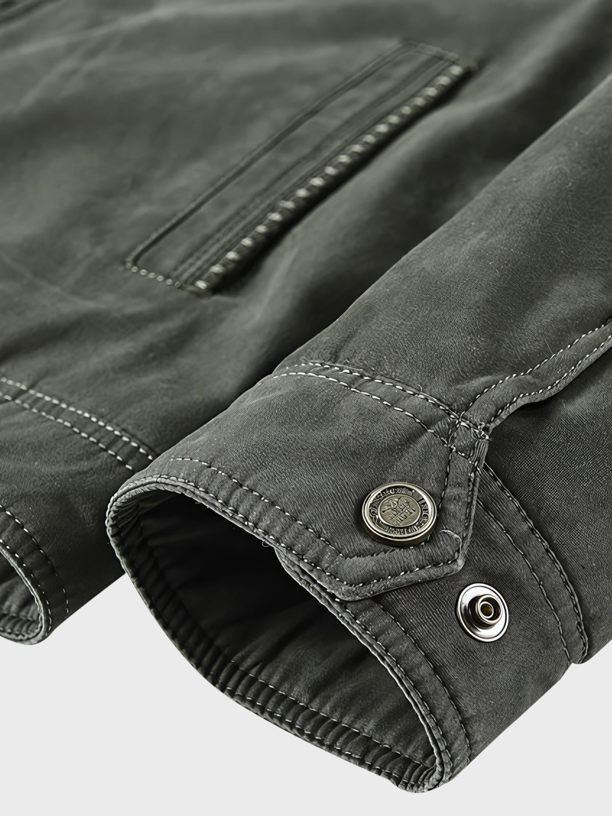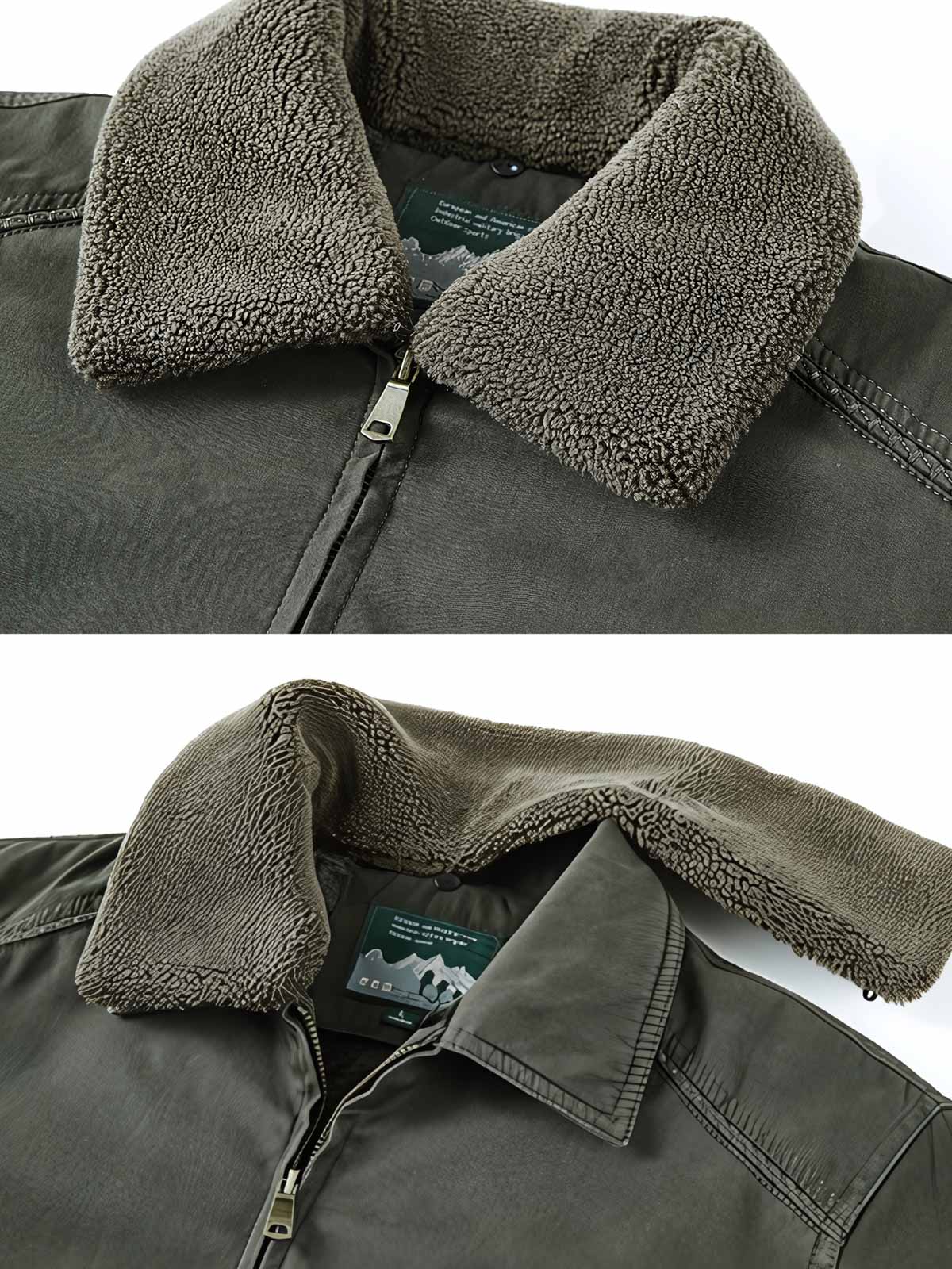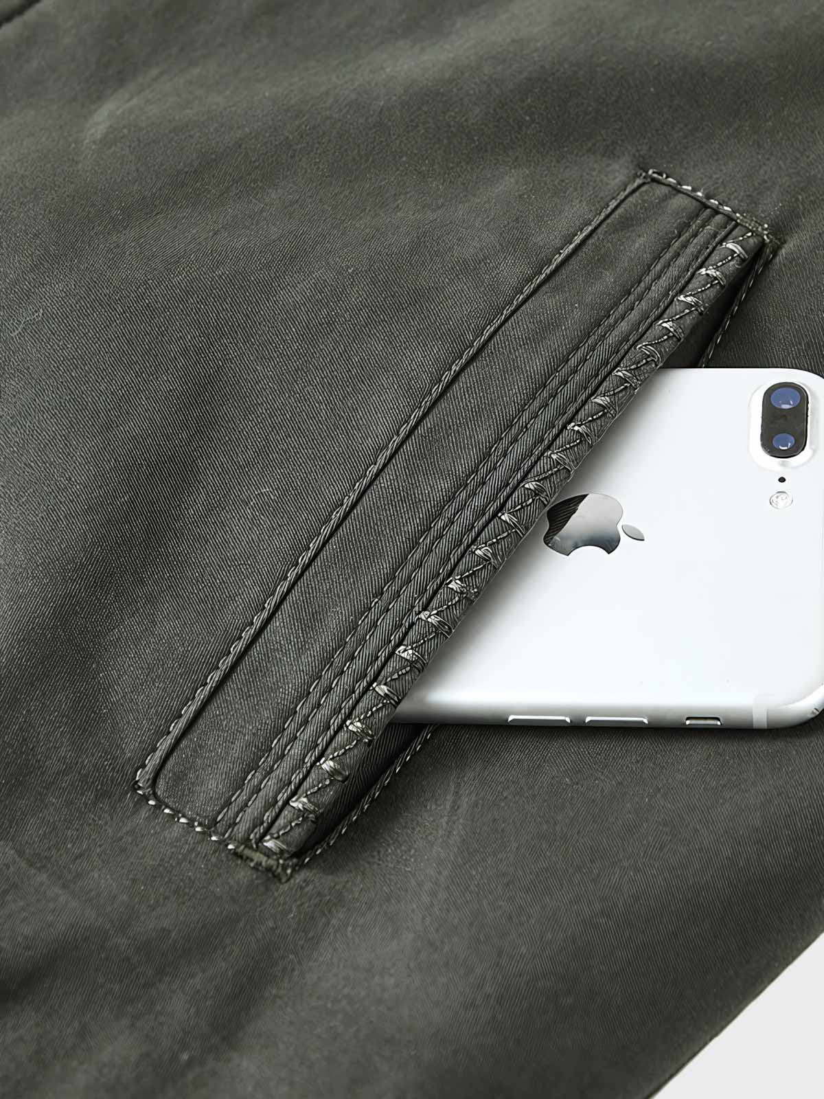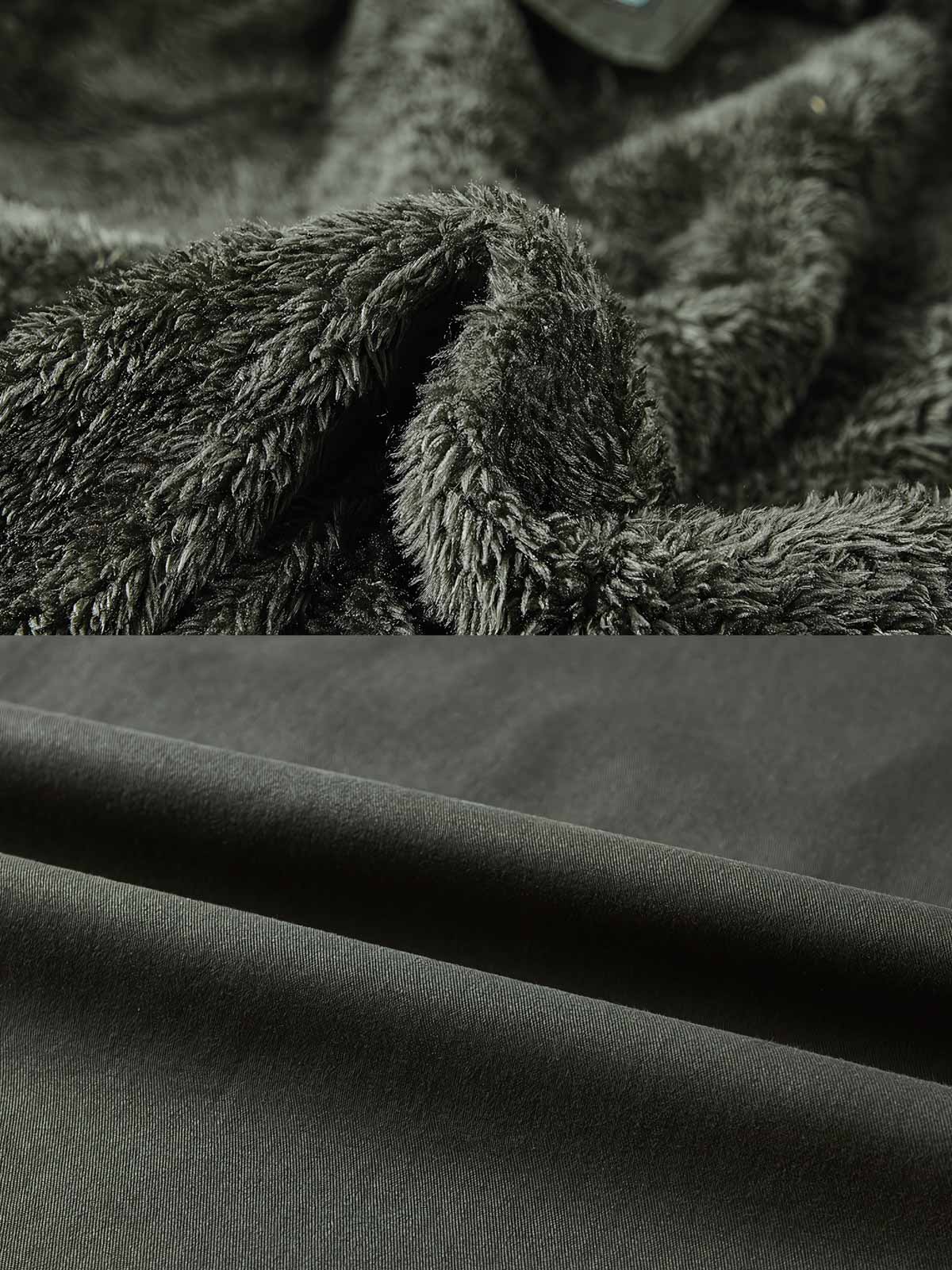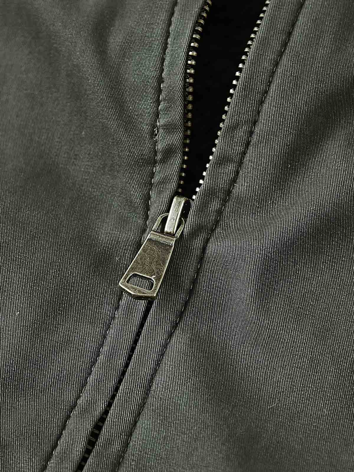 ジャケットのコットン素材は、耐摩耗性とメンテナンスの容易さを提供するために、綿と合成繊維を組み合わせています。二重縫いのポケットや耐久性のあるジッパーなど、細部にわたる工夫は、耐久性と機能性への配慮を反映しています。