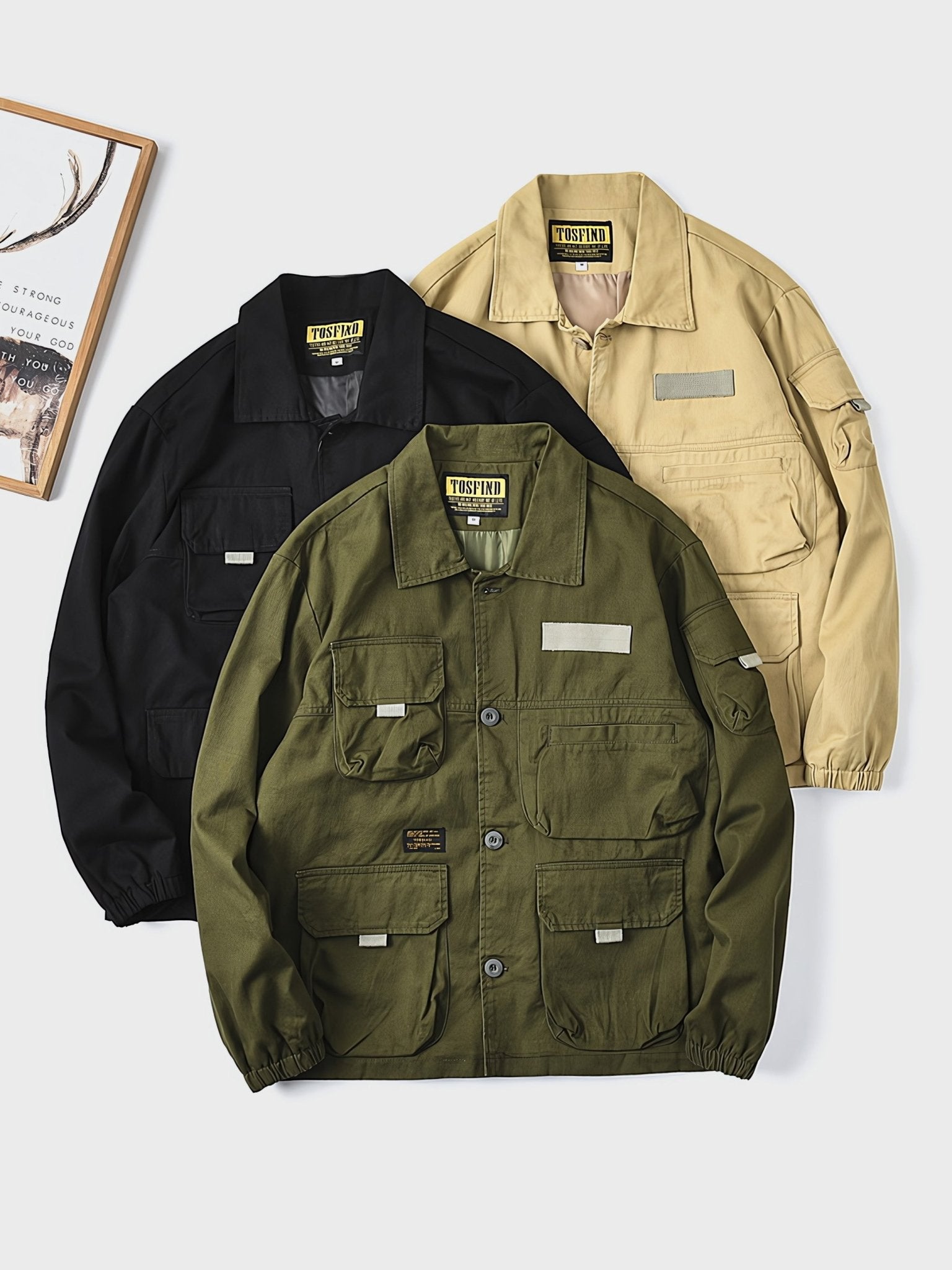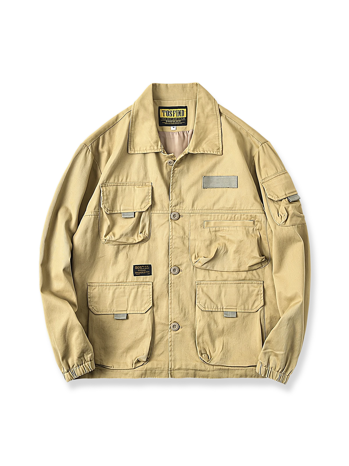 ウォッシュ加工を施したワークジャケットはレトロな雰囲気で、春と秋に非常に合うです。
