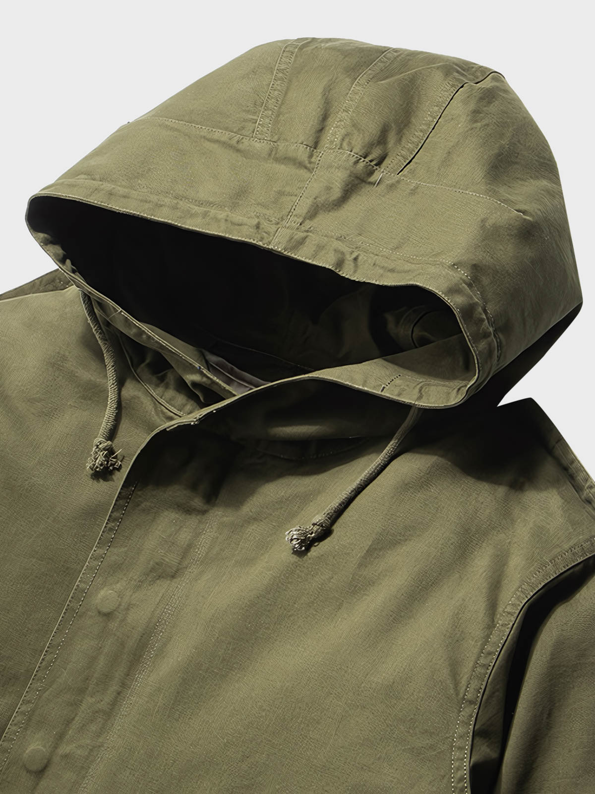このコートのミリタリーディテールとレトロスタイルは、ジーンズやブーツとの組み合わせに最適で、アウトドアアクティビティや日常着に適しています。ライナーは暖かい天候で単独で着用することができ、また冬の追加保温層としても機能します。