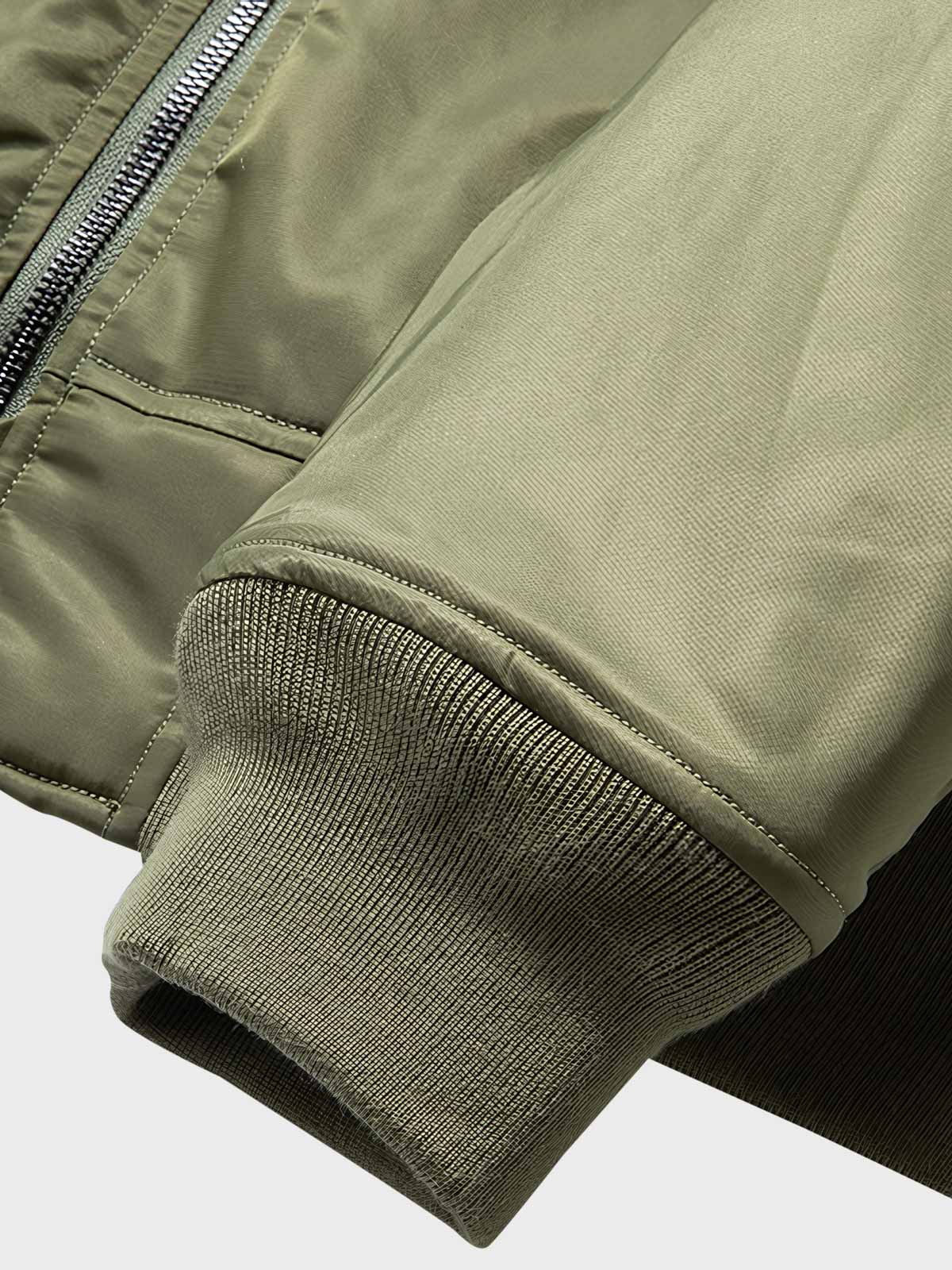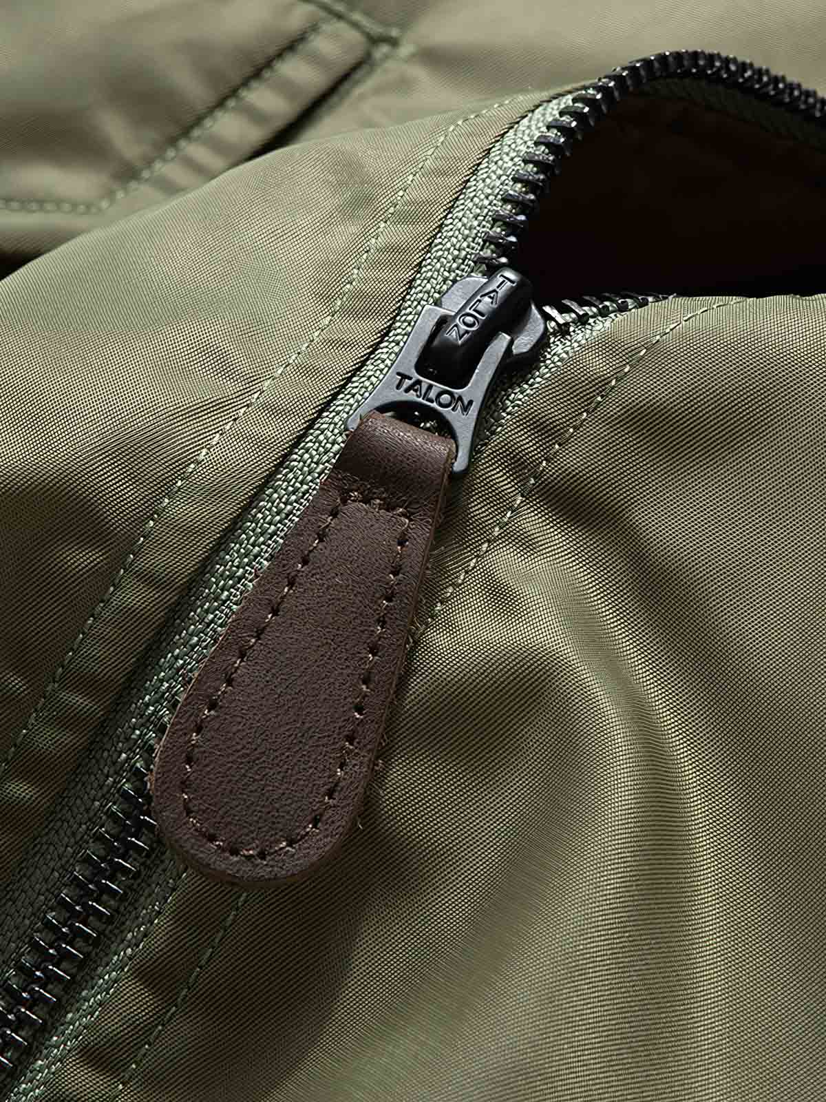 ナイロン素材の広範な使用は、ジャケットの耐久性を高め、伝統的なレザーやコットンジャケットよりも軽くて丈夫です。リブニットの首、袖口、裾はフィット感を提供し、体温を保つのに役立ちます。