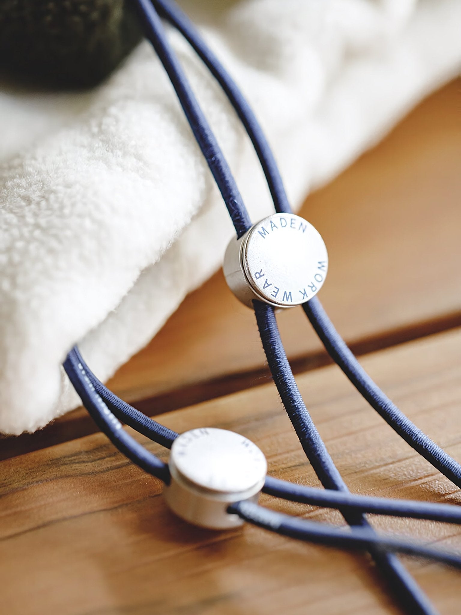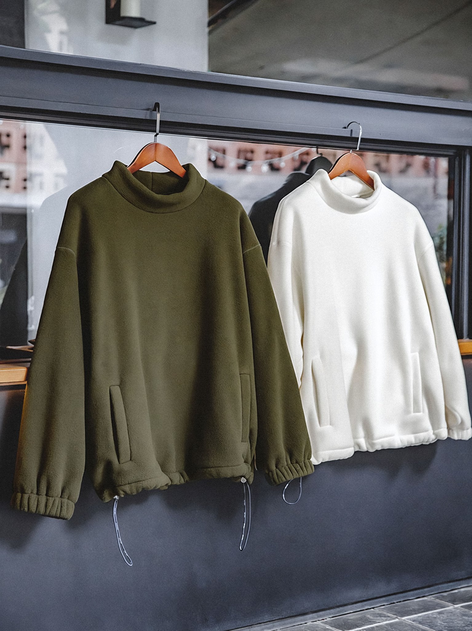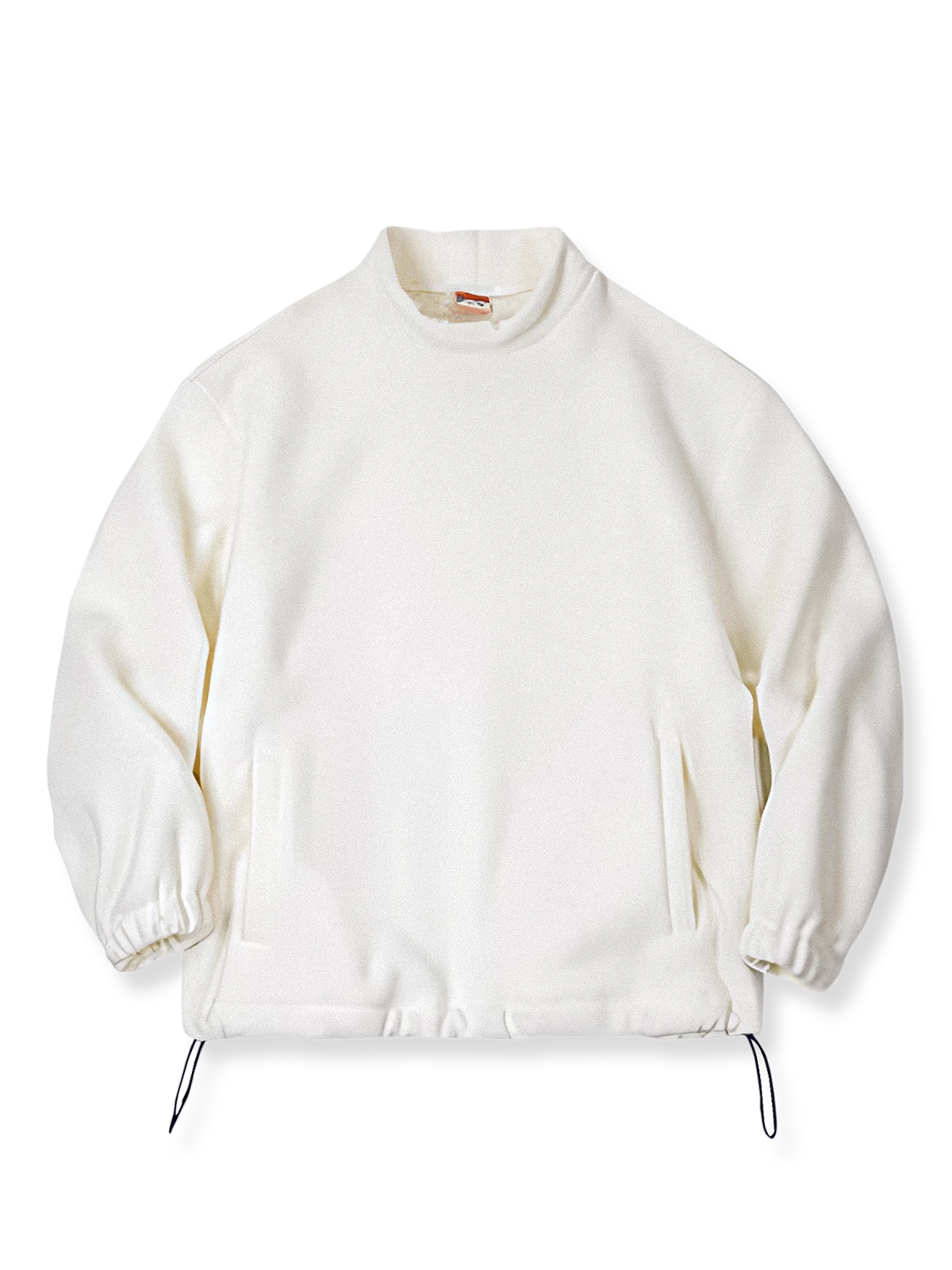風の侵入を防ぎつつ、首元をしっかり覆うミッドカラーデザインは、マフラーを必要としない暖かな秋冬のアイテムとして最適です。襟、裾、袖口のリブ編みが立体感を持たせ、動きやすさとスポーティな雰囲気を演出。ややゆとりを持った身幅とドロップした肩のラインが、トレンド感あふれるボックスシルエットを形作ります。裾のドローコードでシルエットの緩急を調整可能で、自由なスタイリングが楽しめます。
