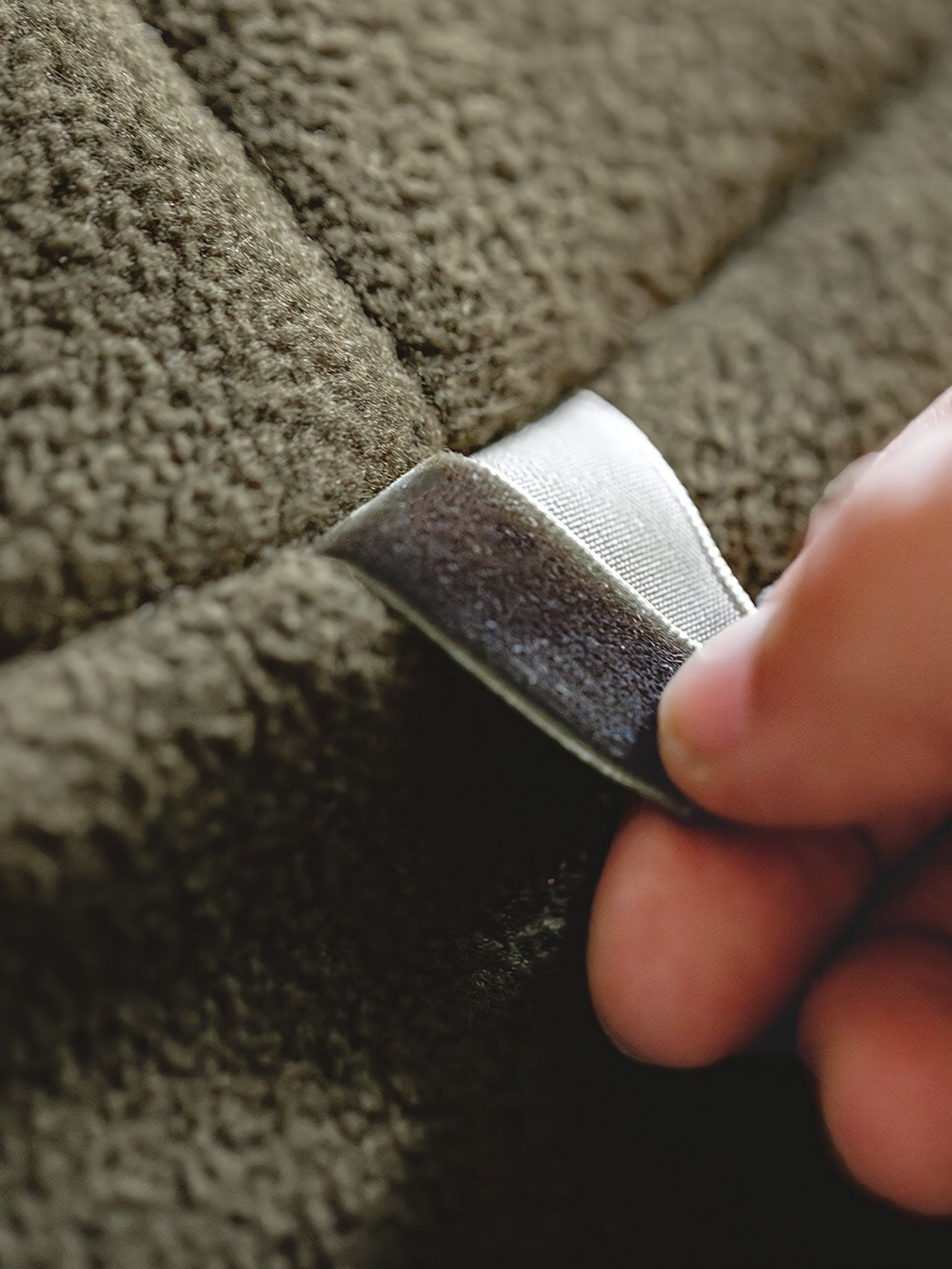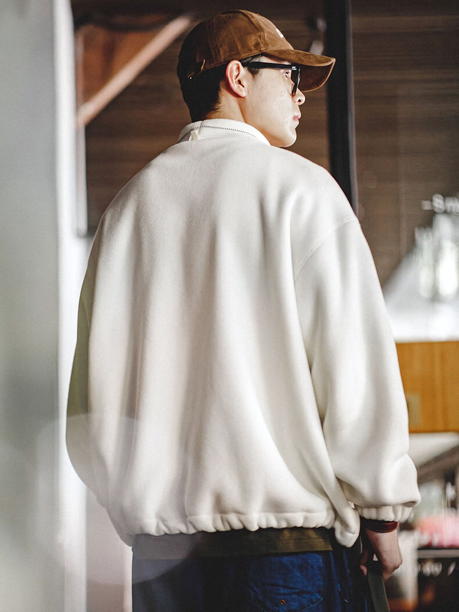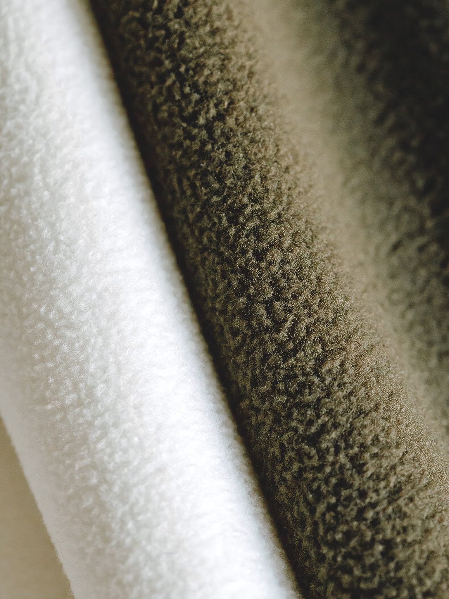 柔らかで肉厚のあるスウェット素材が、触れ心地の良さを提供します。軽量でありながら保温性と通気性に優れたポーラーフリース素材を使用しており、滑らかな触り心地でストレスなく着用できます。