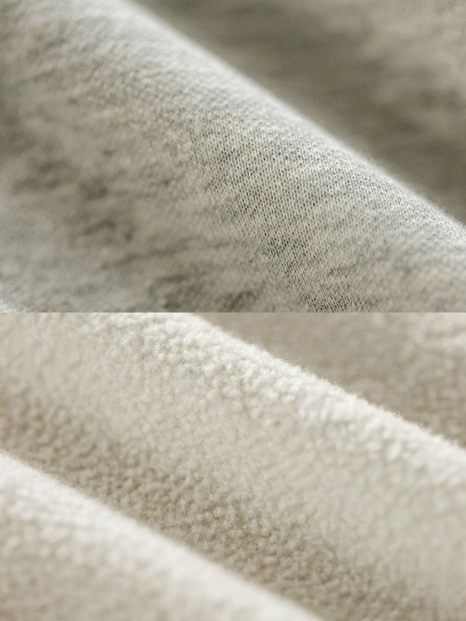 330gの一体型フリースは、65.5%がポリエステル、34.5%がコットンの組成で、表面にはグラデーション模様があり、内側は繊細なボアがあります。