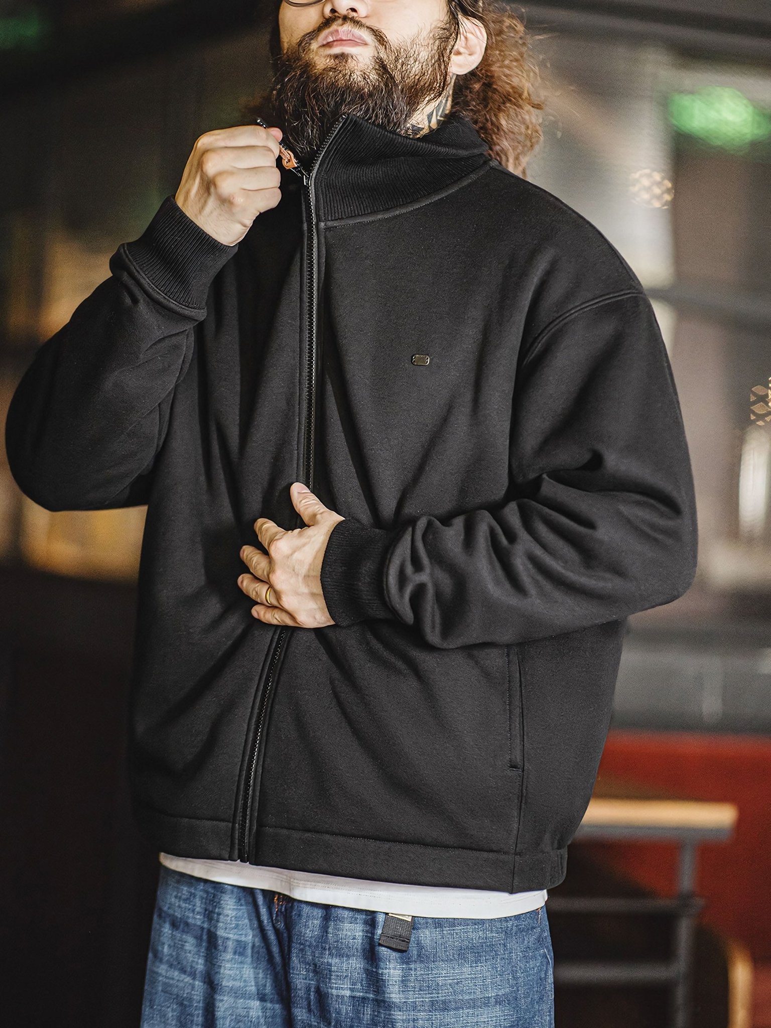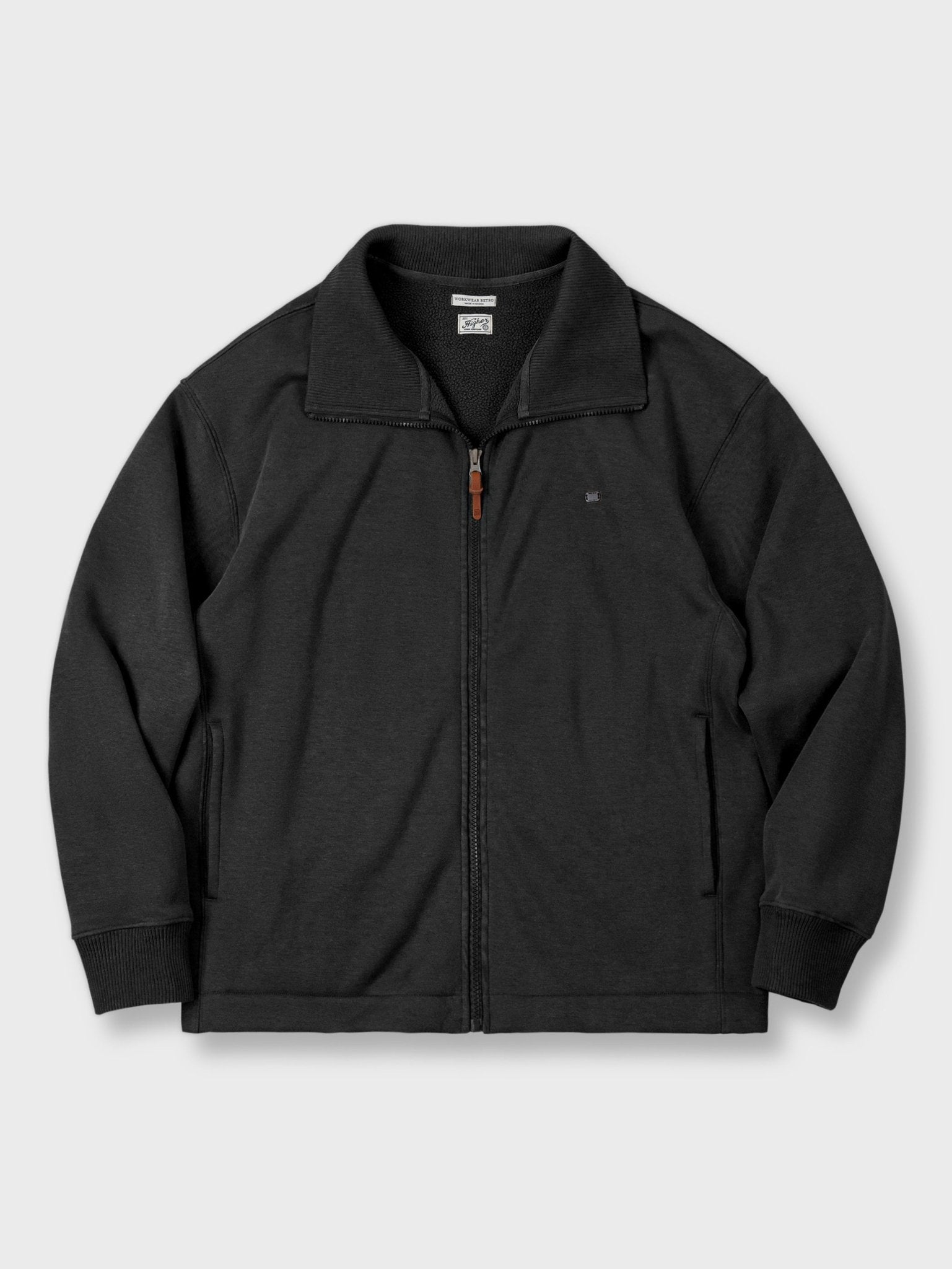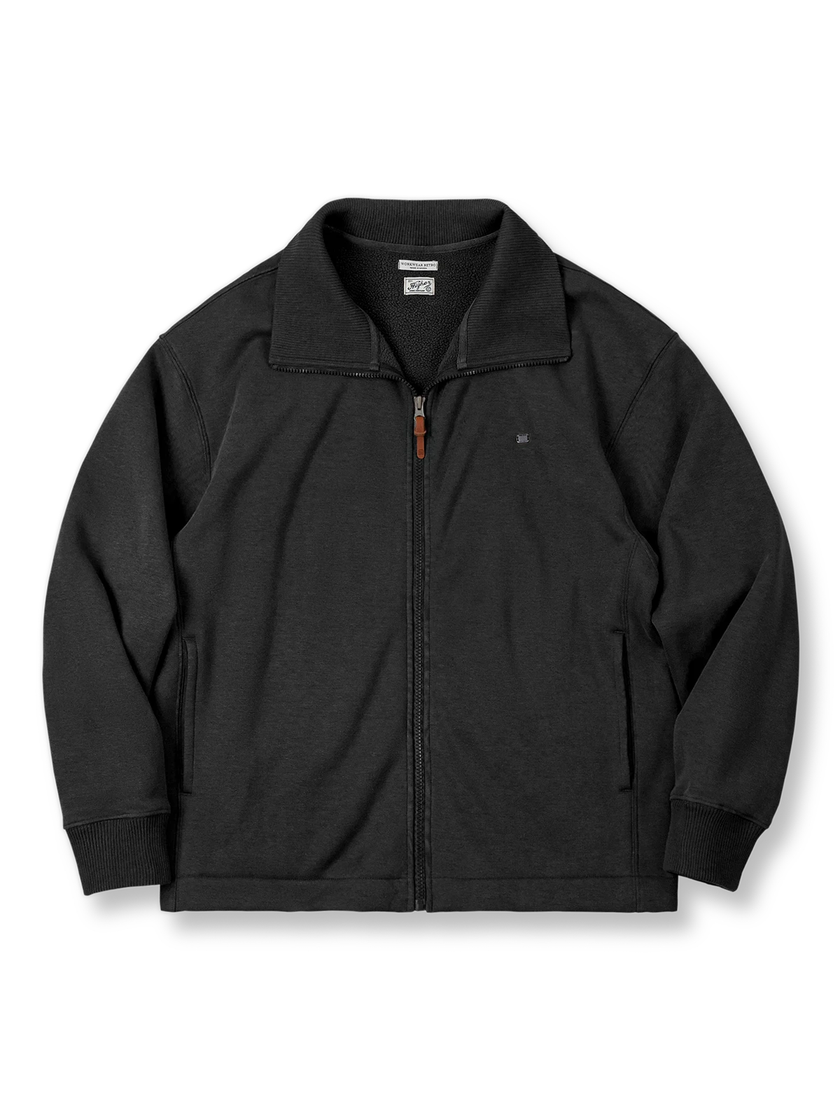 350g/mのダブルフェイス裏毛は、カスタムブレンド素材を使用し、内外で異なる編み技術が使用されています。外側は高密度の編みで、滑らかな手触りでボールができにくいです。内側はブークレで、保温性が向上し、軽快な着心地を提供します。
