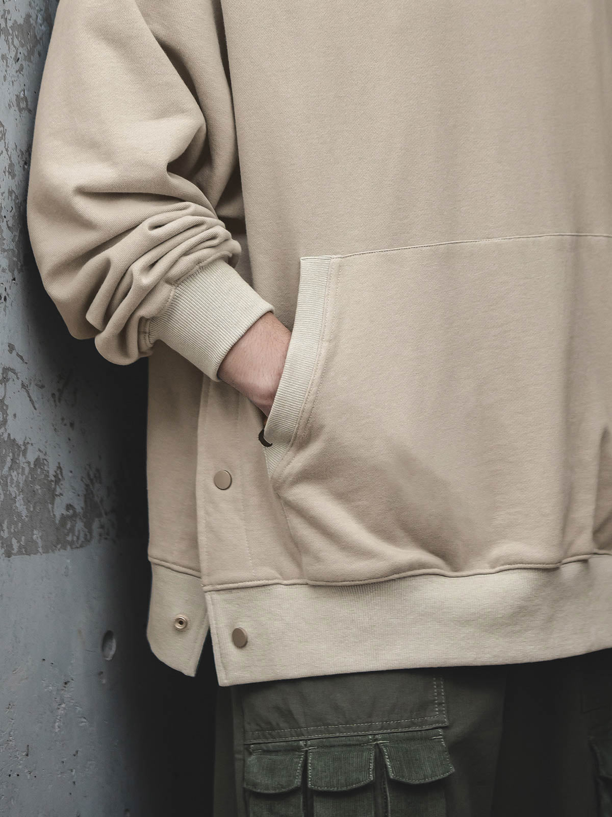 リラックスフィットのデザインは、着用者に追加の快適さと自由な動きを提供します。ヘビーウェイトの生地は保温性を追加し、涼しい天候やレイヤードスタイルの一部として最適です。
