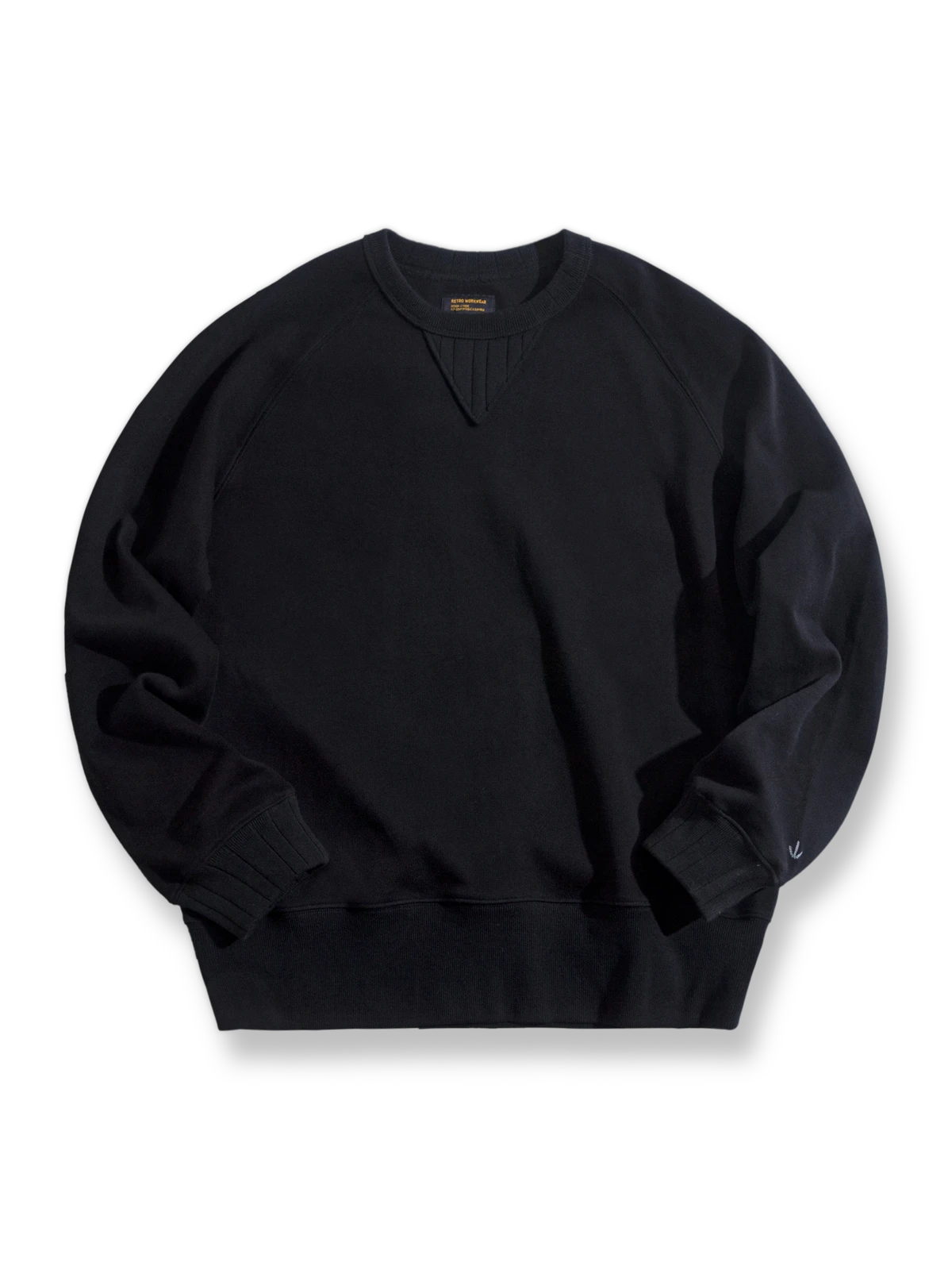 ヘビーウェイトコットン素材を使用し、このスウェットは厚手の生地で暖かさと耐久性を提供し、同時にコットンの天然の通気性を保持しています。ディテールには、クラシックなV型のパネルデザインが採用され、ネックラインの構造を強化する機能も果たしています。