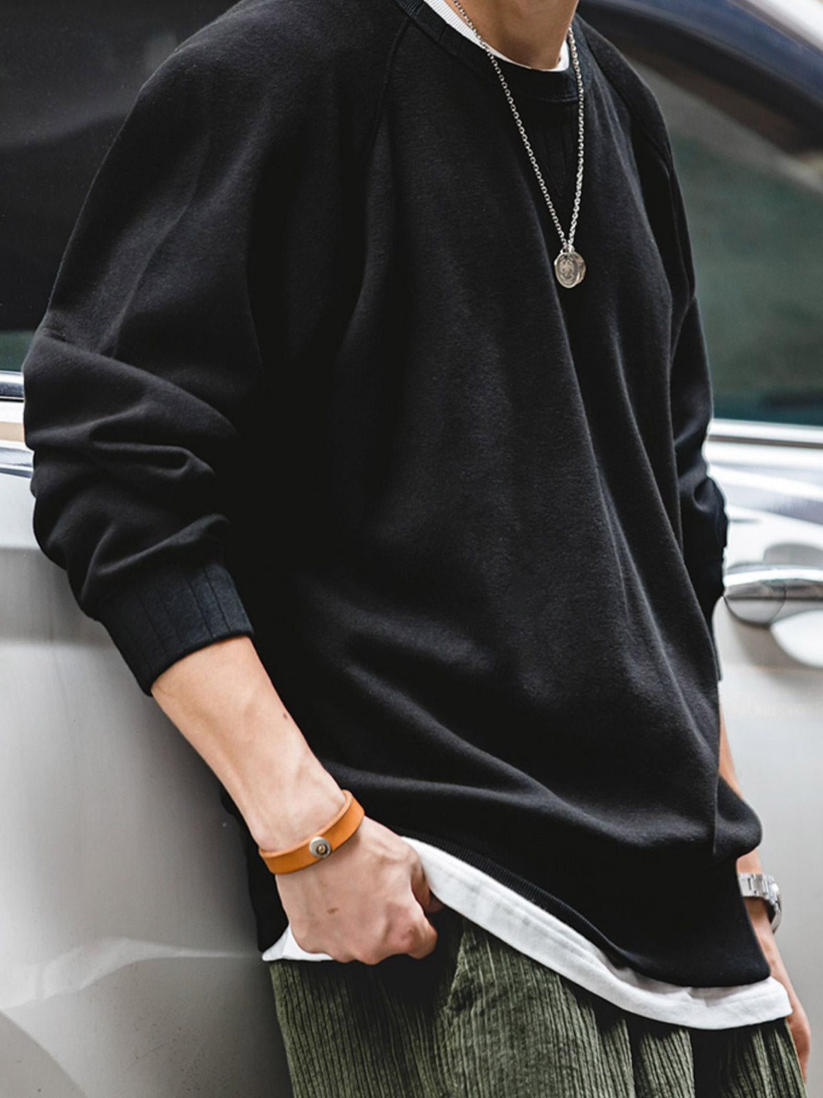 このスウェットは、様々な体型に適応し、活動の自由を確保するためにドロップショルダーのデザインを採用しています。袖口と裾のタイトな伸縮性が形を保持し、保温性を向上させる一方で、レトロなアメリカンスタイルも強調しています。
