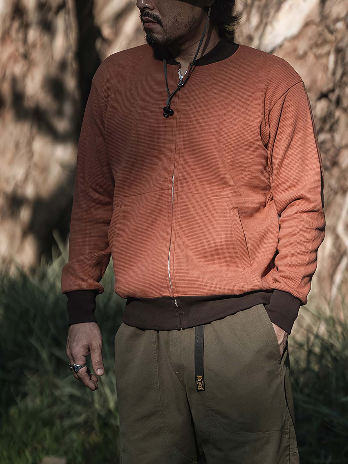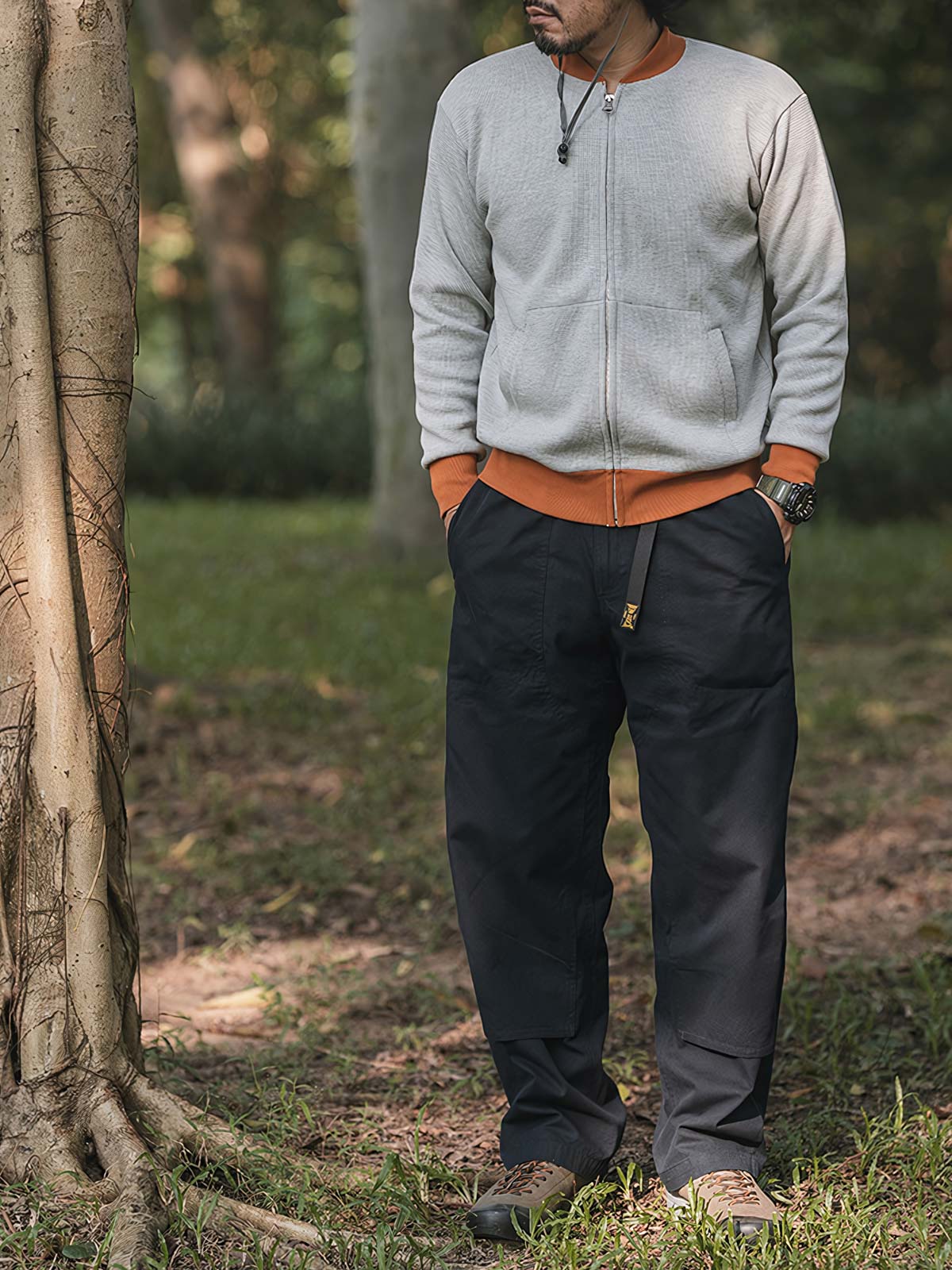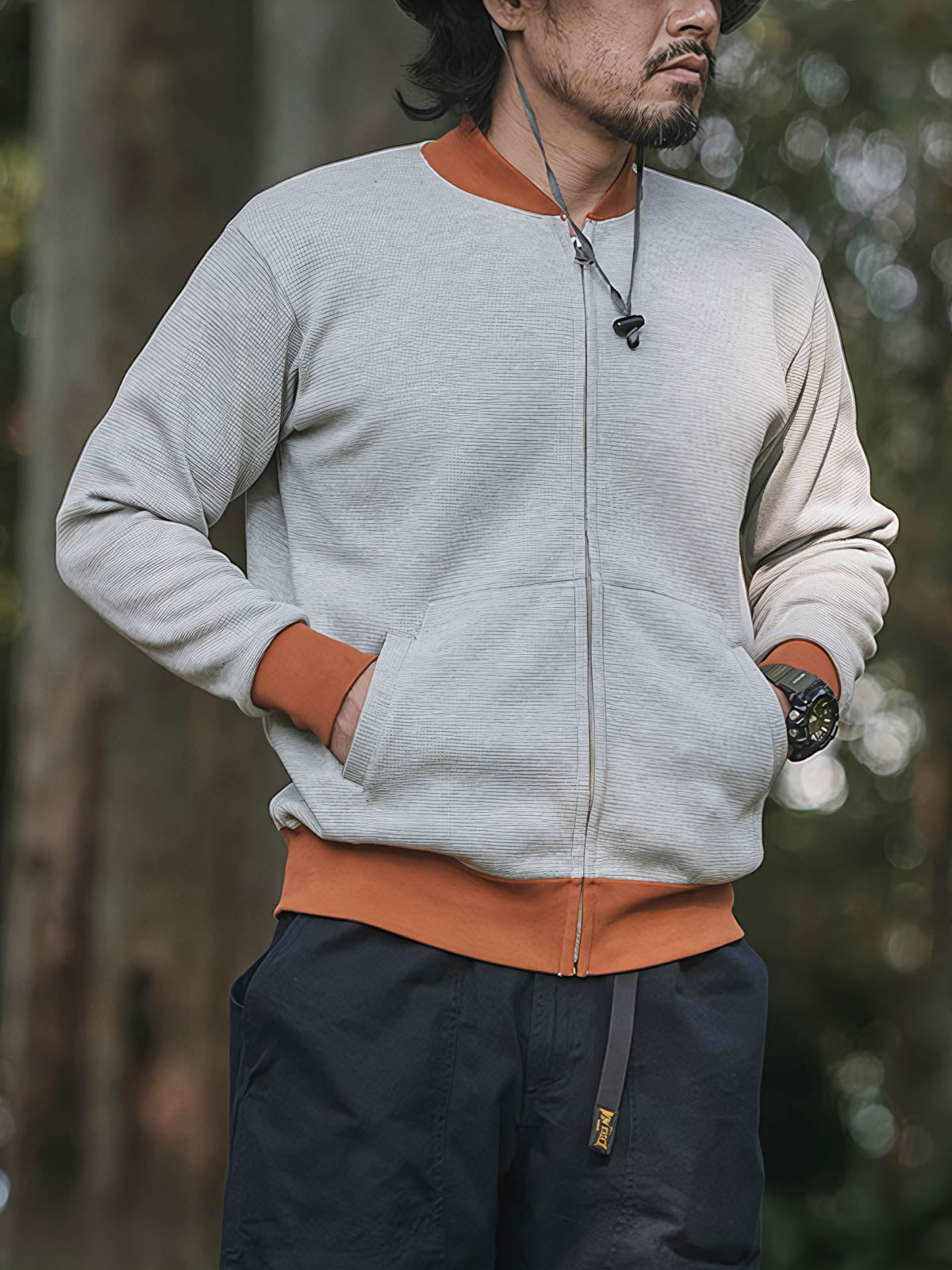 柔らかく肌触りの良い高品質なコットン素材を使用しており、耐久性にも優れています。袖口と裾のリブ編み、カラーの配色が特徴的です。