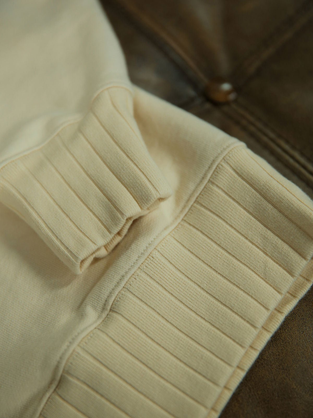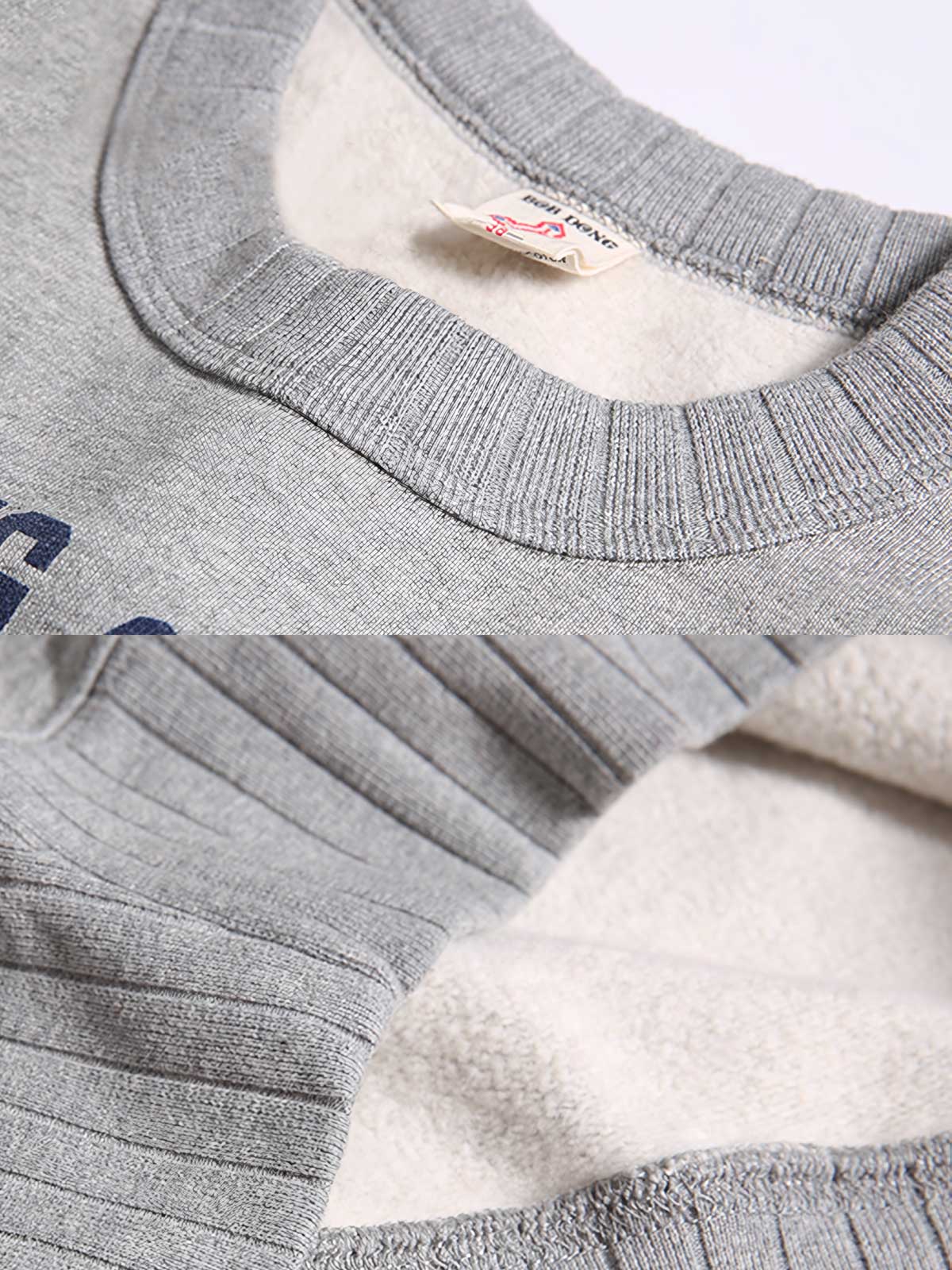 スウェットはカスタムオーダーのダブルヤーンファブリックを使用しており、手触りがしっかりしていて丈夫です。厚みのある生地は優れた保温性を提供します。サイズ感は適度で、快適な着心地を確保しつつも、流行感も失われていません。特別注文のフラットマシン(リブ編み)は、衣服の堅牢さと耐久性を保証します。
