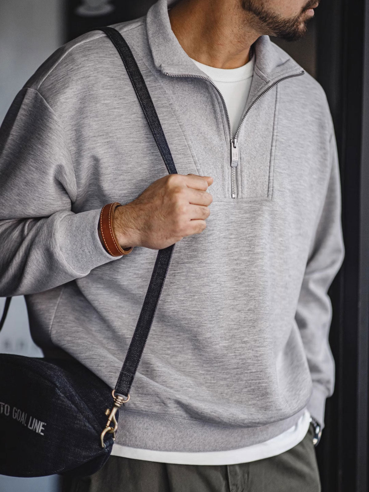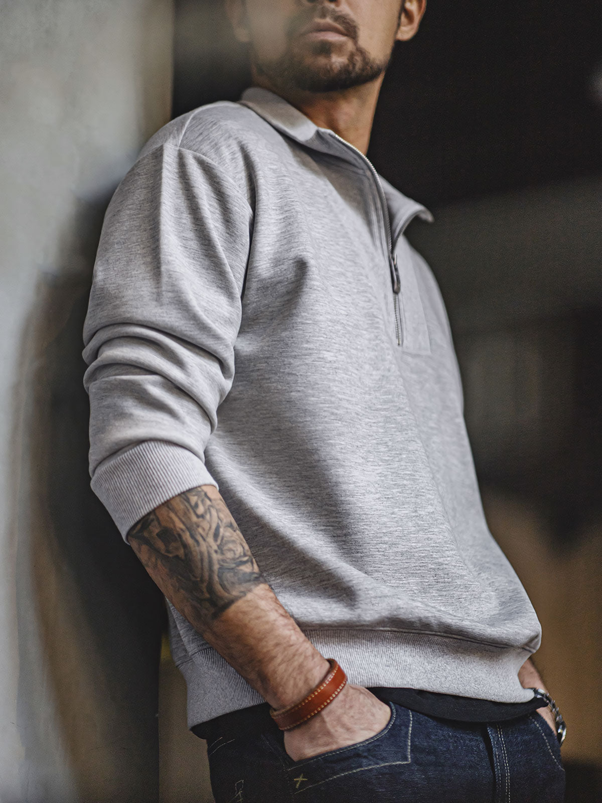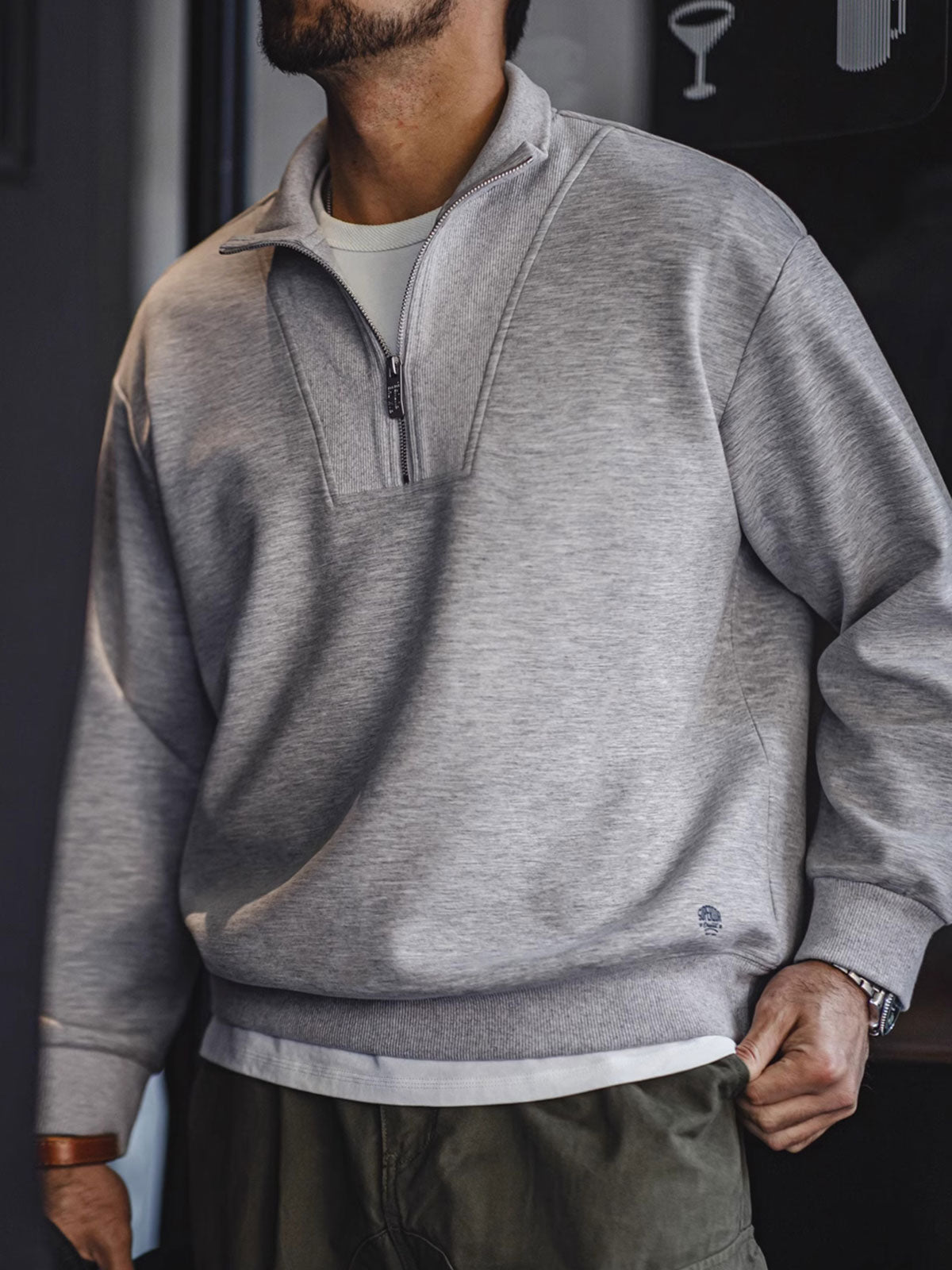 このスウェットシャツは、Ivyスタイルの洗練されたエッセンスを現代的に解釈し、新たな次元を加えています。20世紀初頭のアメリカ東海岸エリート大学のドレスコードであるIvyスタイルの特徴を受け継ぎ、このスウェットシャツは、控えめでありながらエレガントなスタイルを維持しています。特に、トラペゾイド形状のスタンドカラーは、伝統的なスウェットシャツのデザインに新鮮な動きを加え、立体的な層次感を演出し、様々な社交シーンで注目を集めるスタイルを実現します。