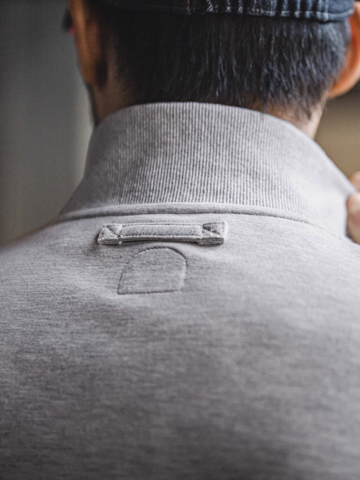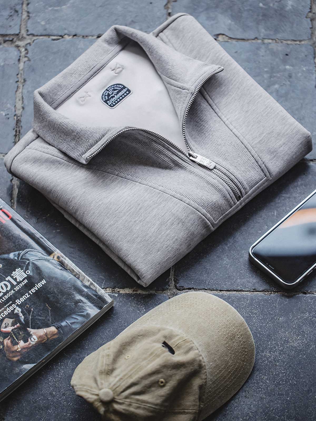 版型に関しては、適度なフィット感を採用し、自由な動きをサポートするとともに、様々な体型に適応します。ハーフジップのデザインは、着用の柔軟性を高め、季節に応じてアウターとしてもインナーとしても機能します。