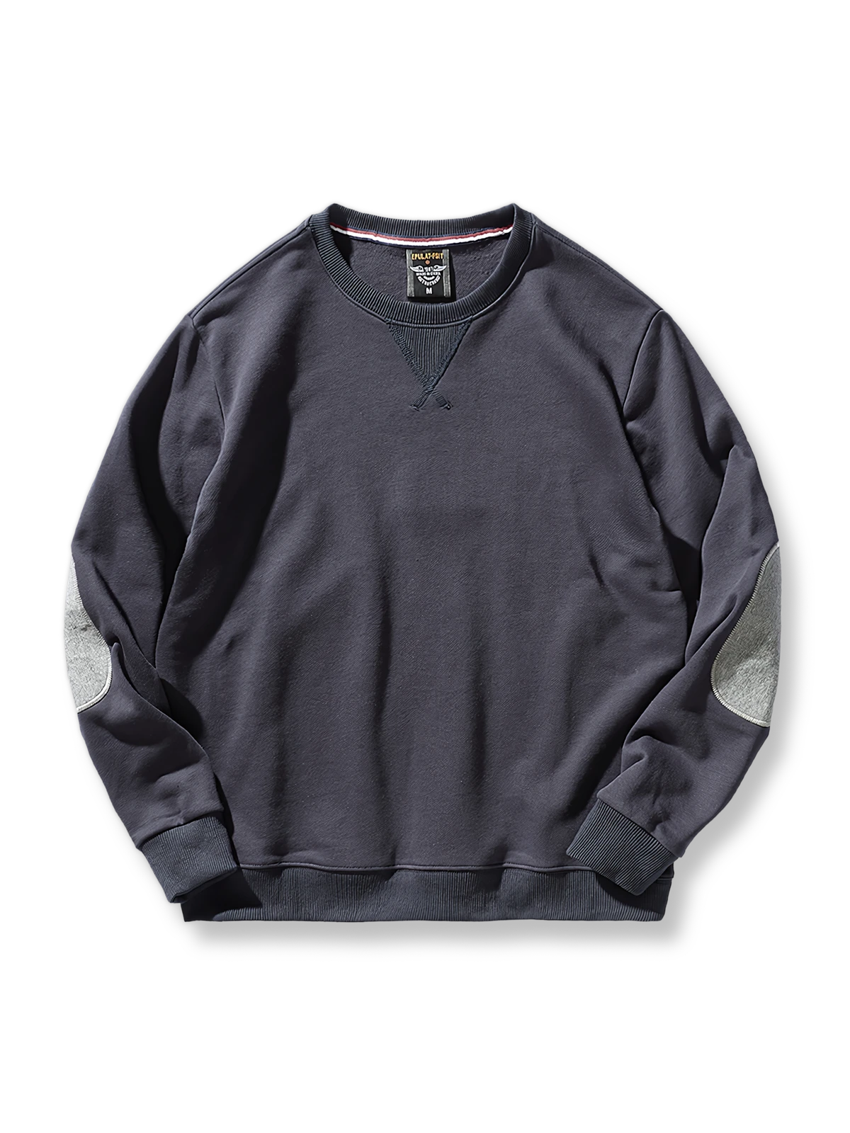 高コスパで快適なオールマイティースウェット。個性的なエルボーパッチデザインが魅力。