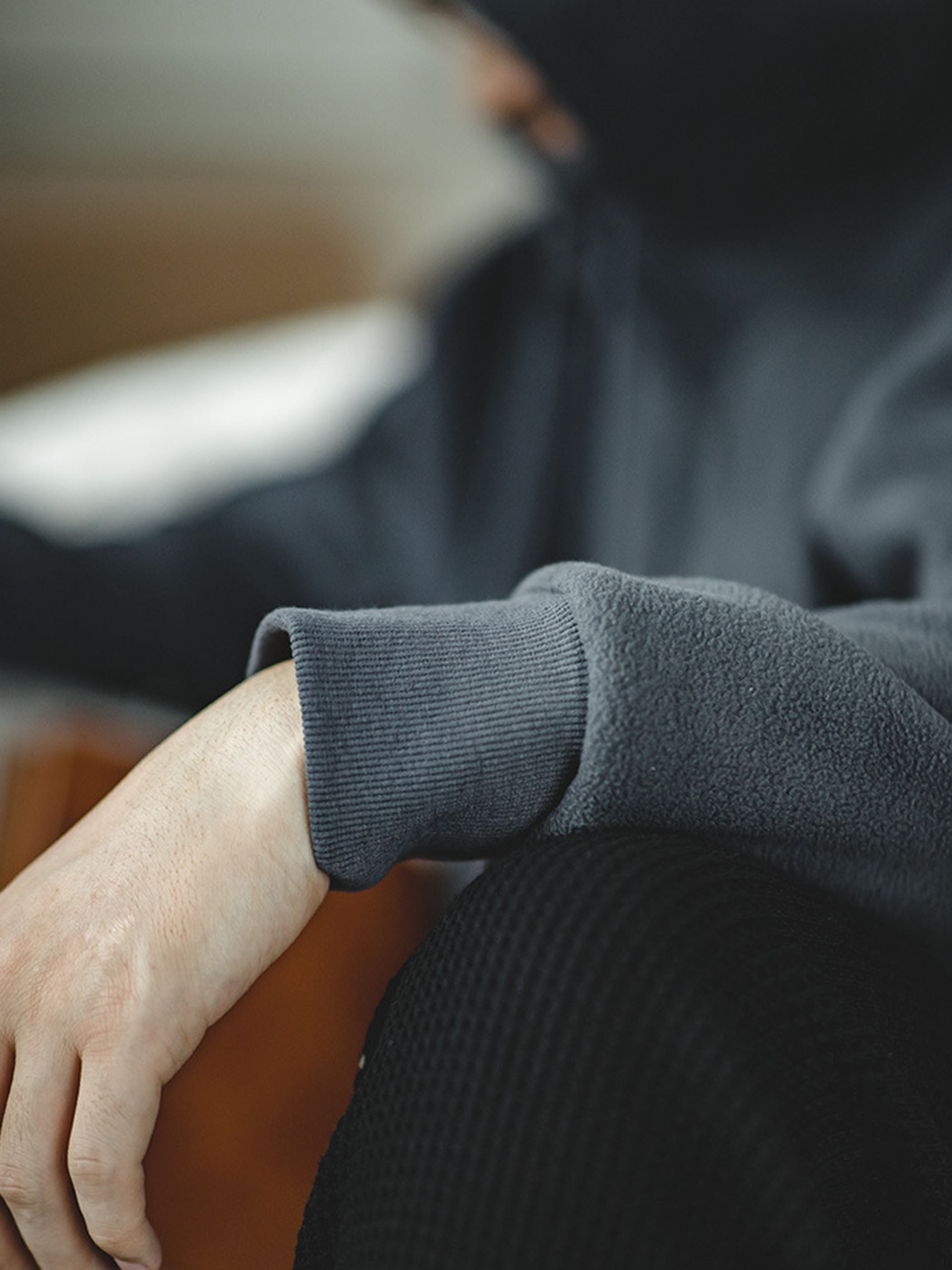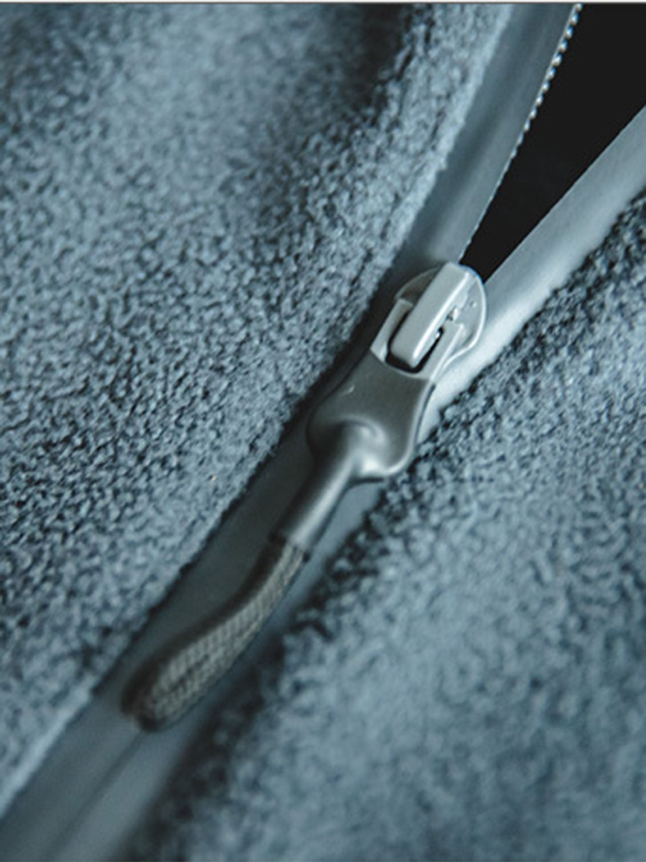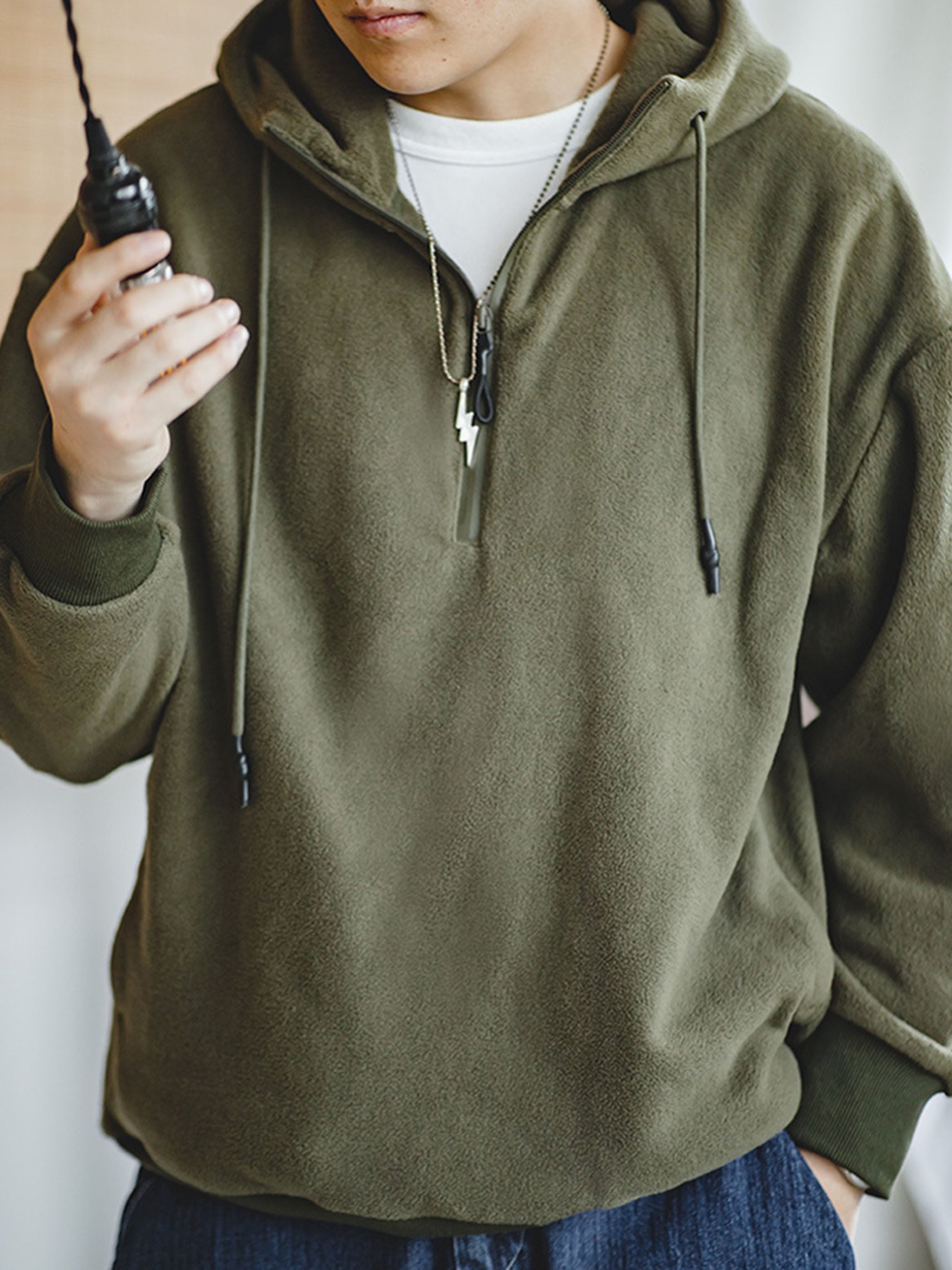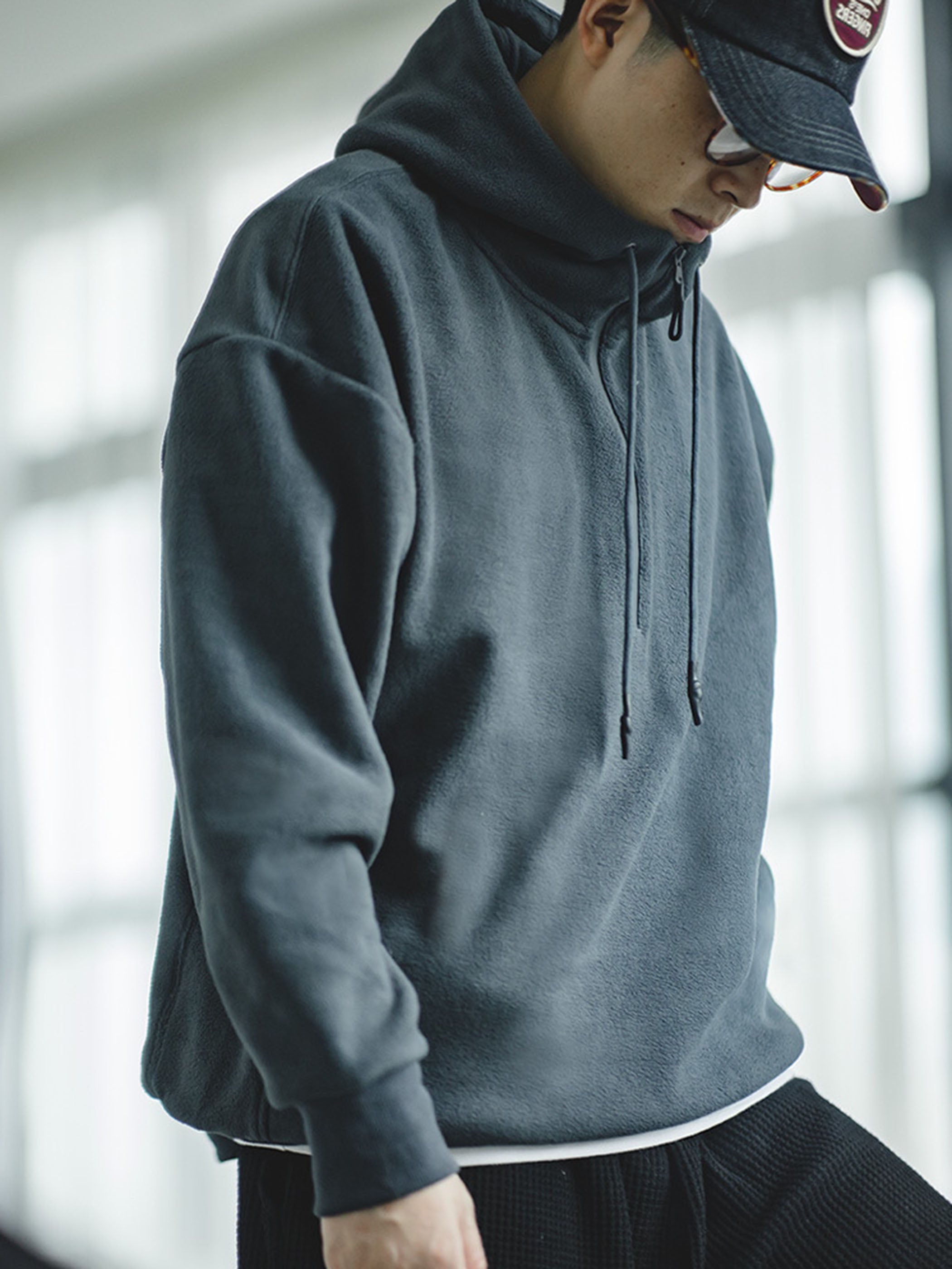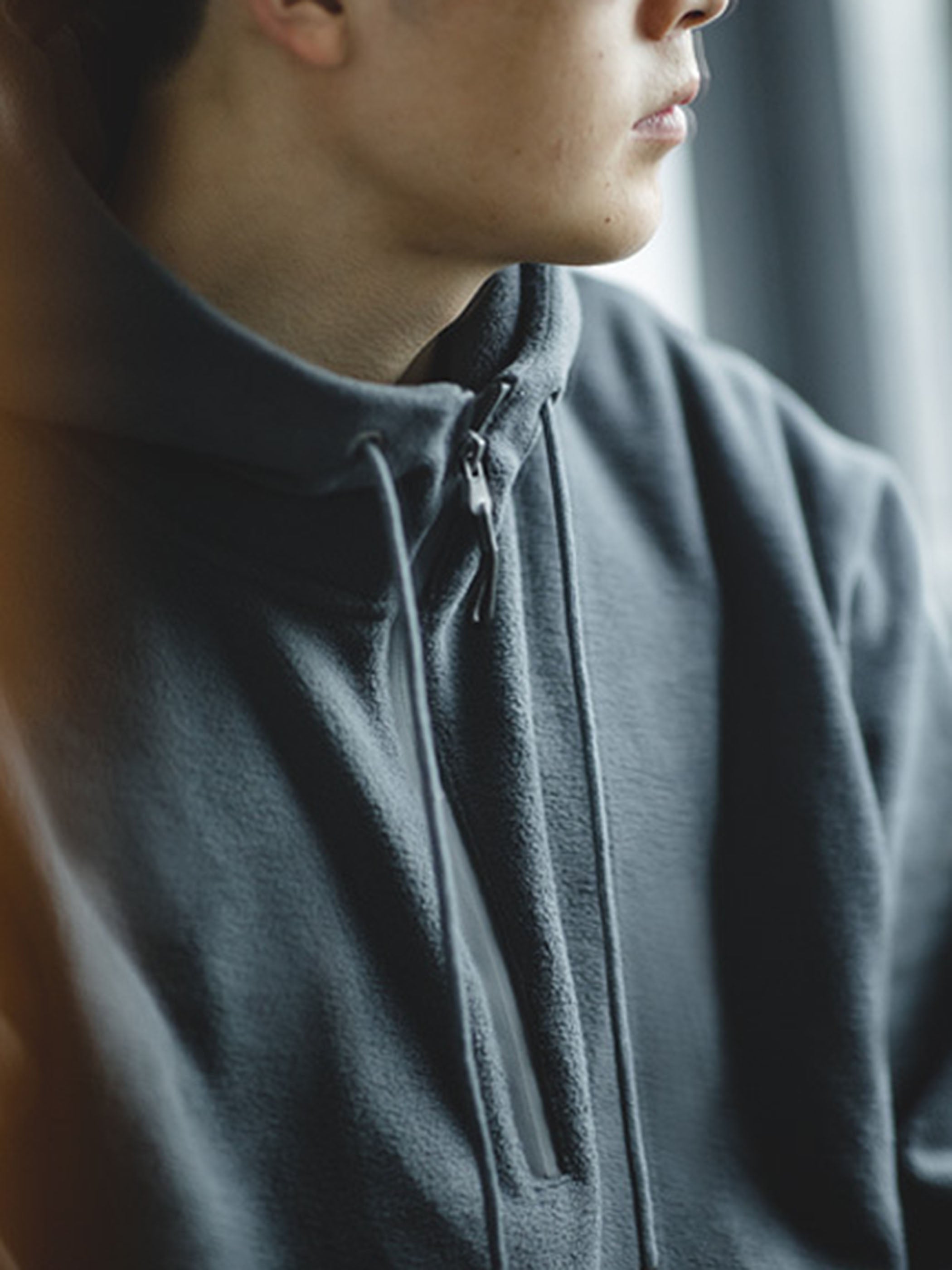 両面フリース素材を使用し、ふんわりとした肌触りと高い保温性を実現。ハーフジップ仕様のハイネックデザインが首元をしっかりカバーし、防風性を強化。防水加工を施した圧着ジップがスポーティな印象をプラスし、悪天候でも快適な着用感を実現。