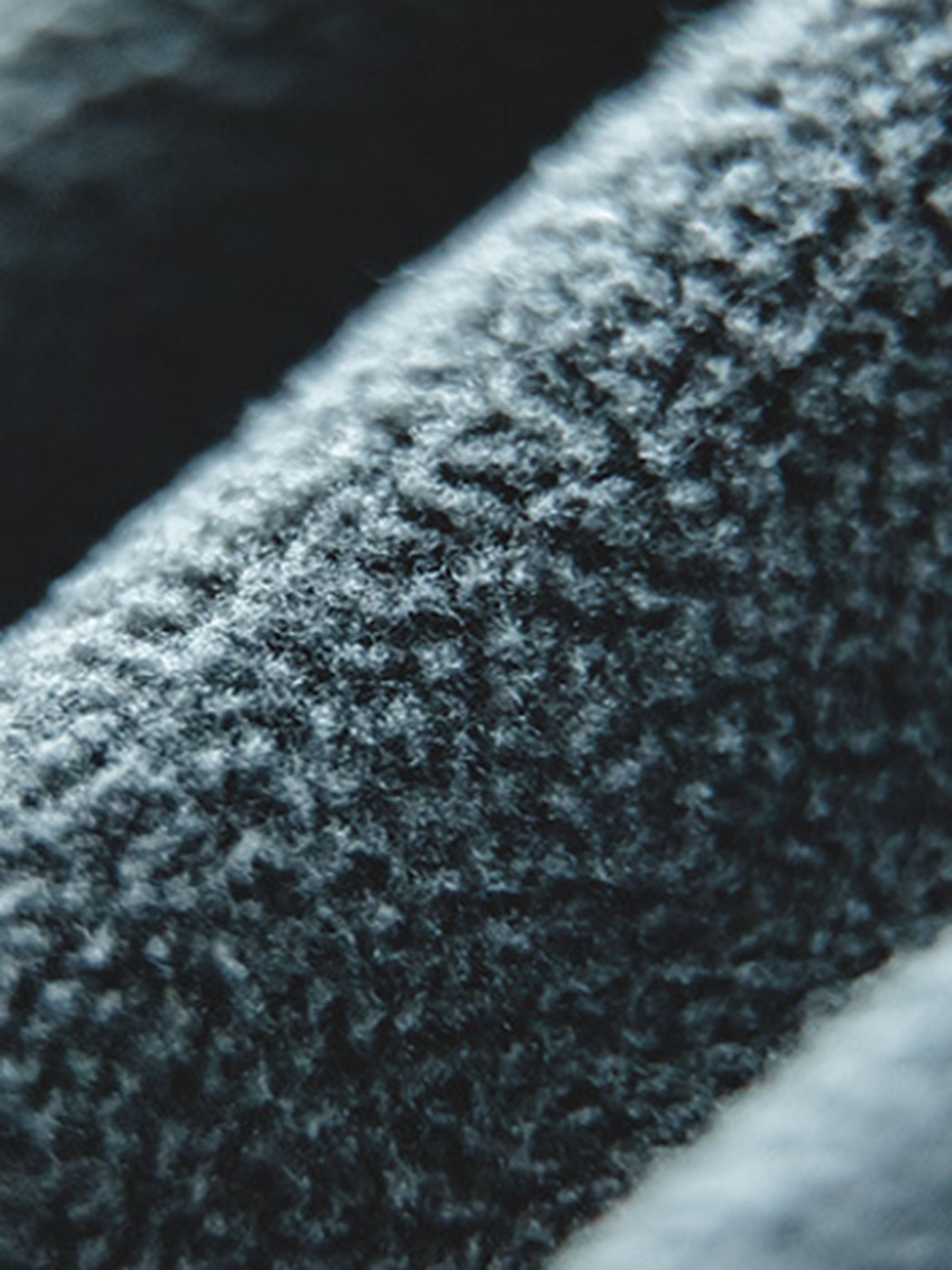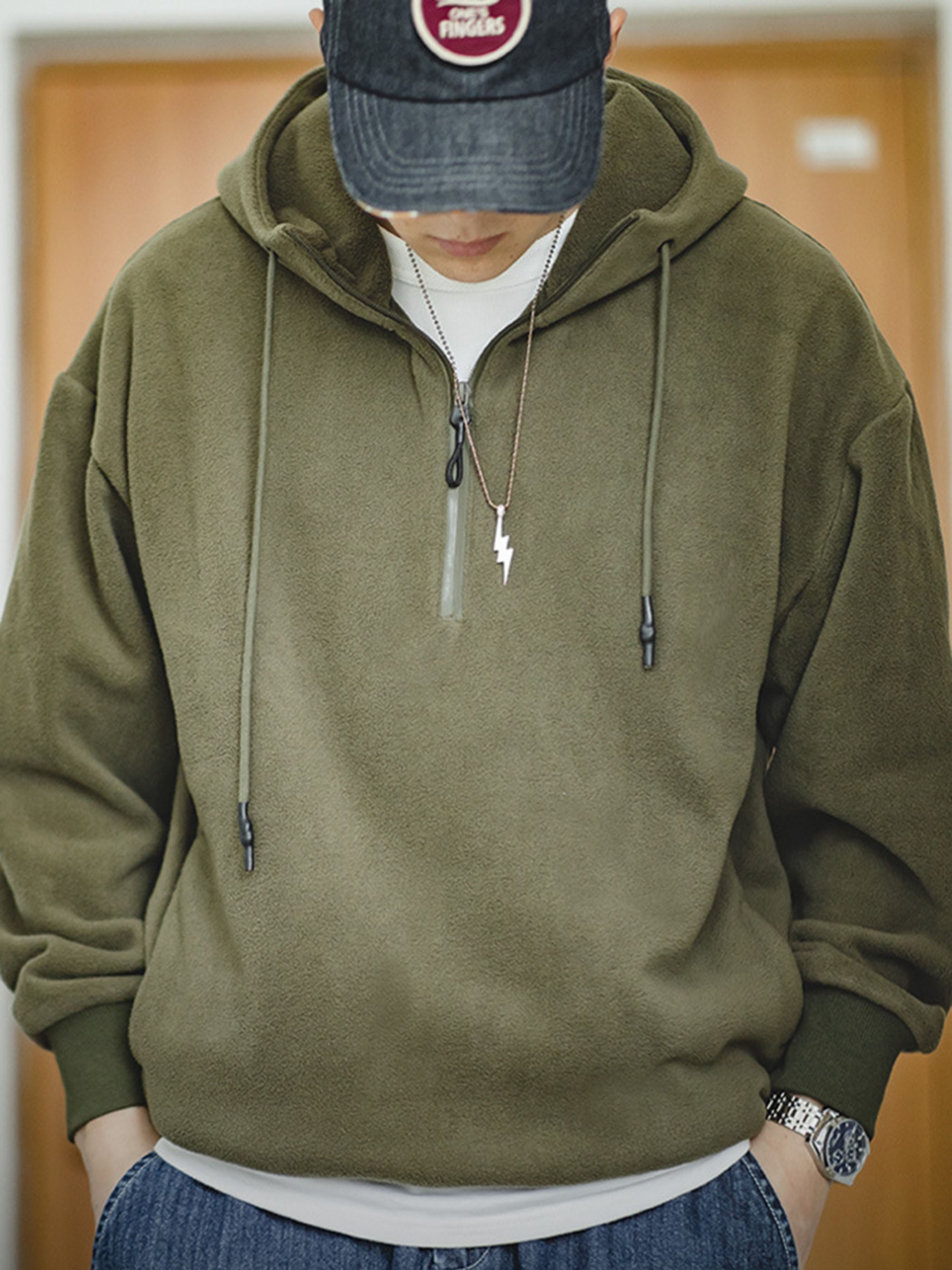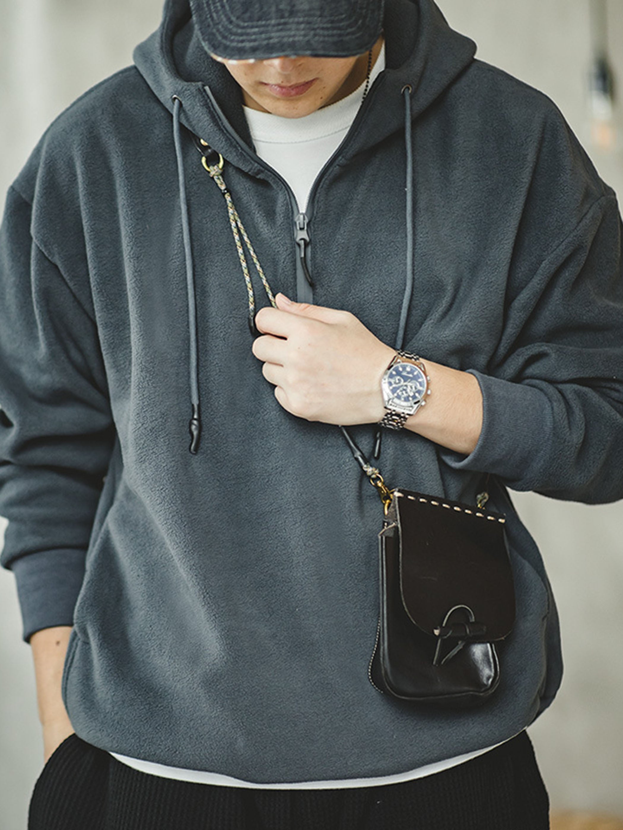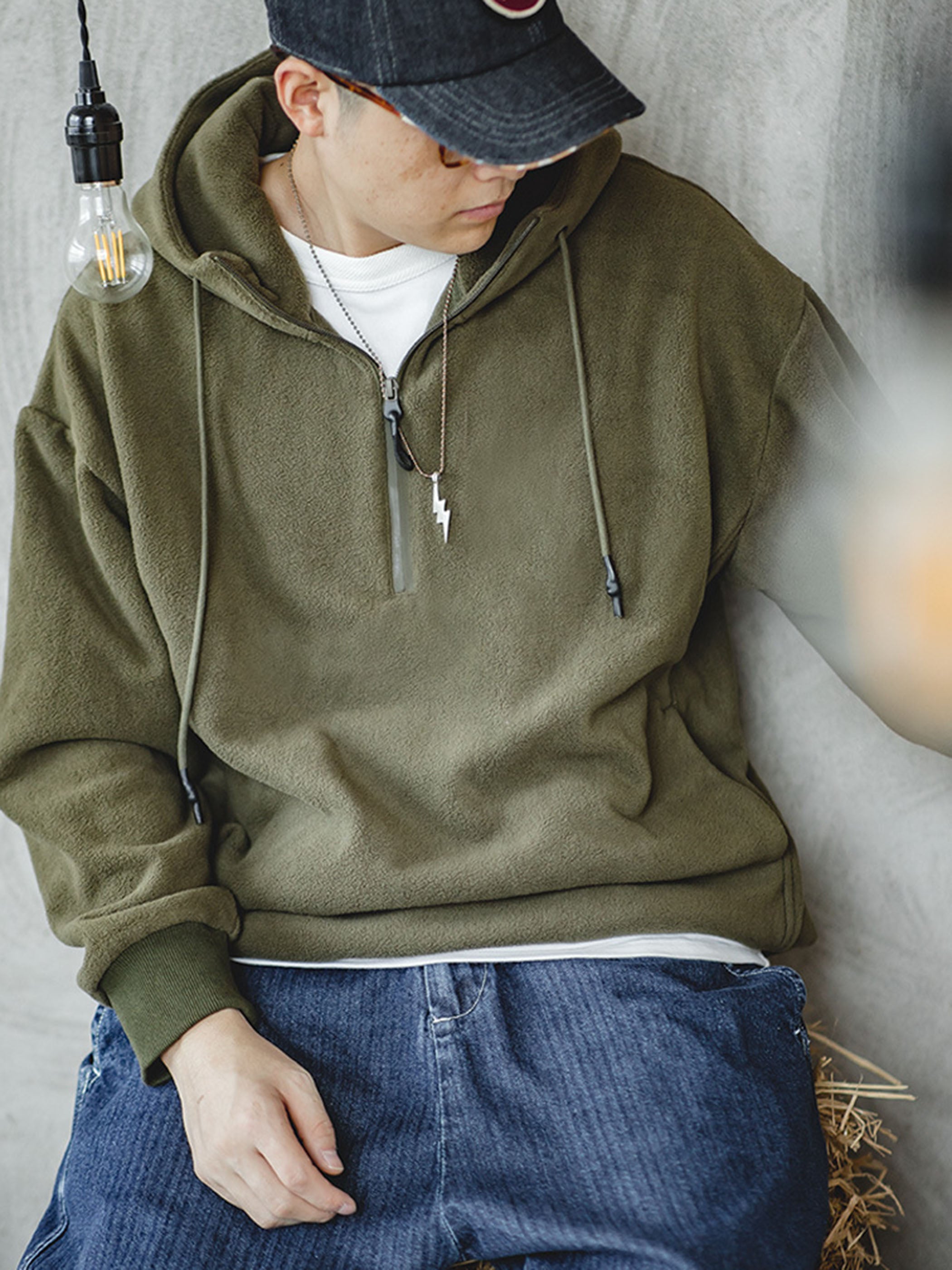 両面フリース素材を使用し、ふんわりとした肌触りと高い保温性を実現。ハーフジップ仕様のハイネックデザインが首元をしっかりカバーし、防風性を強化。防水加工を施した圧着ジップがスポーティな印象をプラスし、悪天候でも快適な着用感を実現。