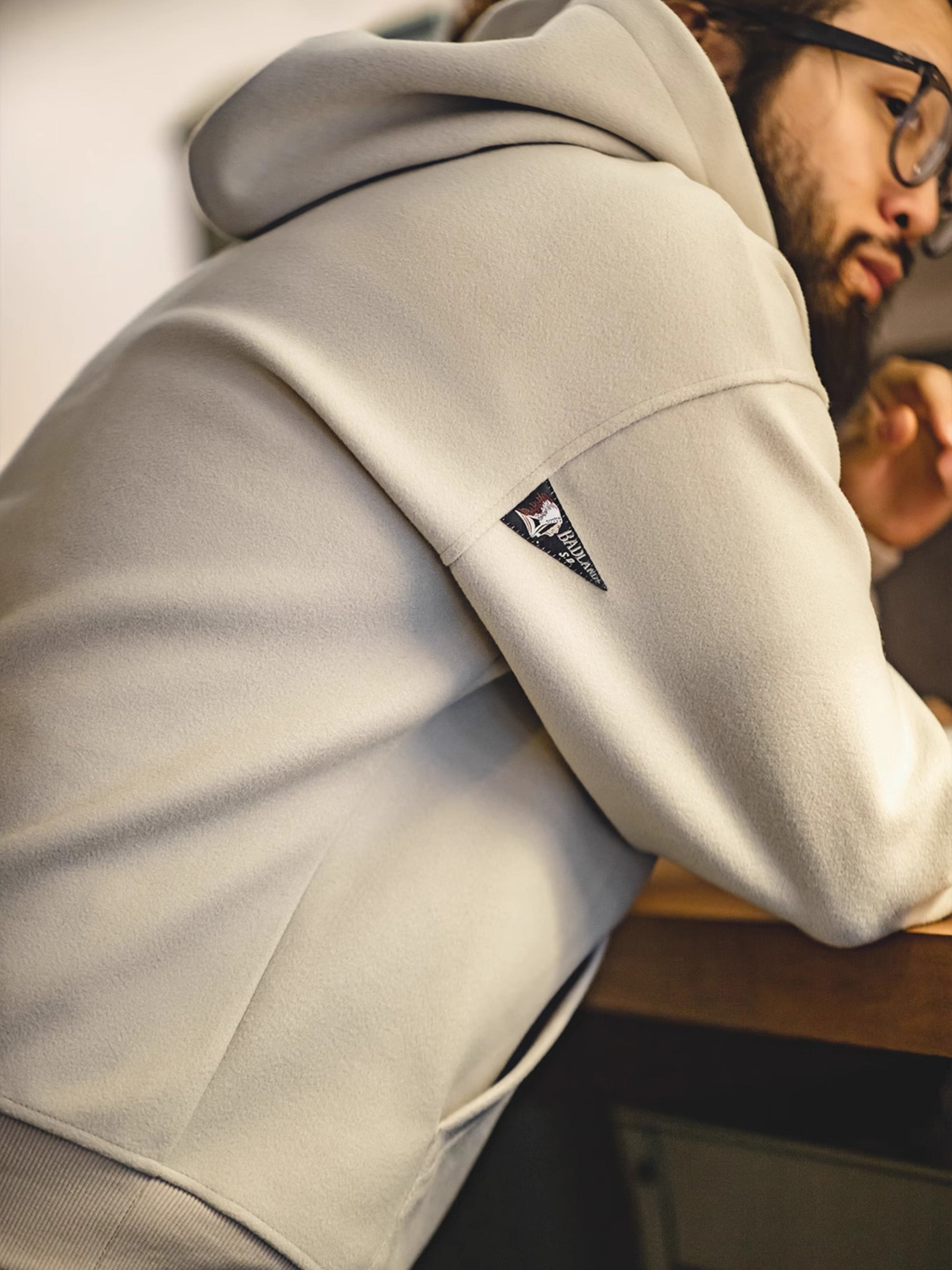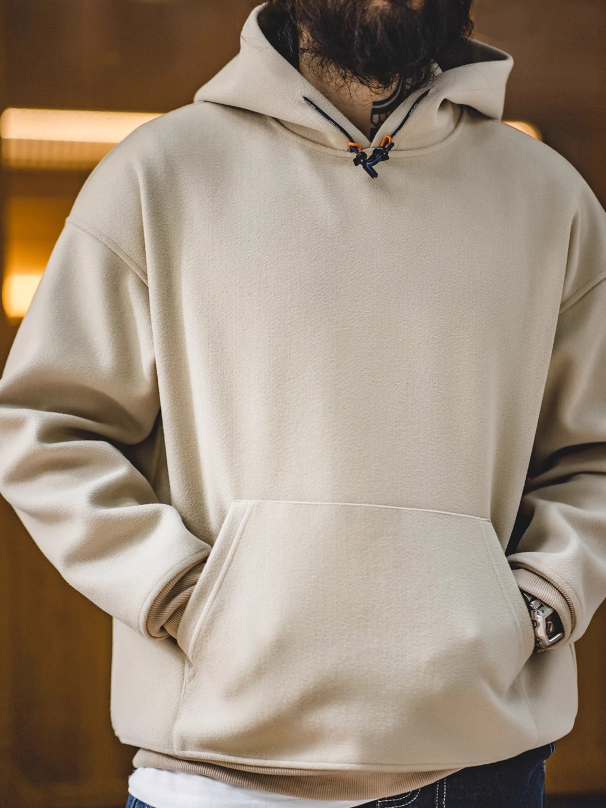 ウール生地の選定により、パーカーは保温性を持ちながら、触り心地が柔らかく、長時間の着用に適しています。この素材は着る人を暖かく保つだけでなく、着心地も非常に快適で、穿き心地を向上させます。