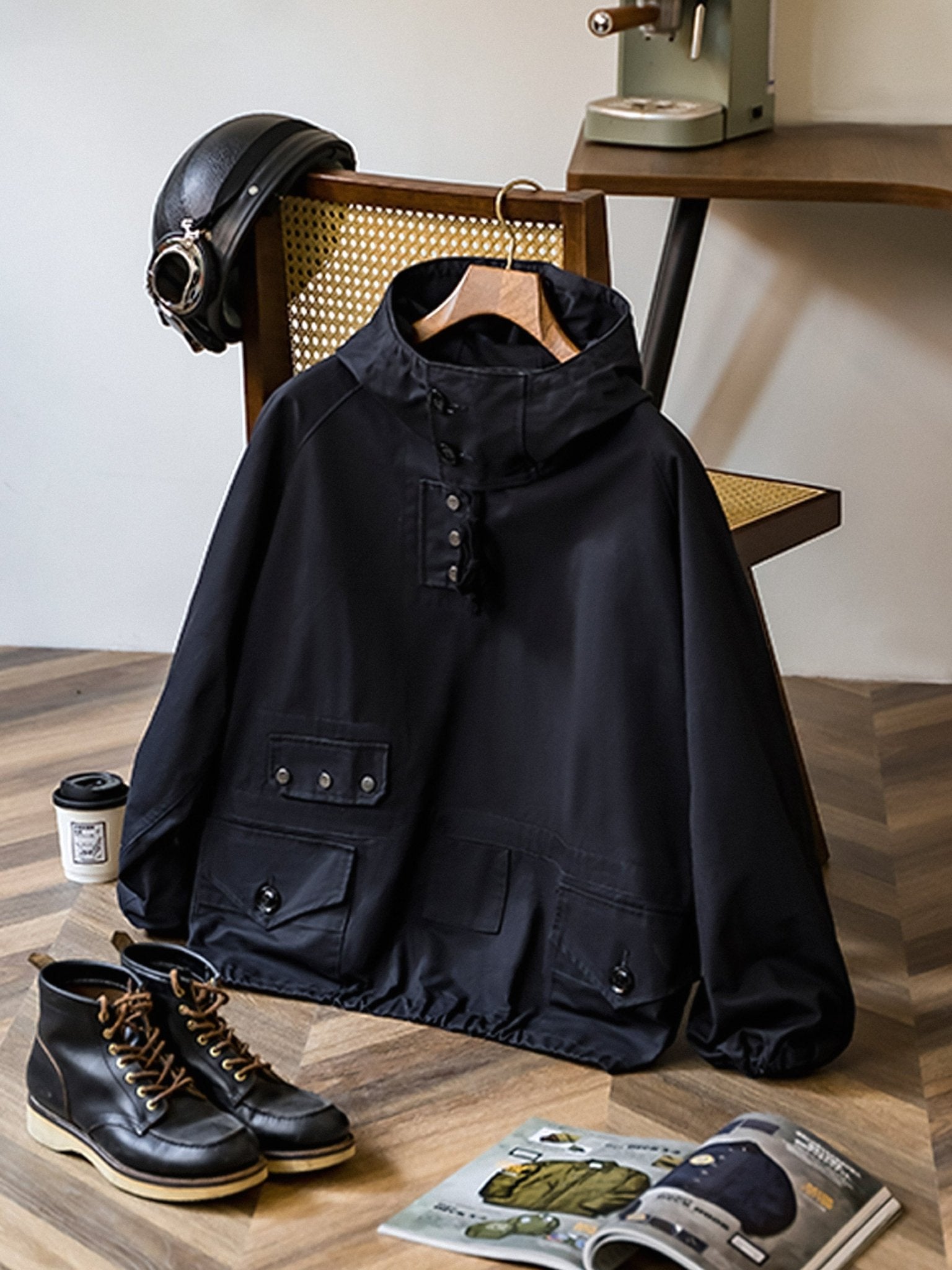 甲板罩衫の背面にある「53192」という契約番号は、当時の英国軍の調達を示すシンボルで、服に歴史的で独特の要素を加えています。