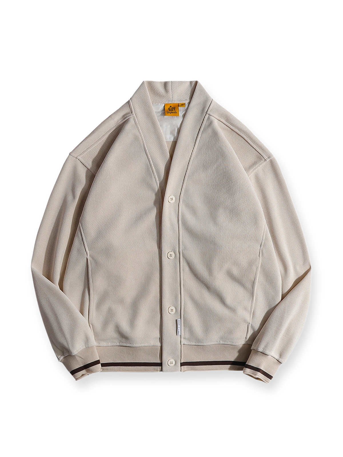 カーディガンは、光沢感と高級感のあるポリエステル素材を採用しています。この素材は耐久性があり、実用的な機能美が魅力で、長く愛用できるアイテムとなっています。ポリエステル素材の持つ特性が、カーディガンの快適さと耐久性を向上させ、着る人に満足感を提供します。