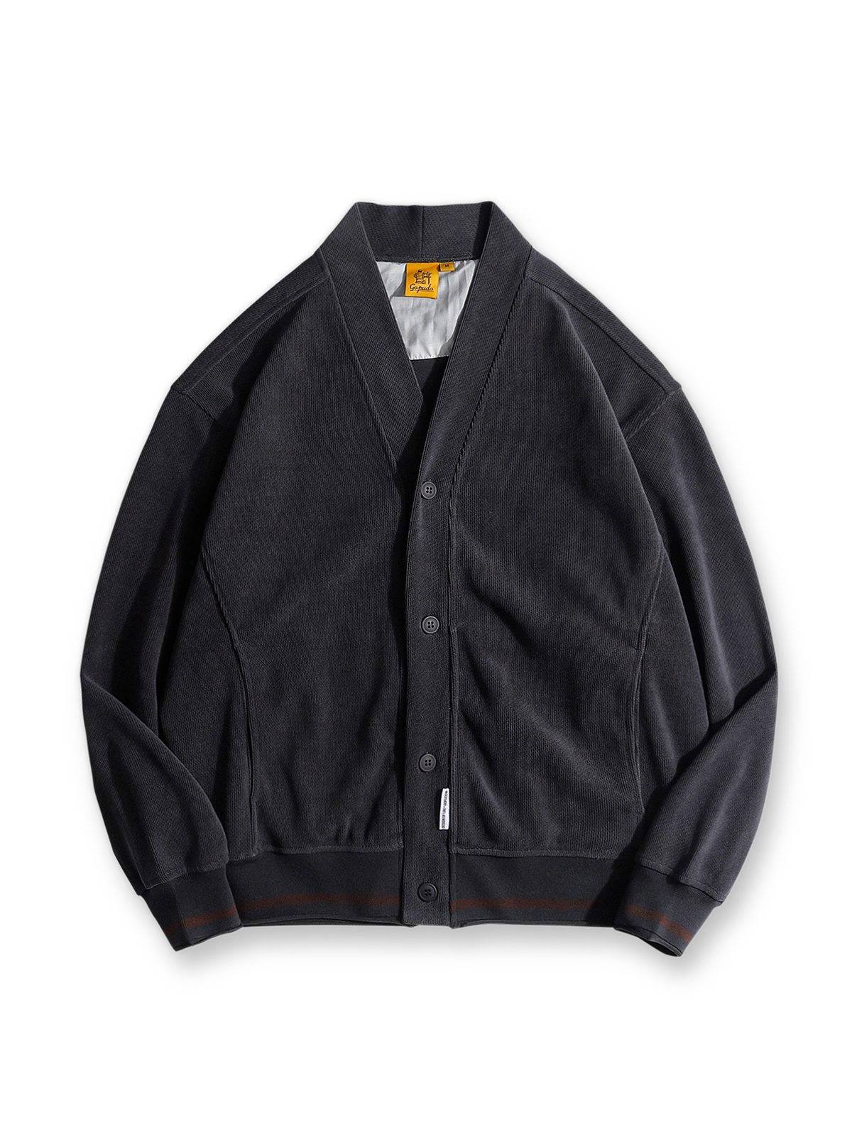 ゆったりとしたサイジングが特徴のコーデュロイカーディガンが登場!角度によって表情を変えるコーデュロイ生地を使用。コーデュロイ生地の風合いとストレッチの効いた抜群な着心地が魅力的です。落ちた肩位置とドルマンスリーブのように大きくとられたアームホール、オーバーサイズシルエットでトレンド感のある佇まい。使いやすいVネックとシンプルなボタン。カラー展開も使いやすいブラックグレー、オフホワイト、コーヒーをセレクト。