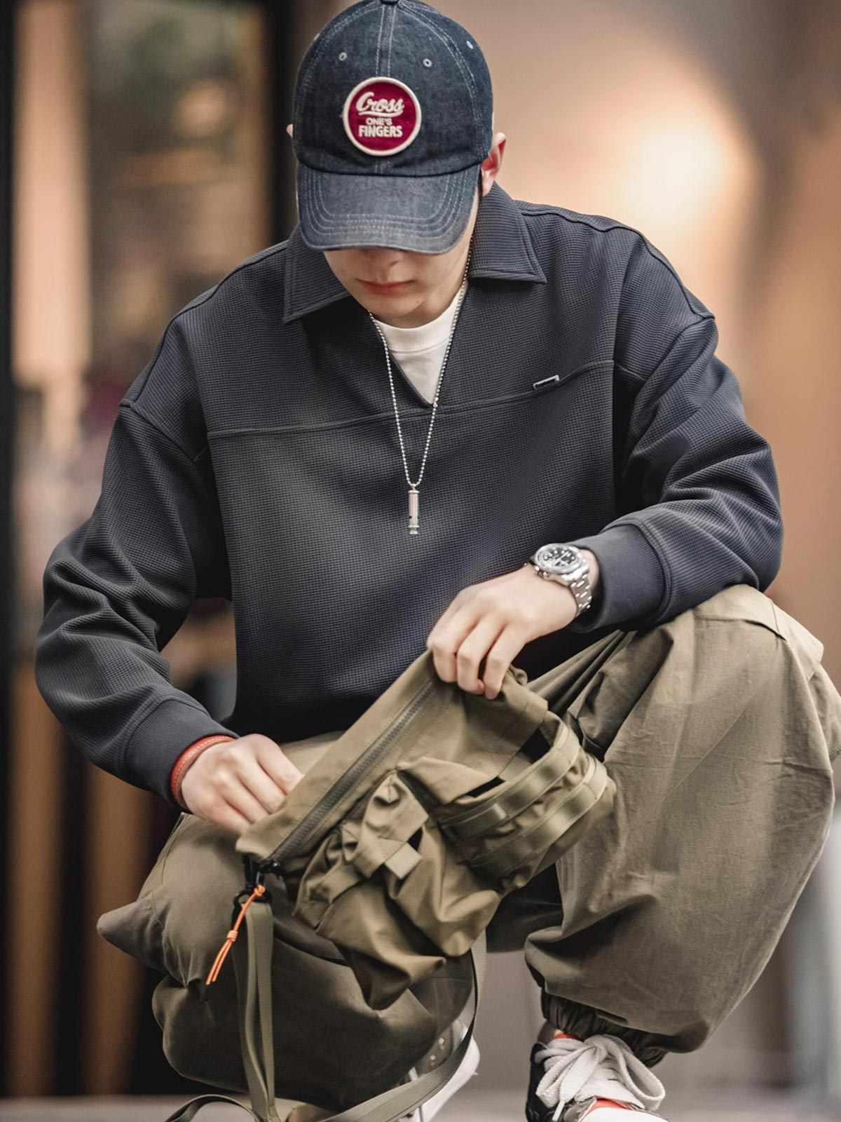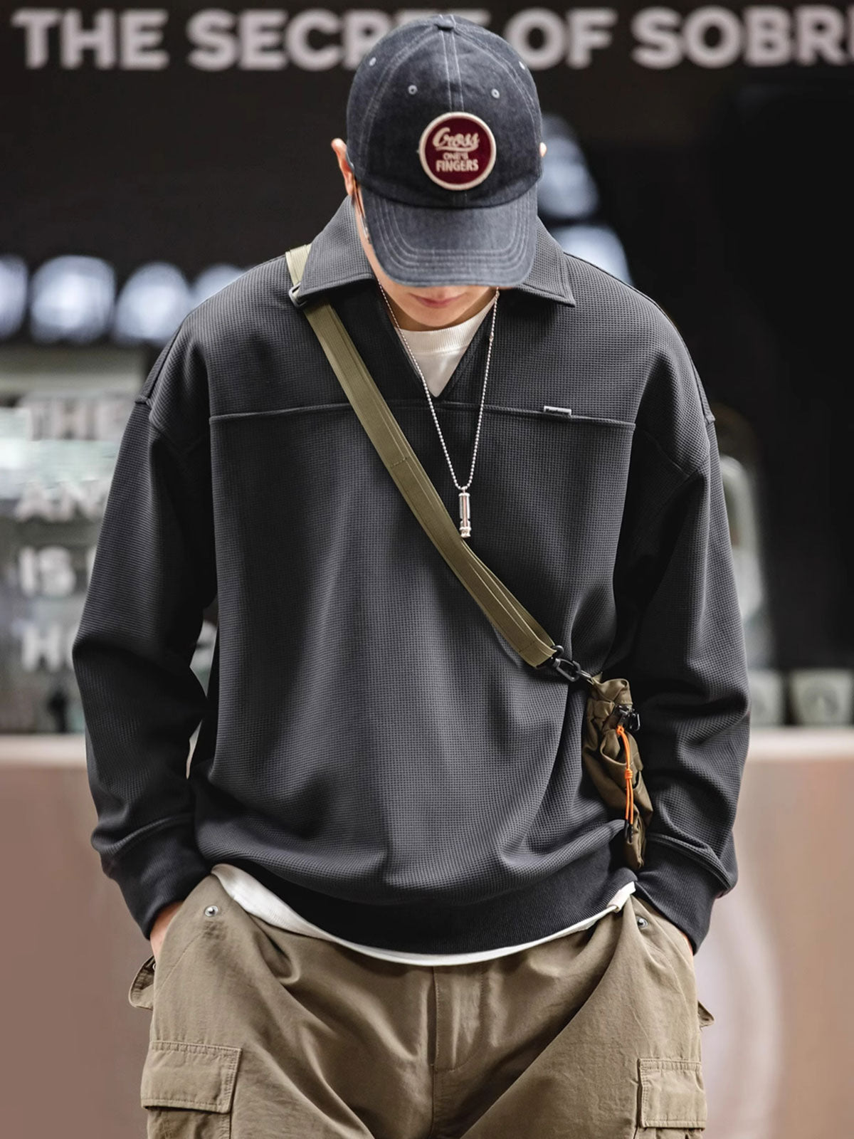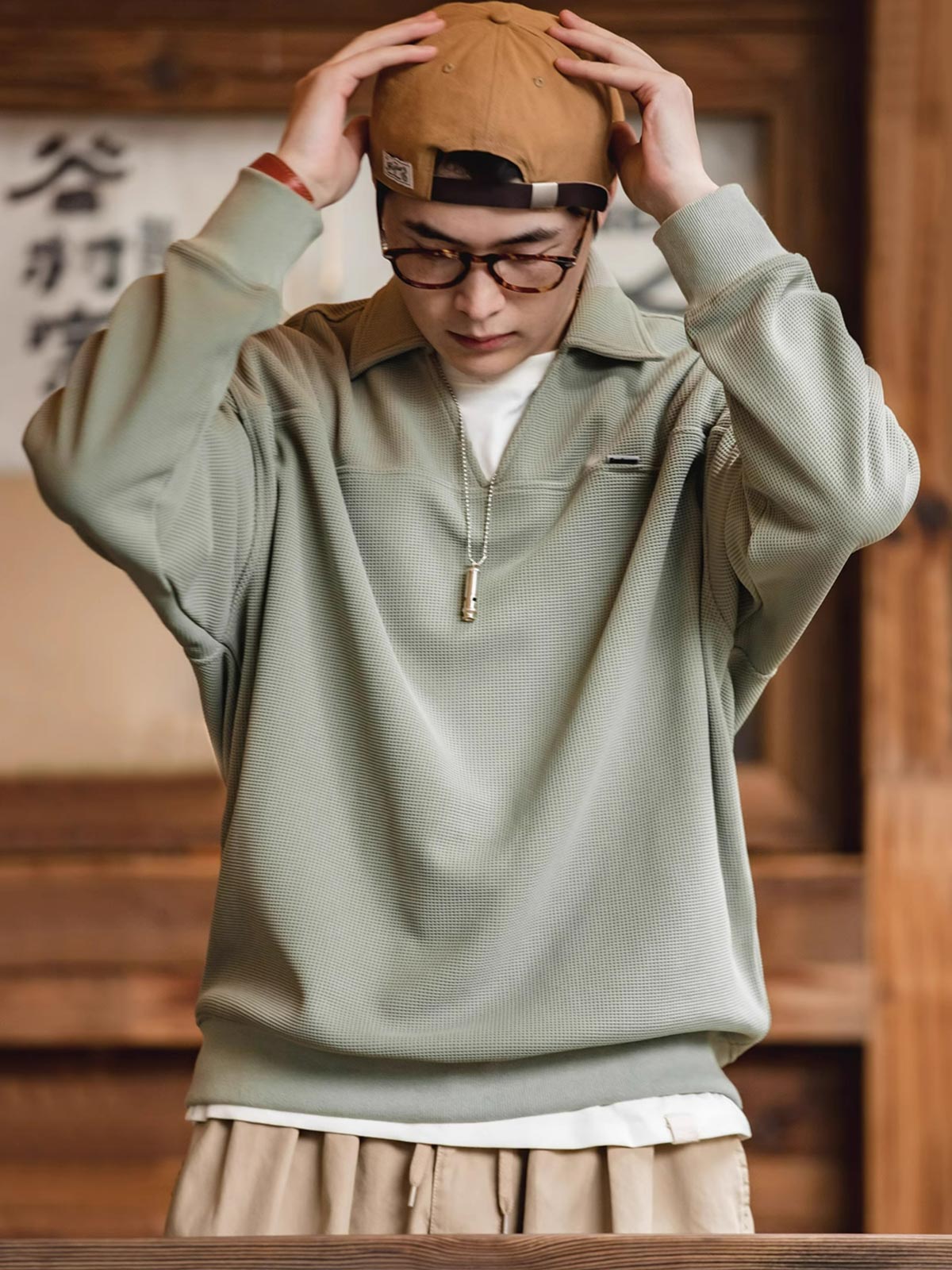 ワッフル織りは、そのユニークな幾何学的構造と快適な質感で、休日の装いの中でエレガントな象徴とされてきました。このVネックポロシャツは、伝統的なワッフル織りを現代のカジュアルウェアデザインと融合させ、クラシックな服装の歴史的文化的背景を継承するとともに、現代の都市生活の着用ニーズに応えています。裾と袖口のしっかりとした伸縮性のあるデザインは、動きやすさを保ちながらもシャツの全体的なシルエットを保持します。