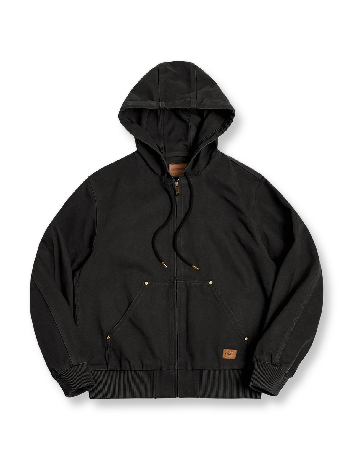 ジャケットのシルエットはゆったりめで、着用者に広い動きの空間を提供します。裾と袖口にはリブデザインが施され、快適な着用感を提供しながら全体の外観に立体感をもたらします。
