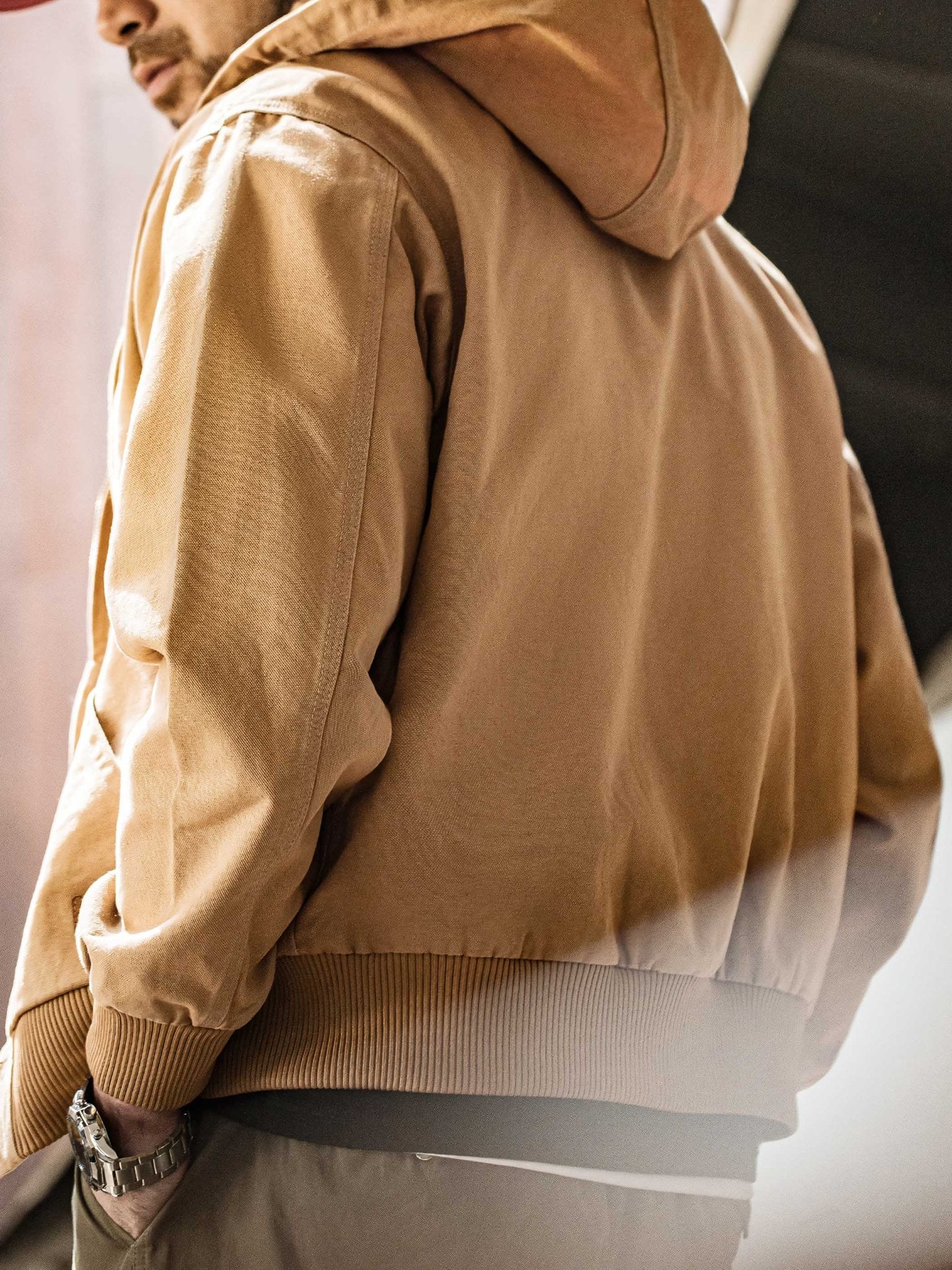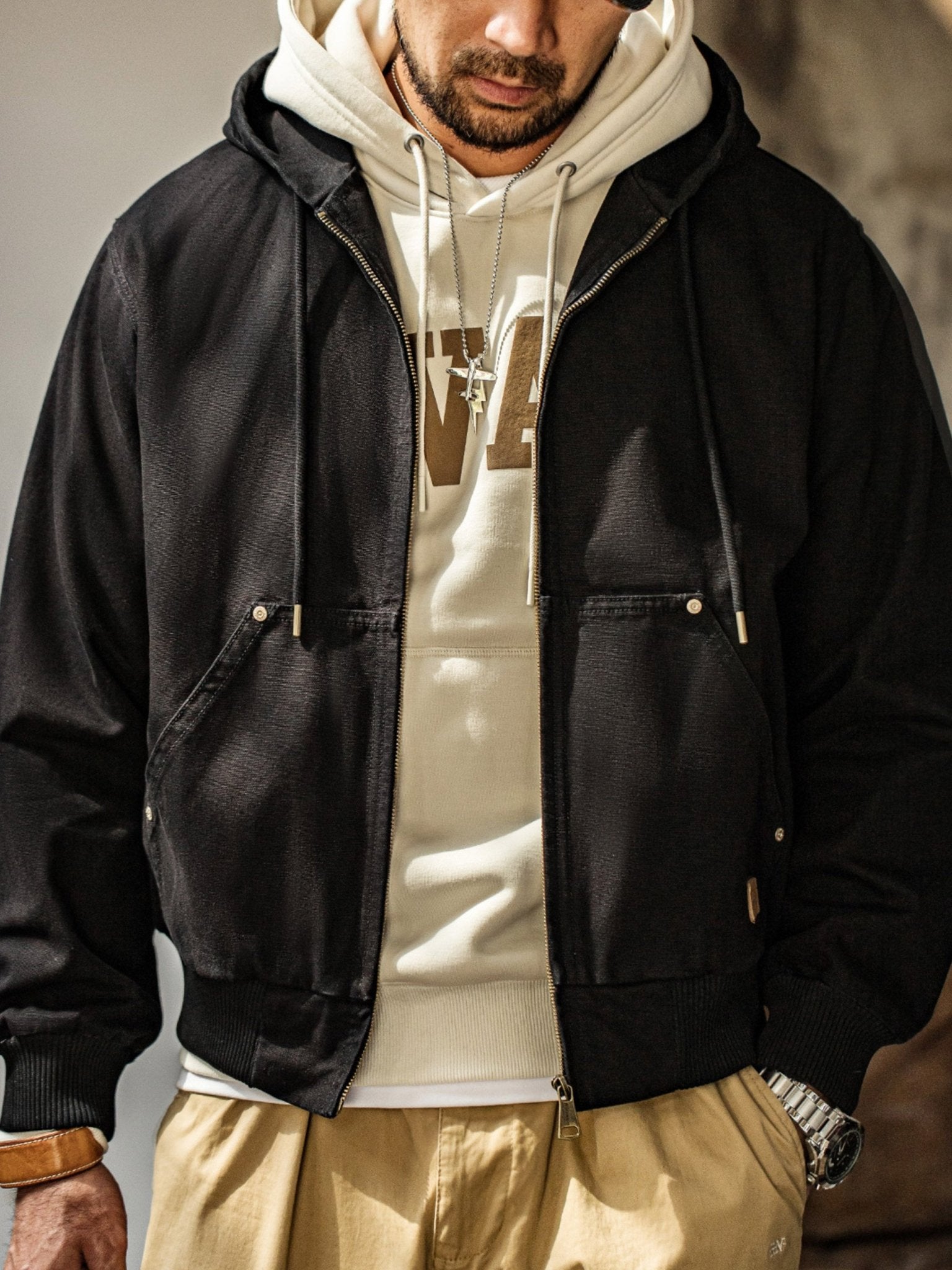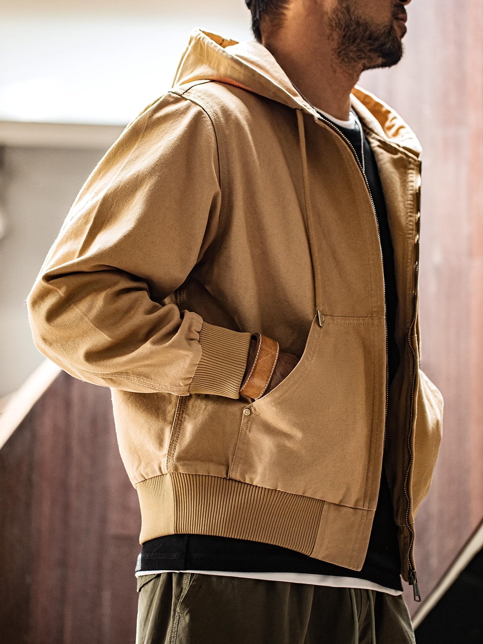 このジャケットは、クラシックな「J130」のデザインを受け継ぎ、そのオリジナルスタイルを保っています。シンプルなデザインが男性の粗野な雰囲気を引き立てます。特有の堅牢なキャンバス生地は、デザイン全体に頑丈で耐久性のある特性を与えます。フード付きのデザインは、実用性を高めるだけでなく、防風保護も提供します。