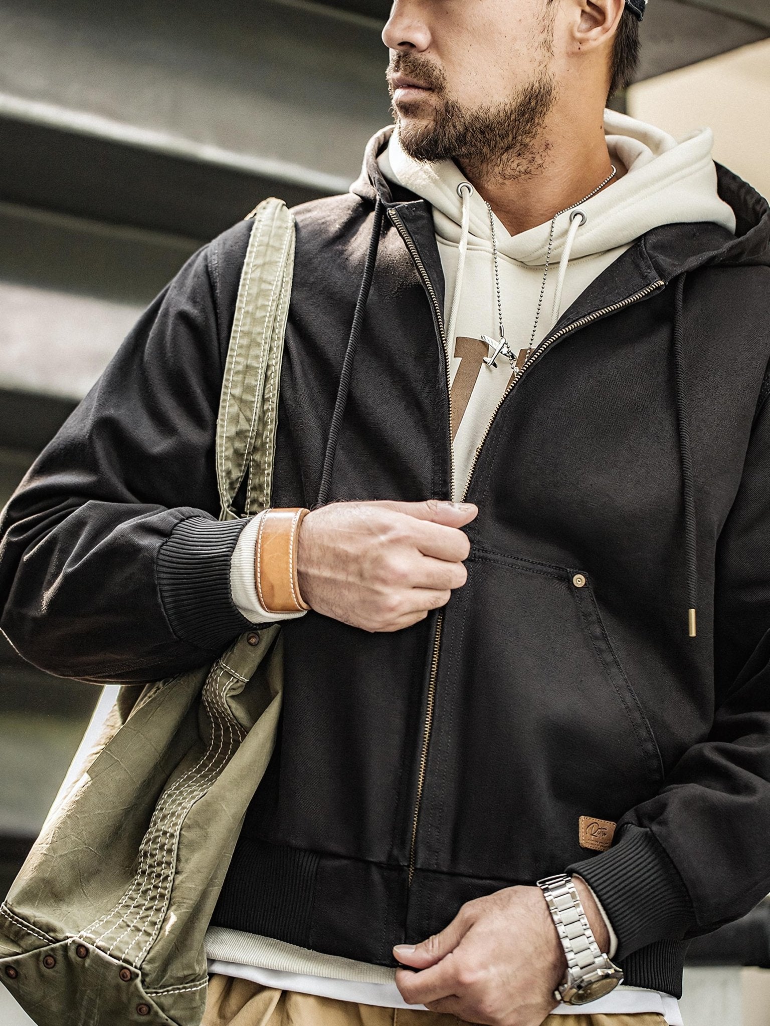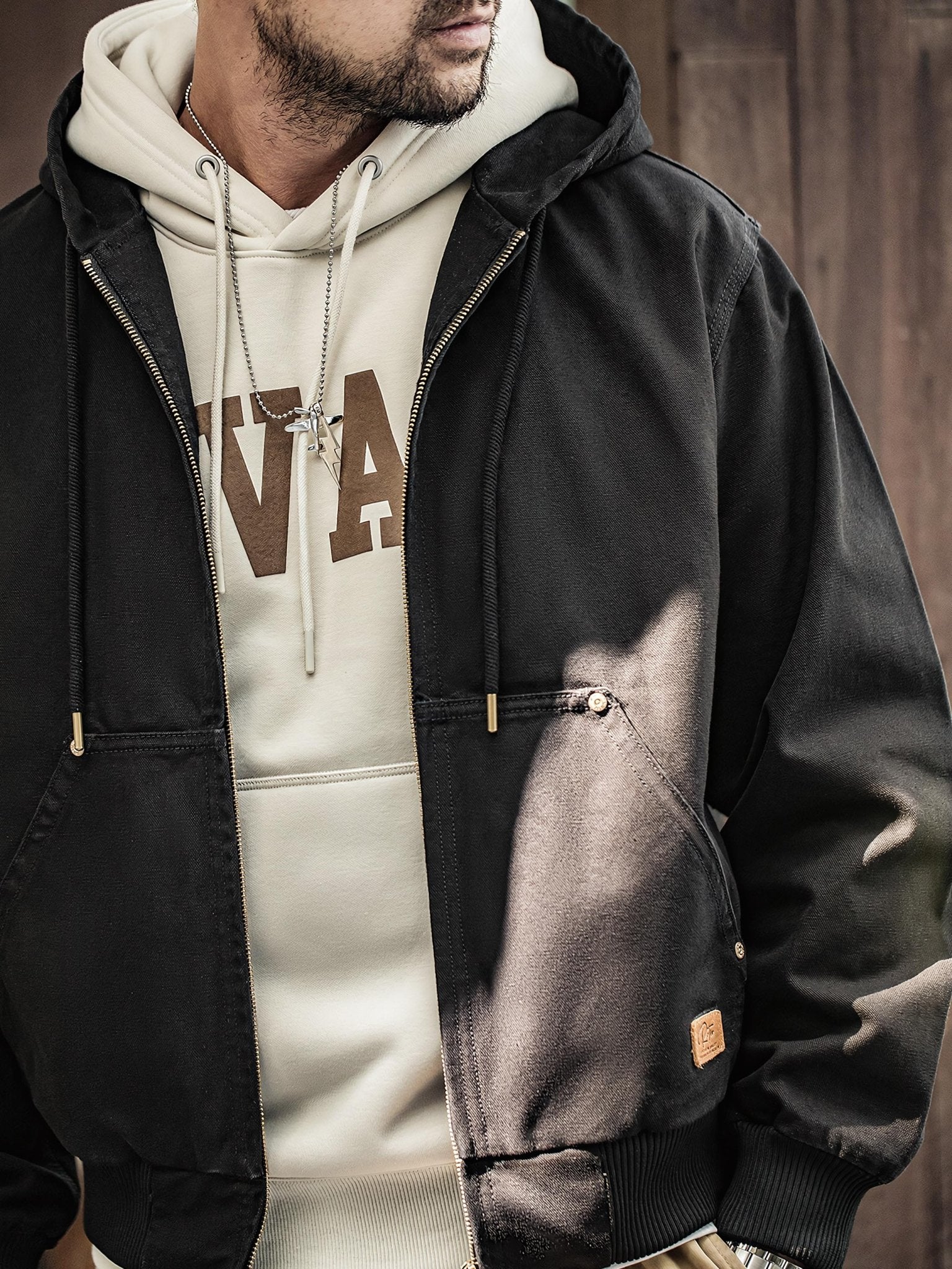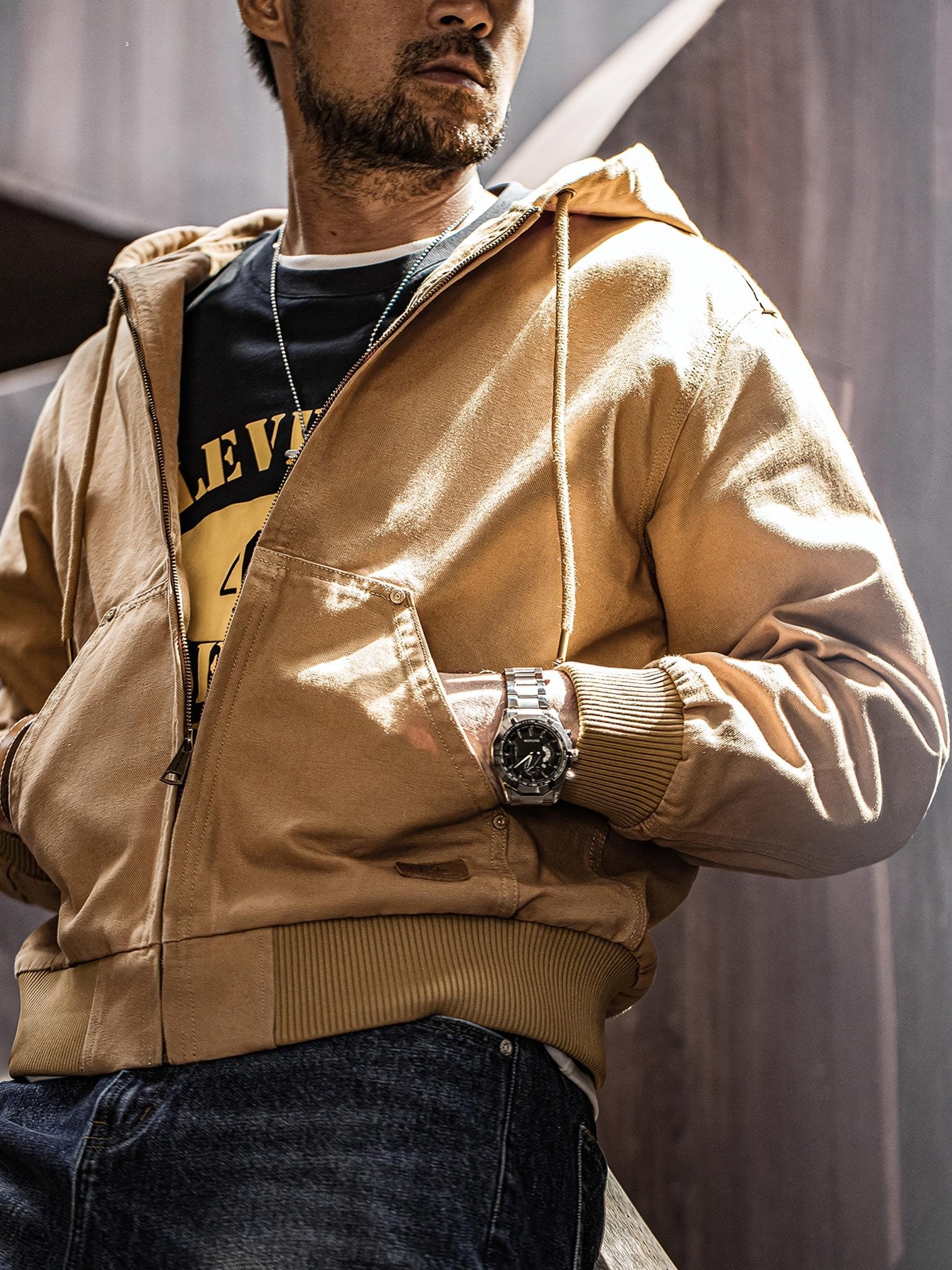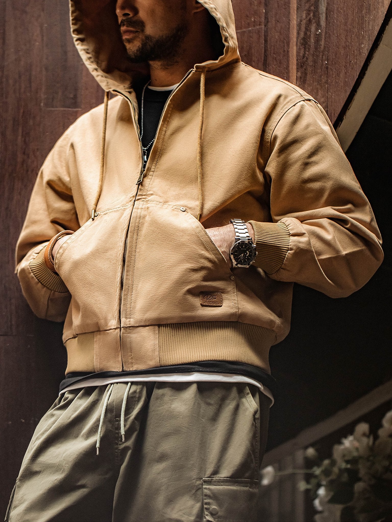 このジャケットは、クラシックな「J130」のデザインを受け継ぎ、そのオリジナルスタイルを保っています。シンプルなデザインが男性の粗野な雰囲気を引き立てます。特有の堅牢なキャンバス生地は、デザイン全体に頑丈で耐久性のある特性を与えます。フード付きのデザインは、実用性を高めるだけでなく、防風保護も提供します。