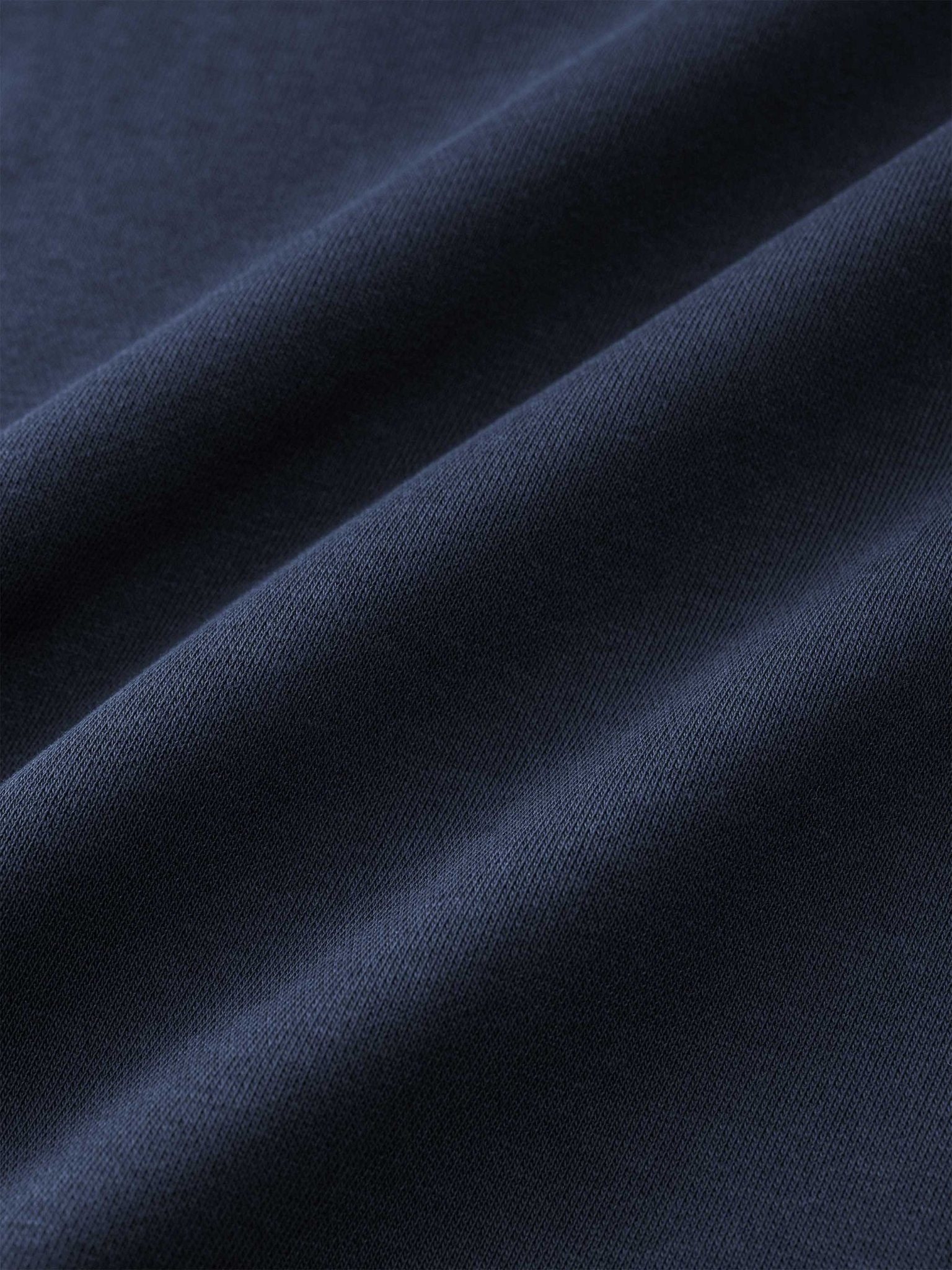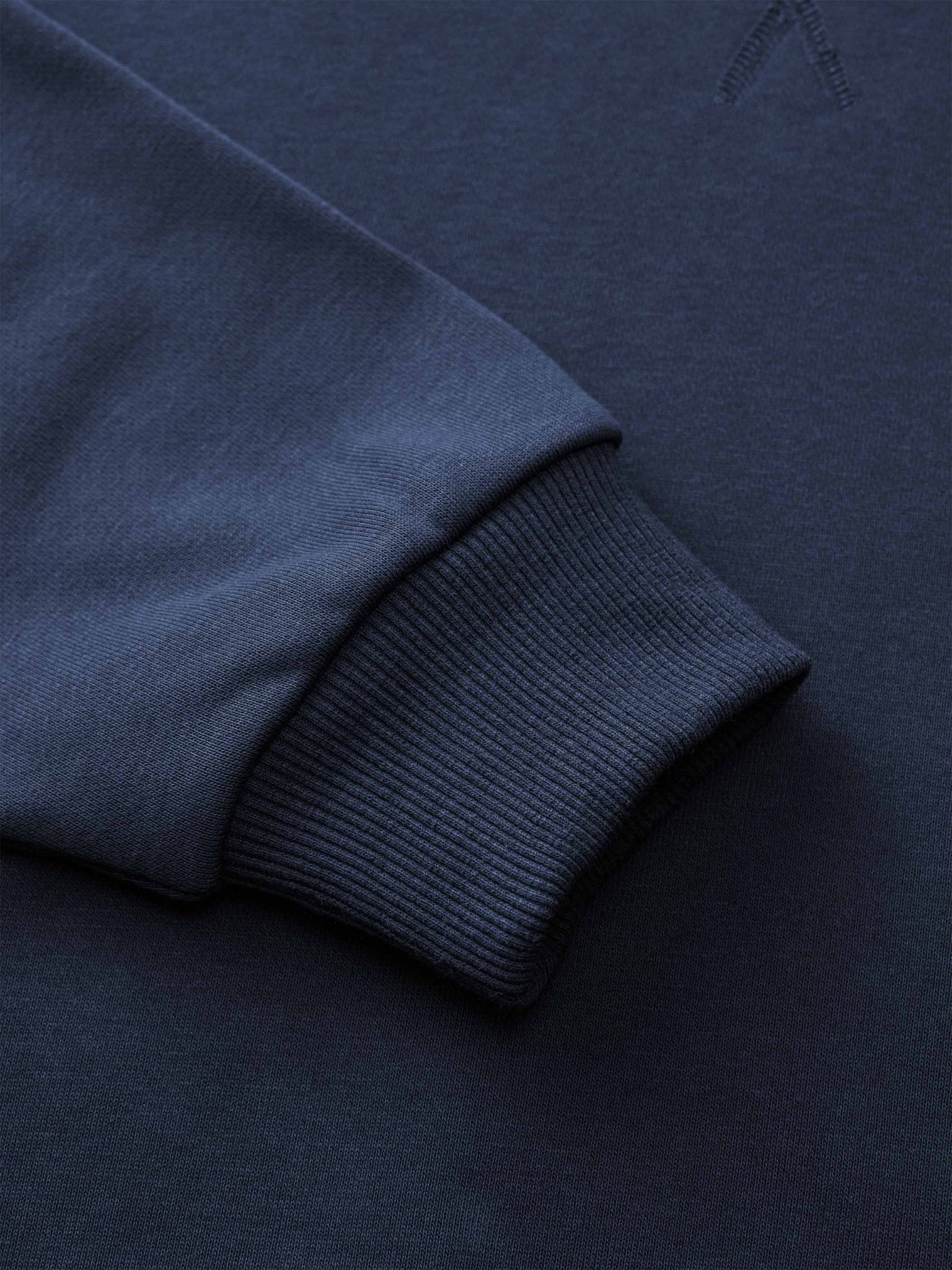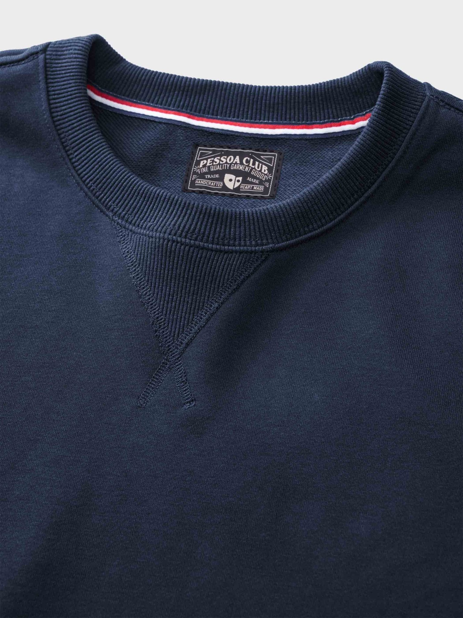 首元にステッチ縫われた三角形がポイントとなっており、襟、袖口、裾周りにリブ編みが施され、動かしやすくスポーティな雰囲気を出しています。また、インナーアイテムに最適な素材に仕上がっております。