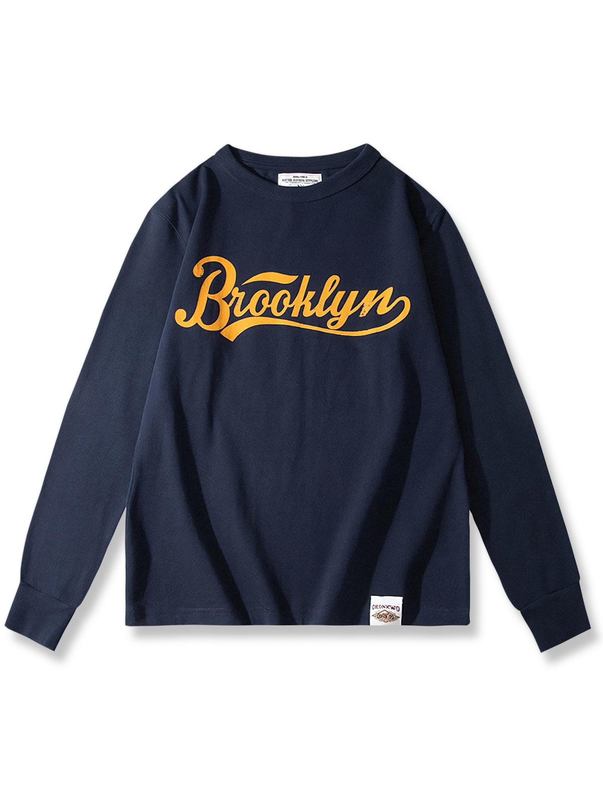 「Brooklyn」という目立つ文字のプリントが特徴のこのスウェットは、ニューヨークの有名な地区への敬意を表しています。このプリントスタイルは、ストリートカルチャーとスポーツカジュアルの融合を反映し、アメリカのポピュラーカルチャーの象徴的な一面を示しています。