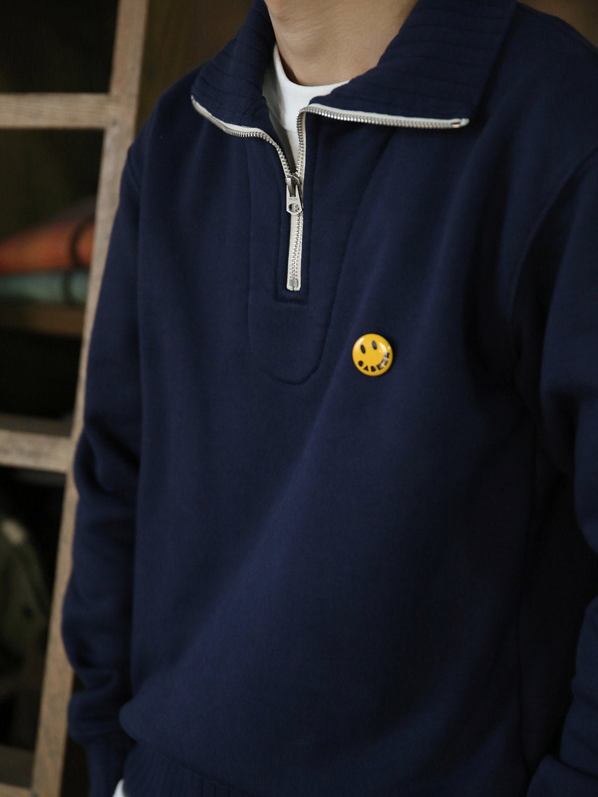 このスウェットシャツは、伝統的なモーターサイクルスタイルのシンプルなデザインからインスピレーションを得ています。ハーフジップのデザイン要素は、便利な着脱体験を提供するだけでなく、レトロとモダンが融合したデザインコンセプトを伝えています。