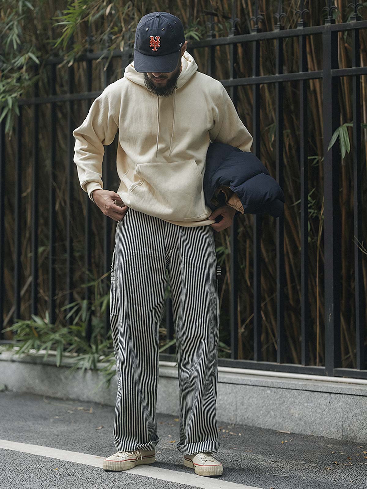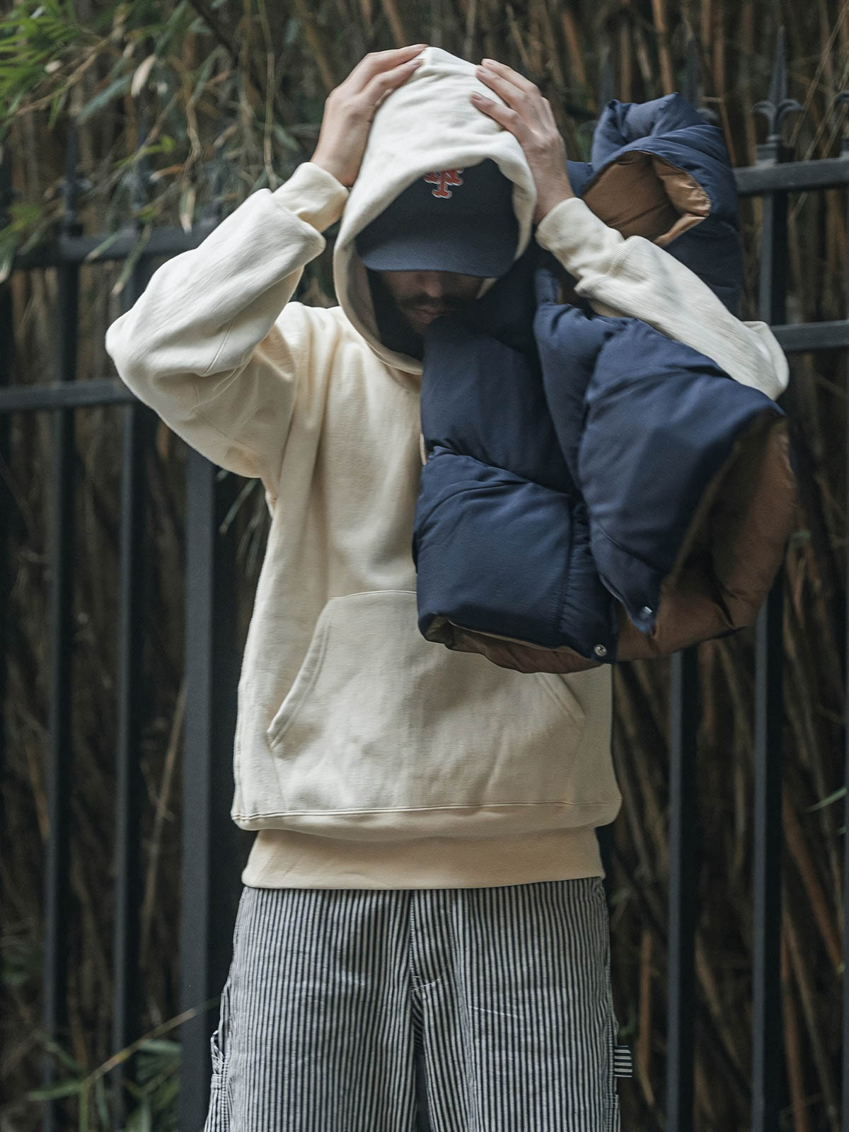 このパーカーは、Championが1934年に革新的に導入した「REVERSE WEAVE」工芸を取り入れています。当時のスウェットシャツはほとんどが縦糸でカットされていましたが、横向きにカットする方法を採用し、洗濯耐性と安定性を向上させ、縮みや変形を減少させました。