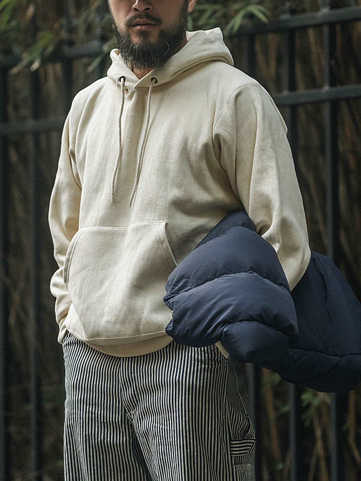 このパーカーはシンプルでありながらファッショナブルで、ジーンズやカジュアルパンツとの相性が良く、寒い天気には、白いTシャツやタートルネックセーターを重ね着することで、レイヤード感を加えつつ、さらなる保温効果を得られます。