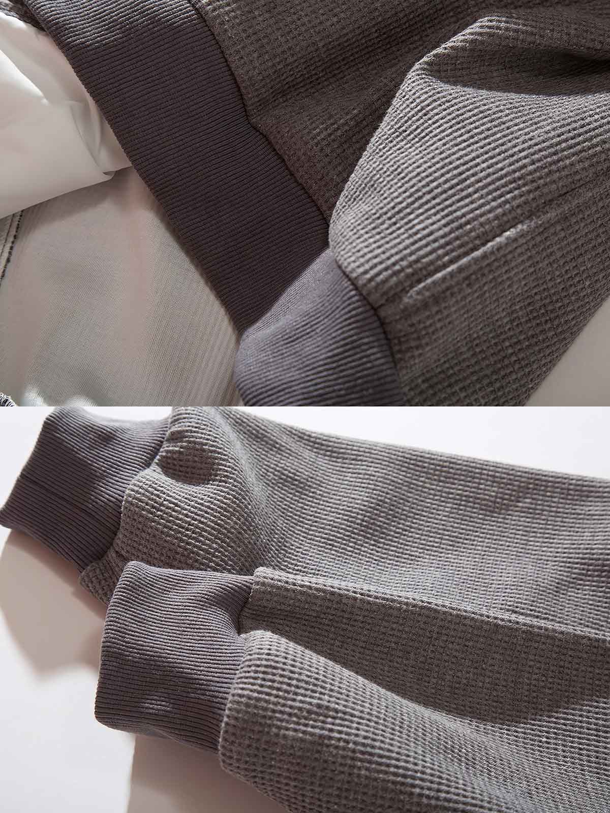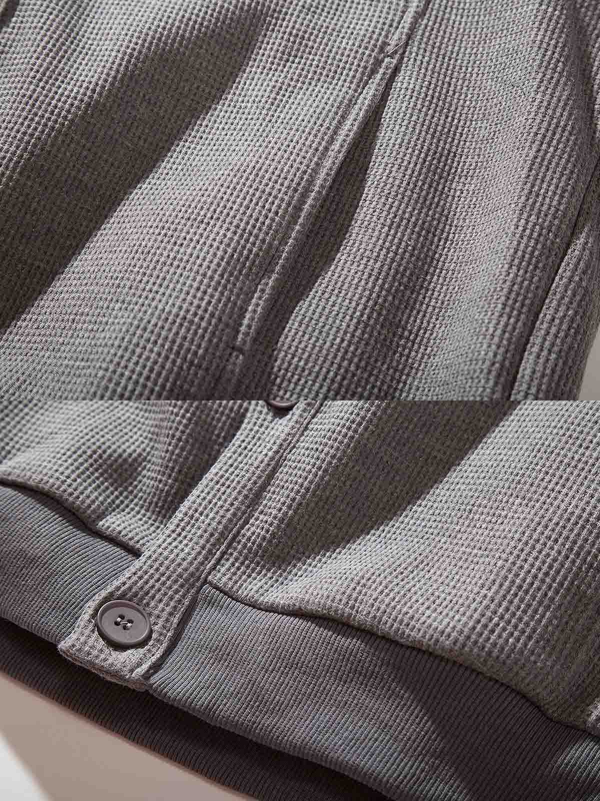 ワッフル織りのテクスチャとクラシックなカーディガンデザインが融合し、快適さとレトロ感の完璧なバランス。