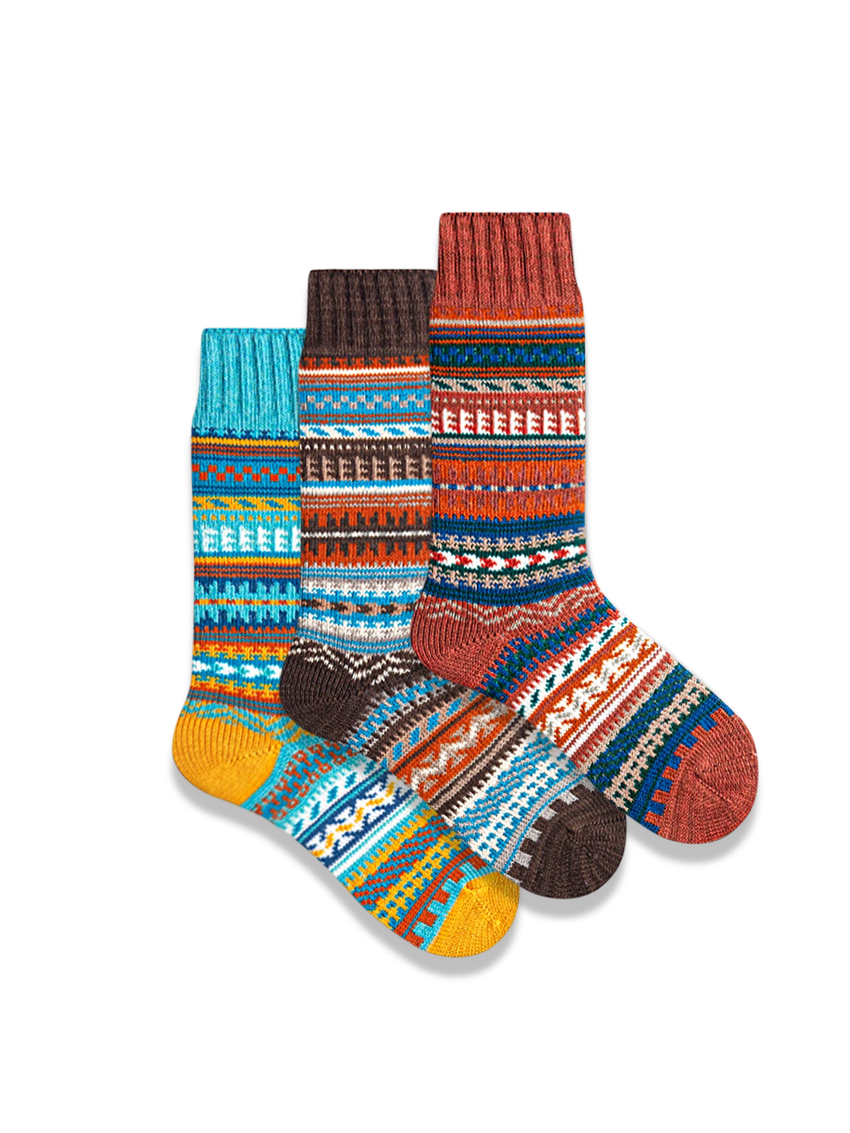 3-Pair Set Ethnic Pattern Thick Socks #PE