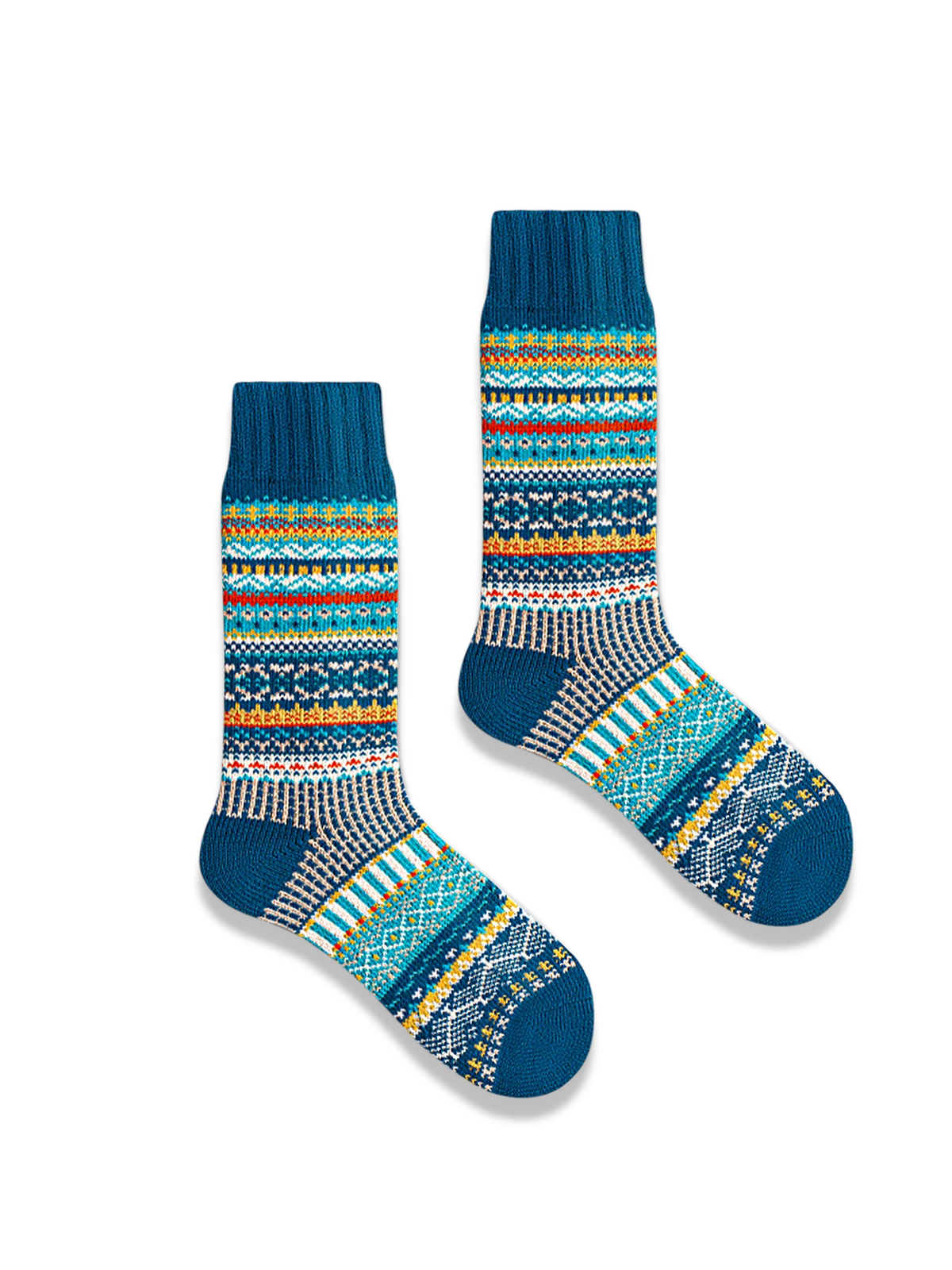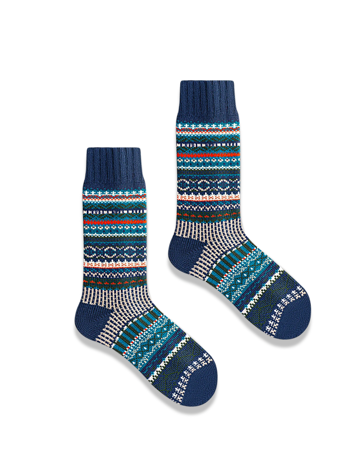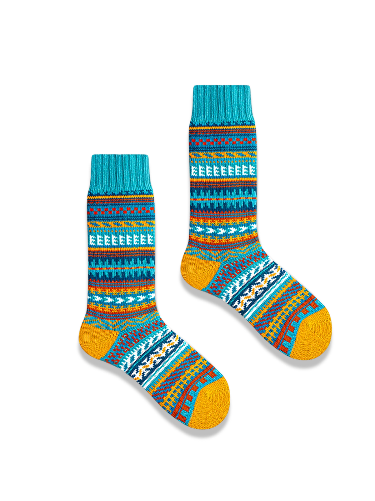 鮮やかな色合いの民族風デザインに、ソックスのつま先部分に対照的な色を加えることで、スタイリングに簡単にアクセントを加えることができます。ソックスの口元は厚めの弾力性を持たせ、ぴったりとフィットし、脚の形にしっかりと沿います。