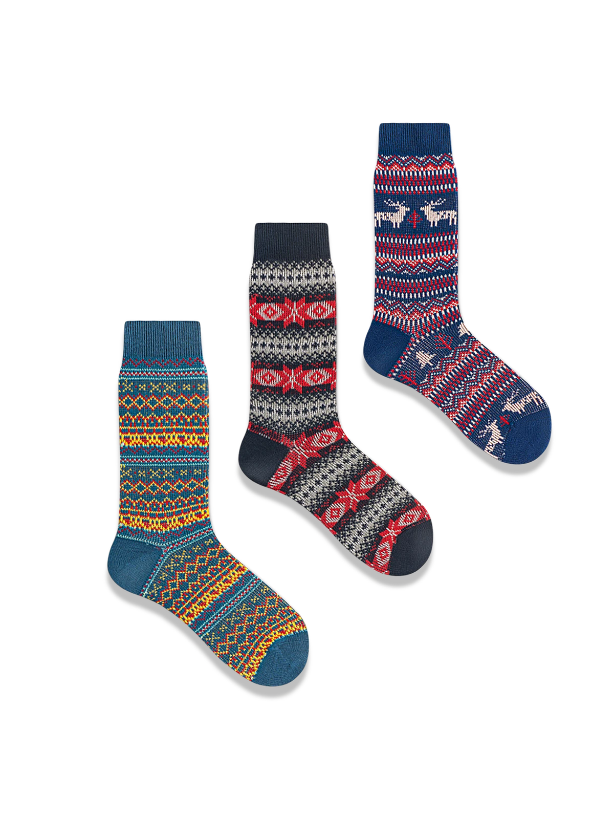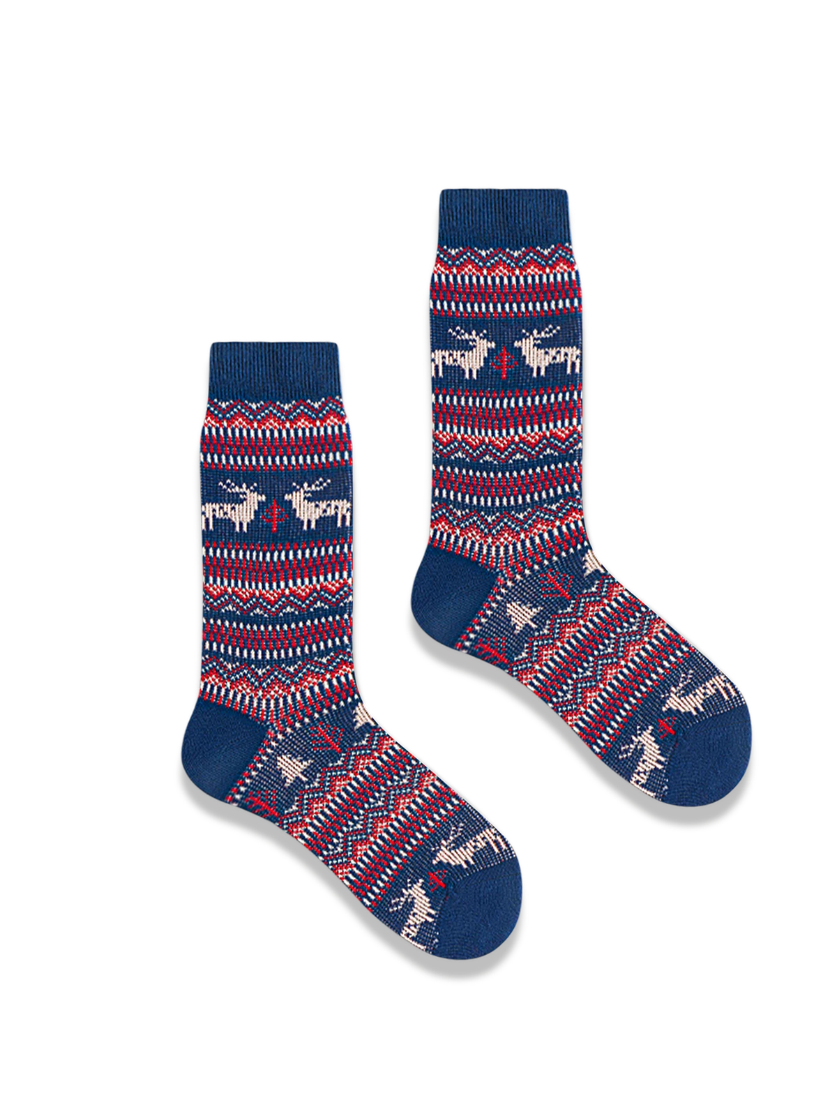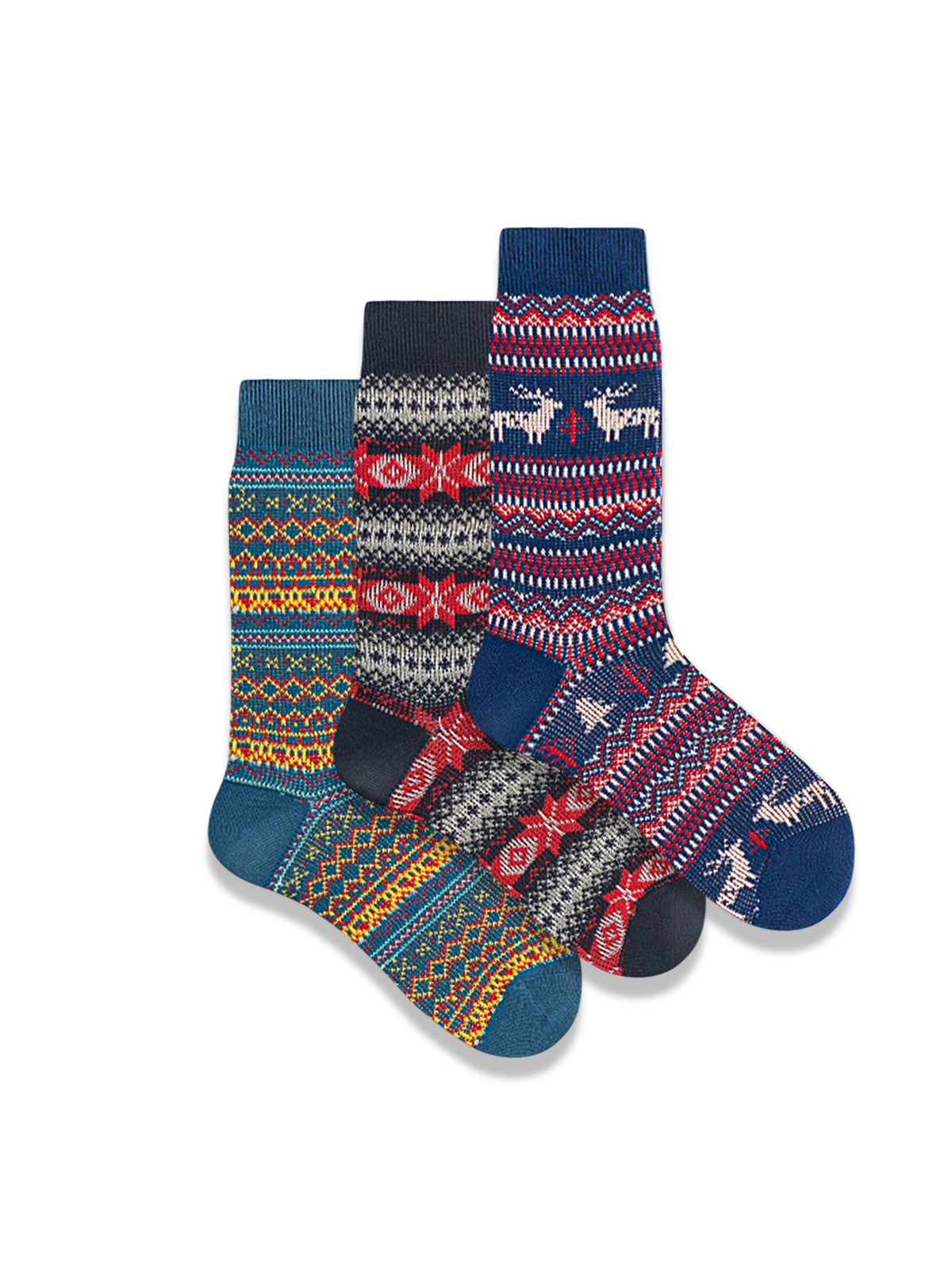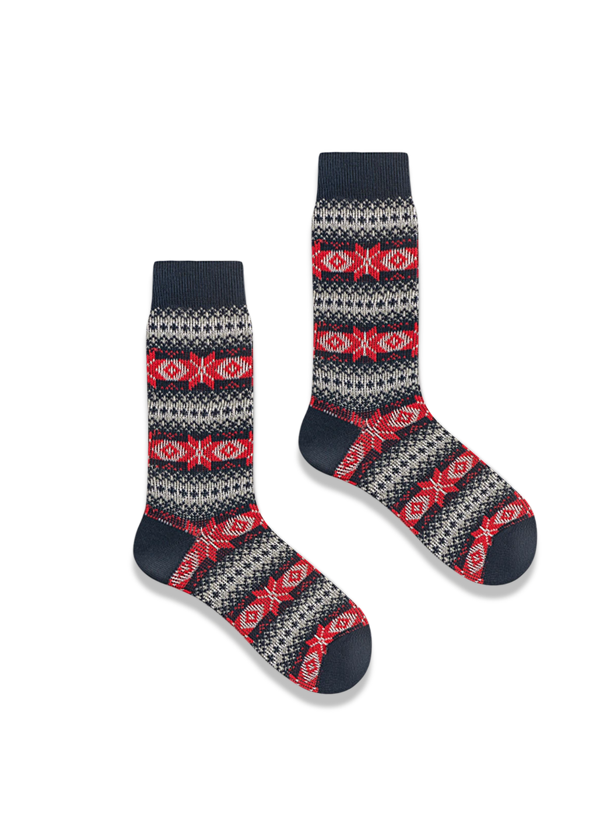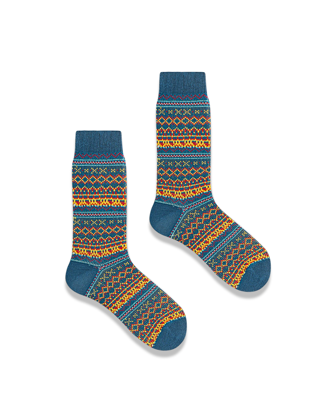 鮮やかな色合いの民族風デザインに、ソックスのつま先部分に対照的な色を加えることで、スタイリングに簡単にアクセントを加えることができます。ソックスの口元は厚めの弾力性を持たせ、ぴったりとフィットし、脚の形にしっかりと沿います。