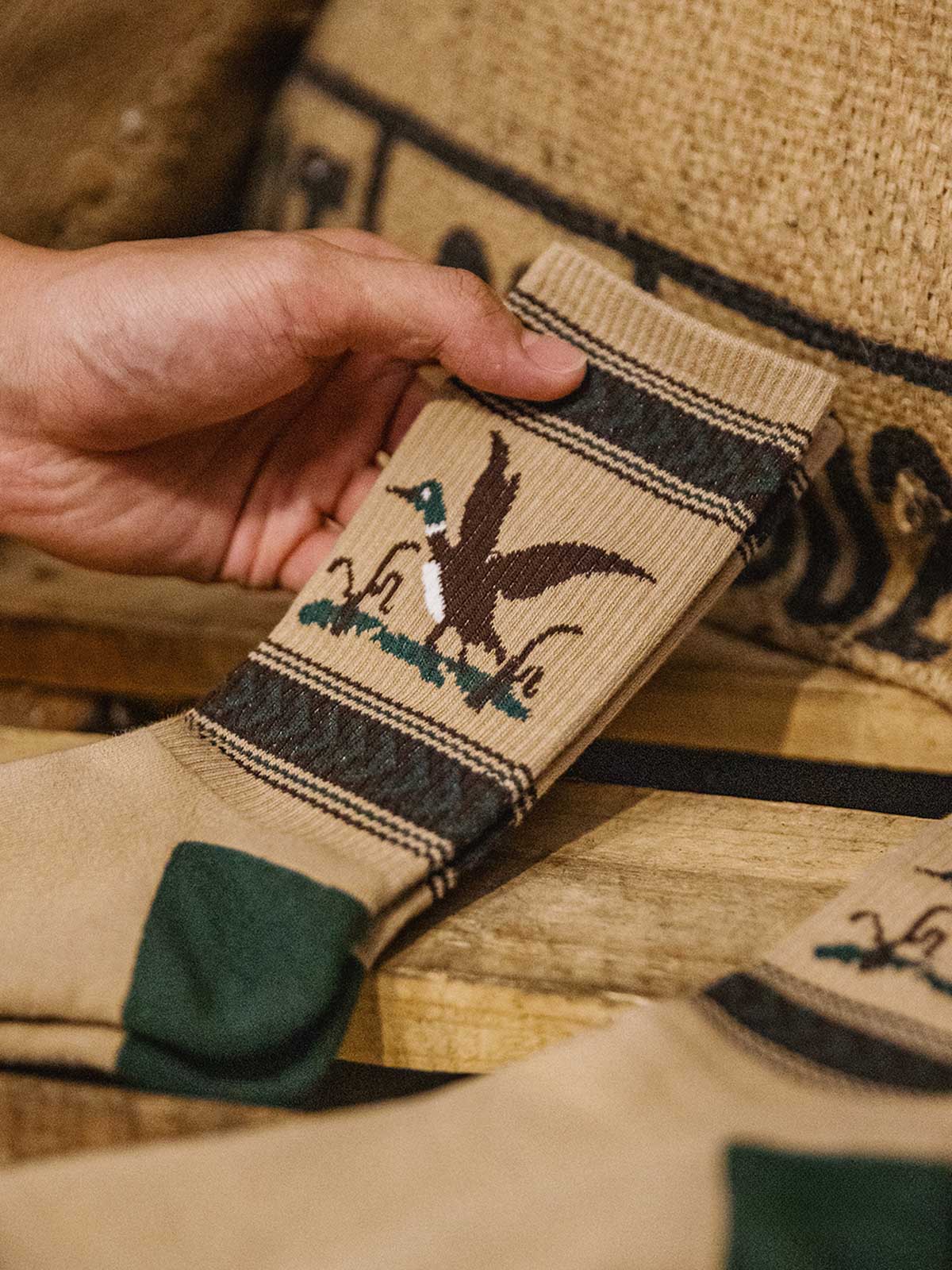ヴィンテージパイルクルーソックスは、クラシックな雁柄を取り入れたデザインで、日常のスタイルにレトロなアクセントを加えます。82.7%のコットン、ナイロン、ポリウレタンを組み合わせた混紡素材で、柔らかさと高い伸縮性を実現。200本パイル編み技法により、耐久性があり、型崩れしにくい作りになっています。クルー丈デザインで、ワークブーツやスニーカーとも相性が良く、パンツの裾をロールアップすることで、スタイリッシュな足元を演出。履き口は優れた伸縮性を持ち、締め付け感なく安定した履き心地を提供します。立体的なヒールデザインで、耐摩耗性も向上し、アウトドアや日常使いにも最適です。