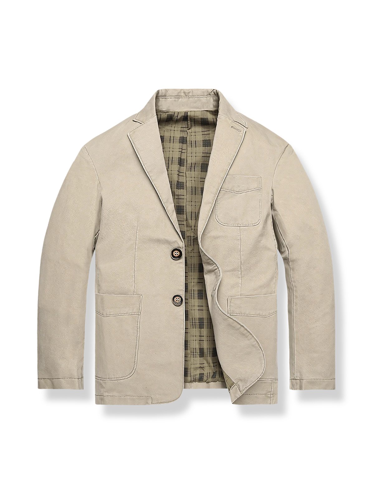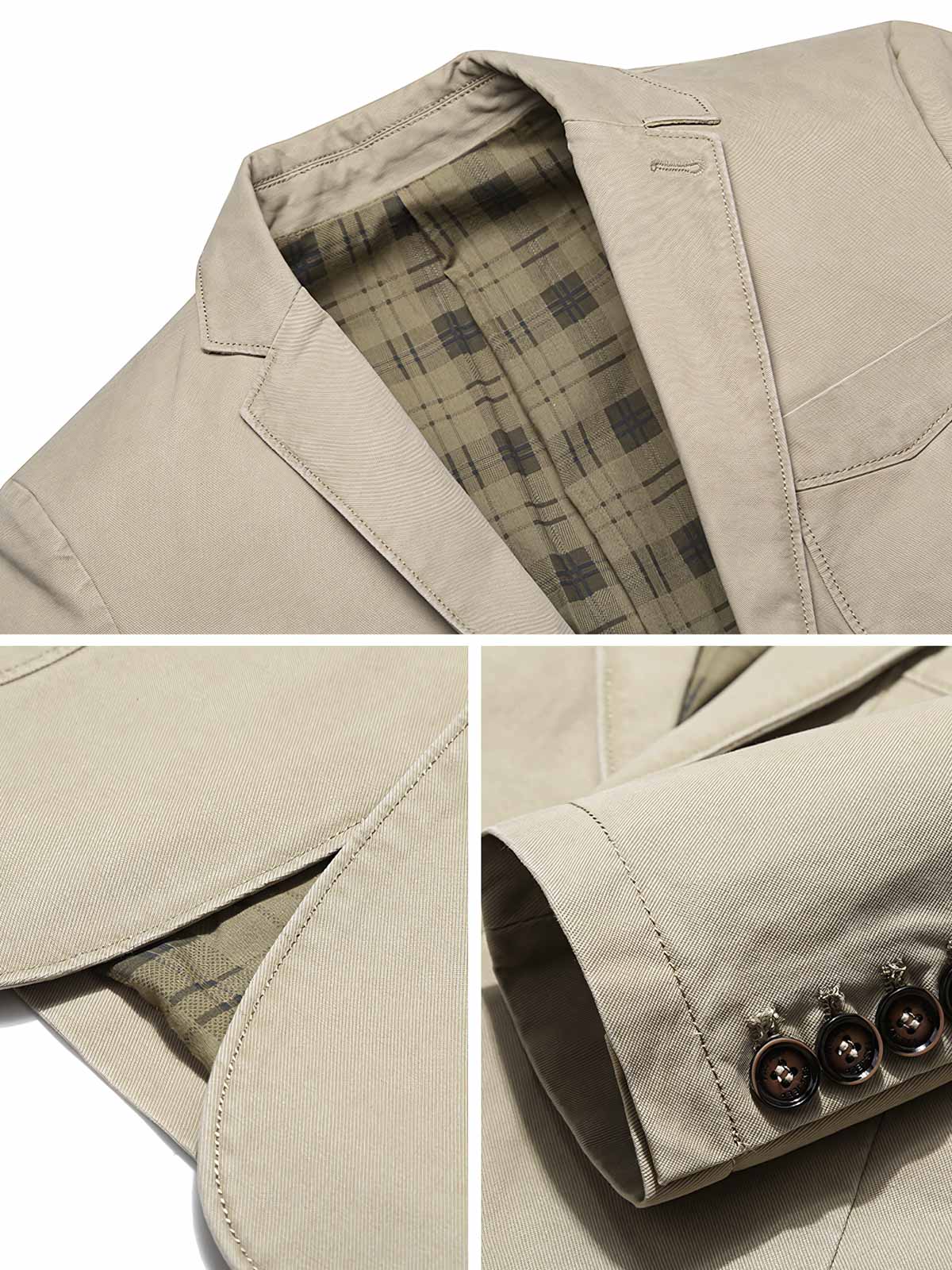 日常着における快適さと柔軟性を考慮して仕立てられたこのスーツは、さまざまな体型にフィットします。適度なスーツの襟デザインと非構造化された肩のカットは、品格を保ちながらもリラックスした着心地を提供します。内側のチェック柄は洗練されたファッション感覚を加えると同時に、通気性と快適さを確保します。