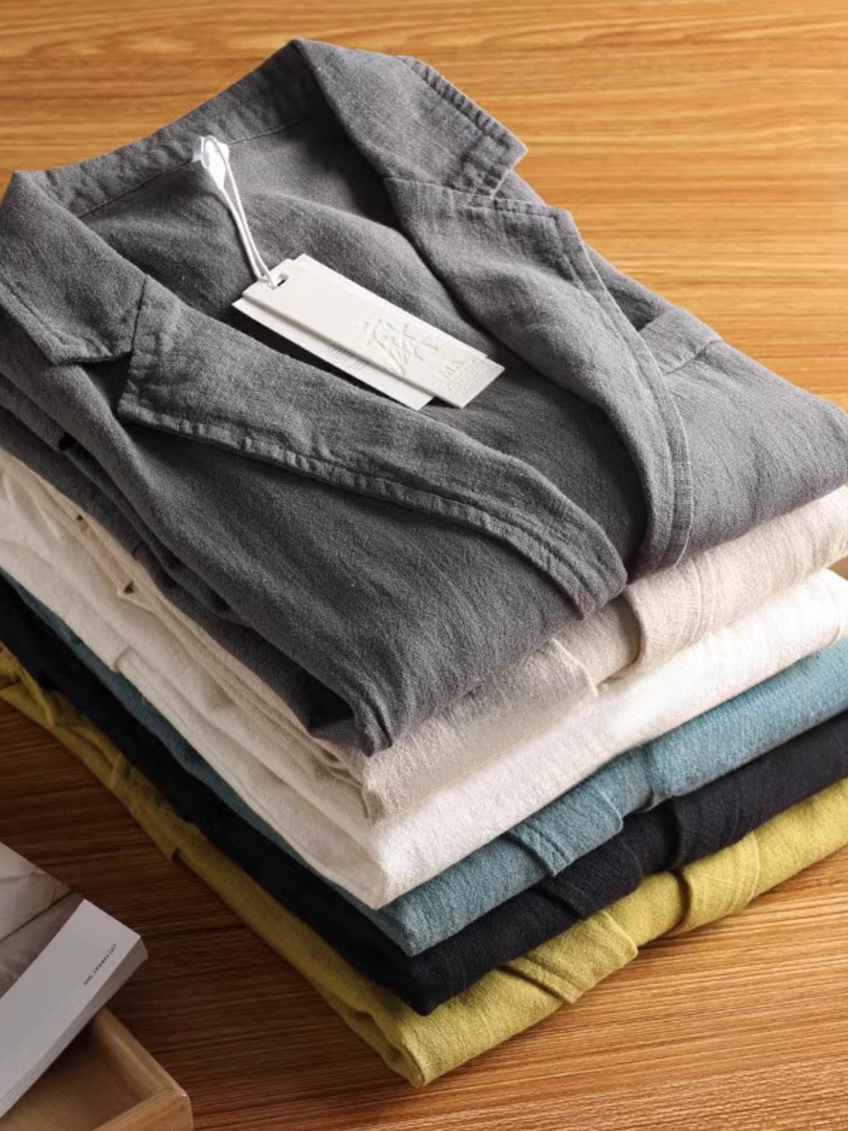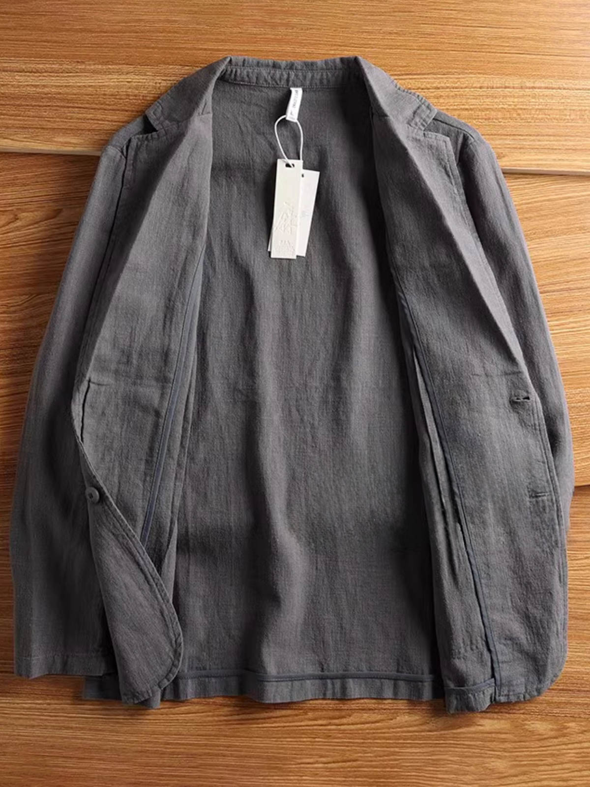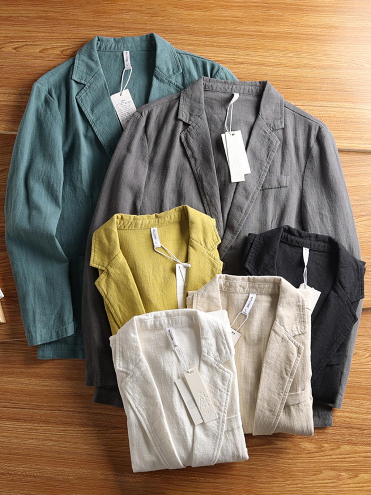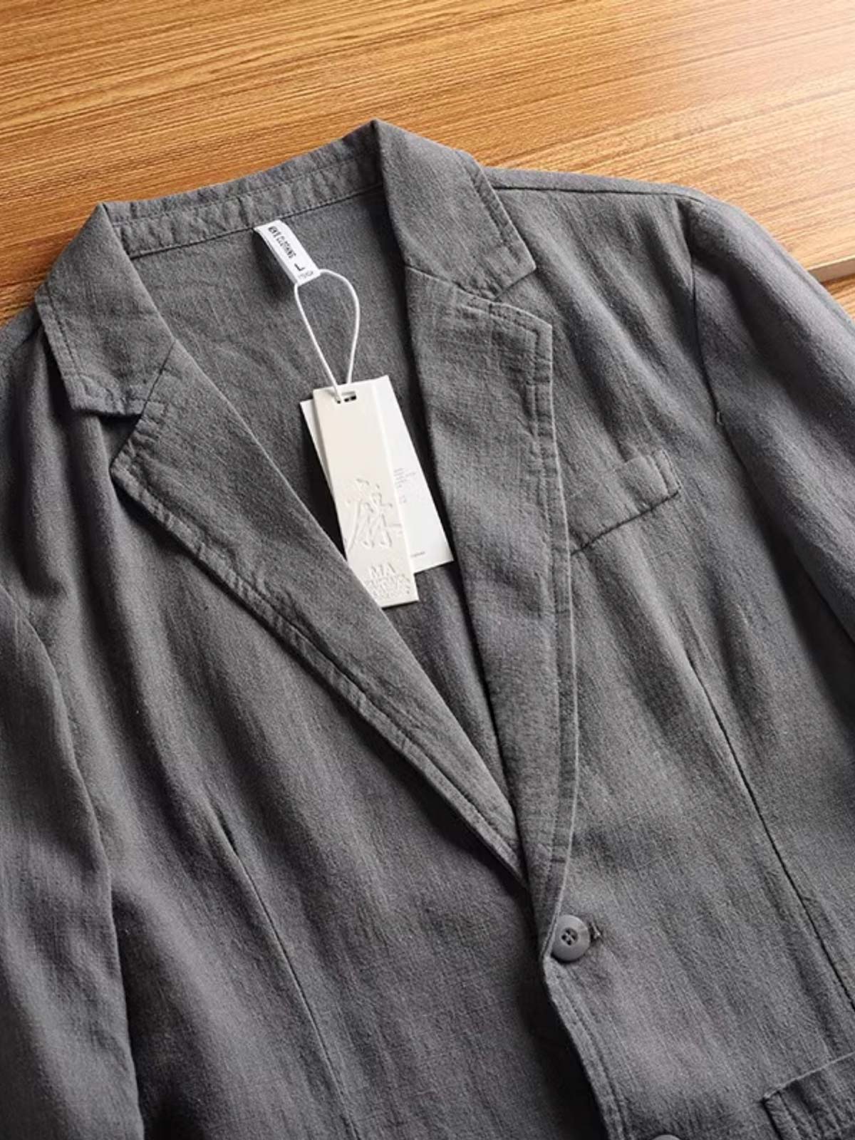 このジャケットは、アメリカンカジュアルスタイルを取り入れ、カラムシとコットンの混紡素材を使用したデザインです。ガーメントウォッシュ加工により、素材の質感を強調し、柔らかな手触りと上品な風合いを提供。クラシックな2つボタンとパッチポケットのディテールが、シンプルながら洗練されたシルエットを演出します。さまざまなシーンで活躍し、単品での着用はもちろん、レイヤードスタイルにも最適。豊富なカラーバリエーションから好みに合わせて選べる一着です。