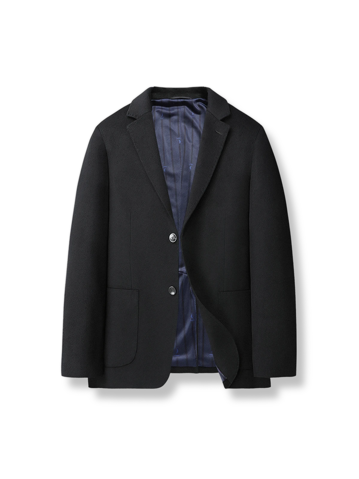 このジャケットは、クラシックな英国スタイルのカッティングを継承し、紳士服の文化的象徴を体現しています。ディテールには、標準的な折り返し襟とシンプルなボタンの閉じ方が採用され、伝統的なスーツの精髓を表現しています。また、ポケットやボタンホールの技術的なディテールも職人の精神を反映しています。