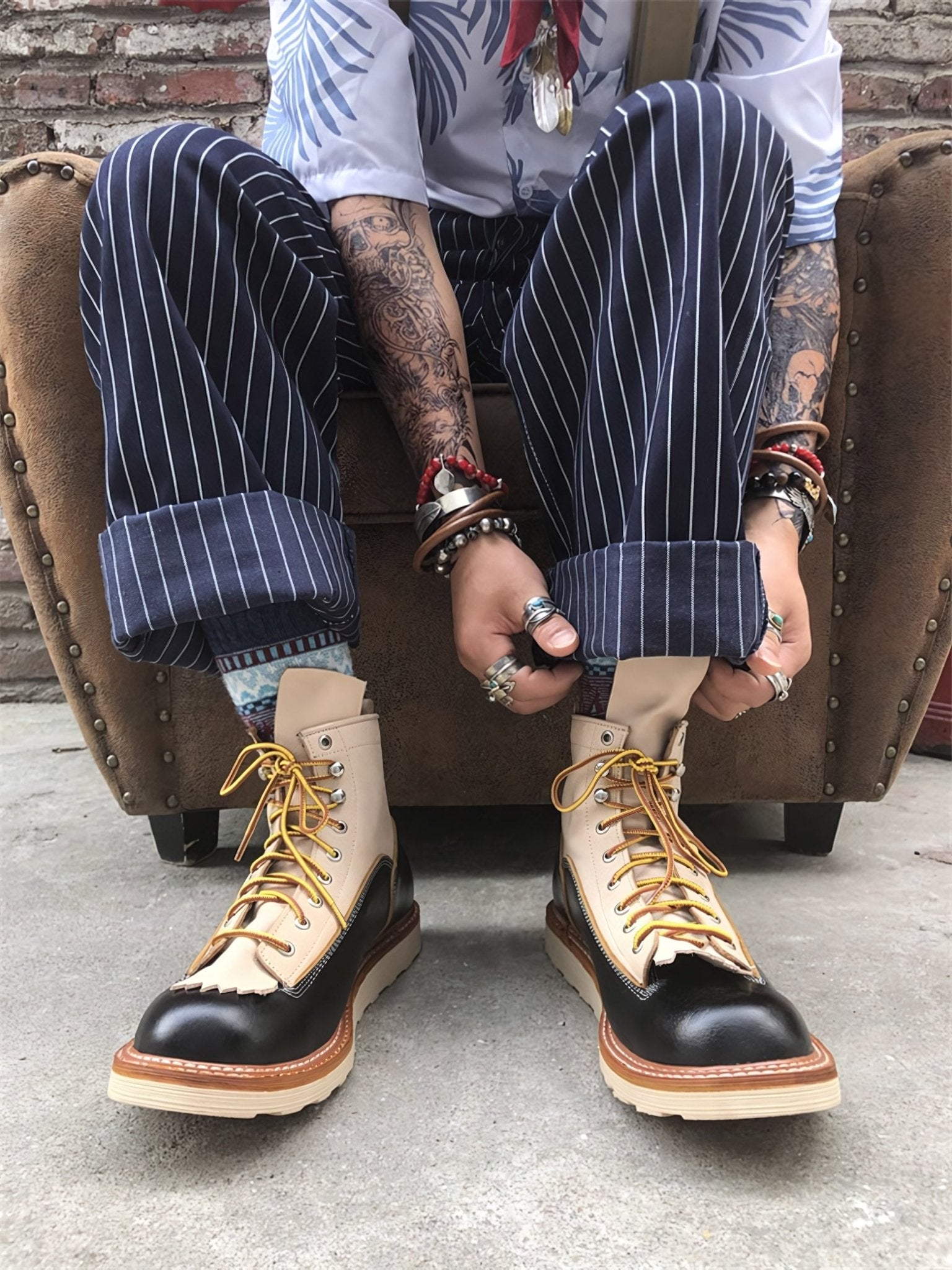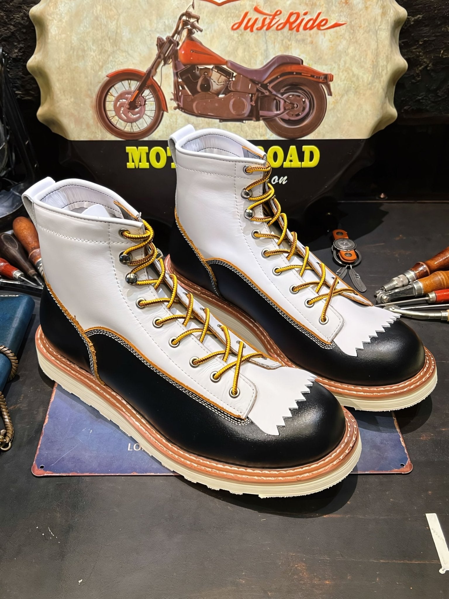 バイクブーツは「ライディングブーツ」とも呼ばれ、バイクの運転時の安全性と快適性を考慮して設計された靴です。重要なアイテムとされるバイクブーツは、ヘルメットの次に重要で、バイクに乗る方にとって欠かせない存在です。ハンドメイドで製作された究極の一品で、絶妙なカラーリングが魅力的です。