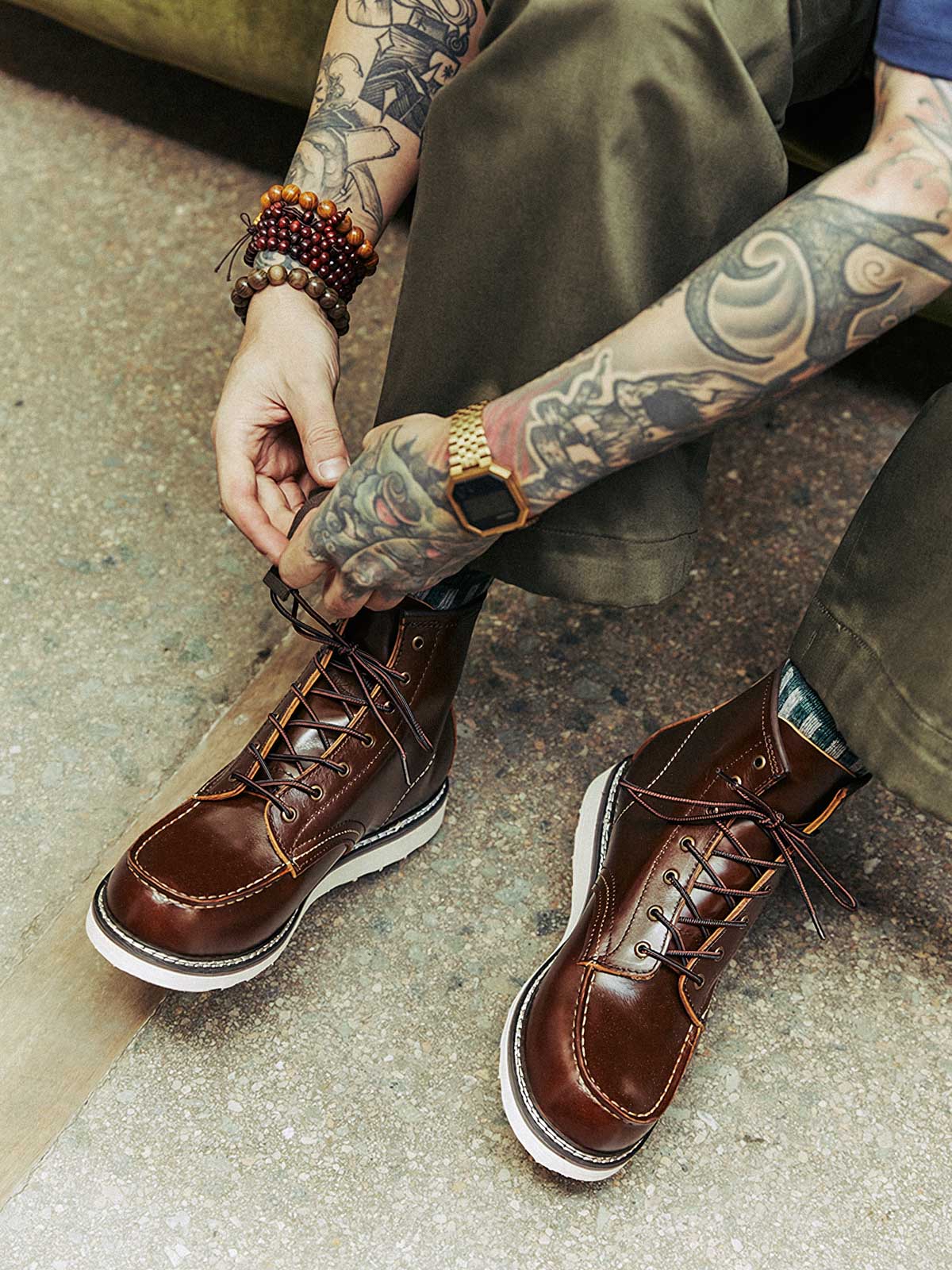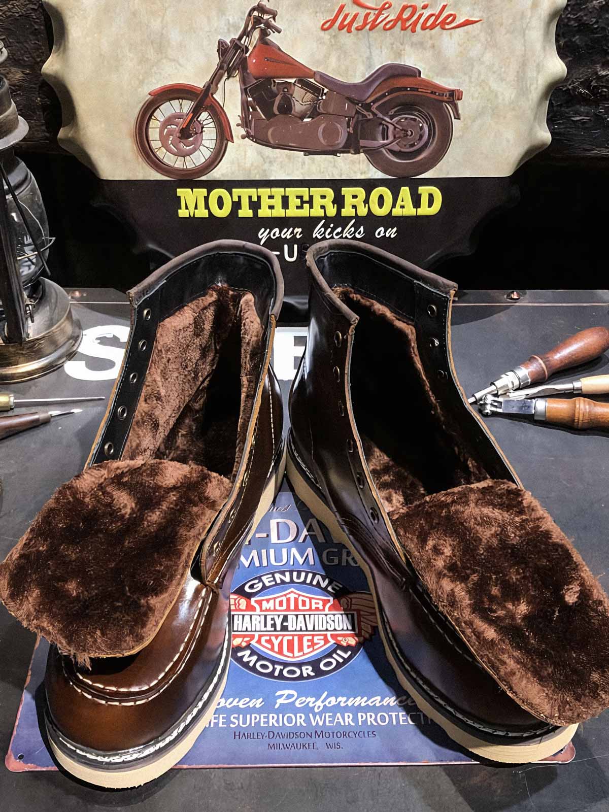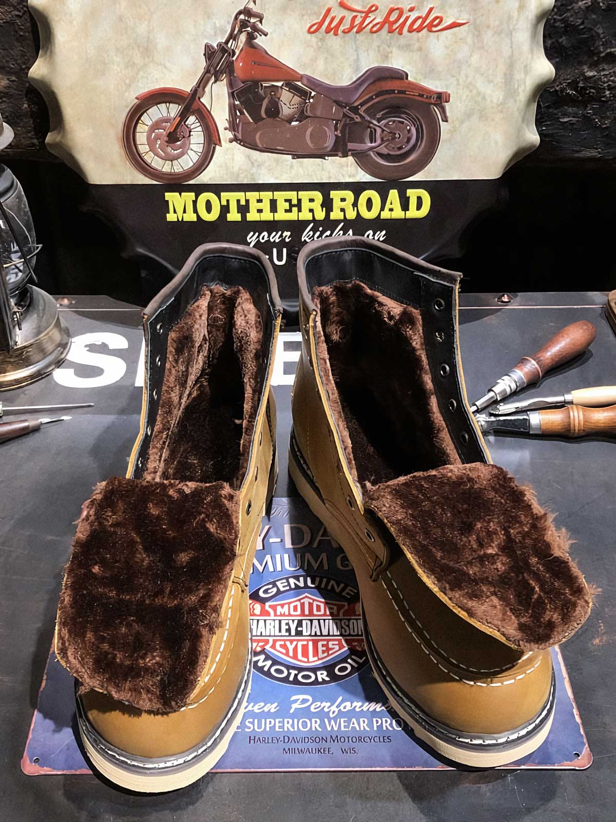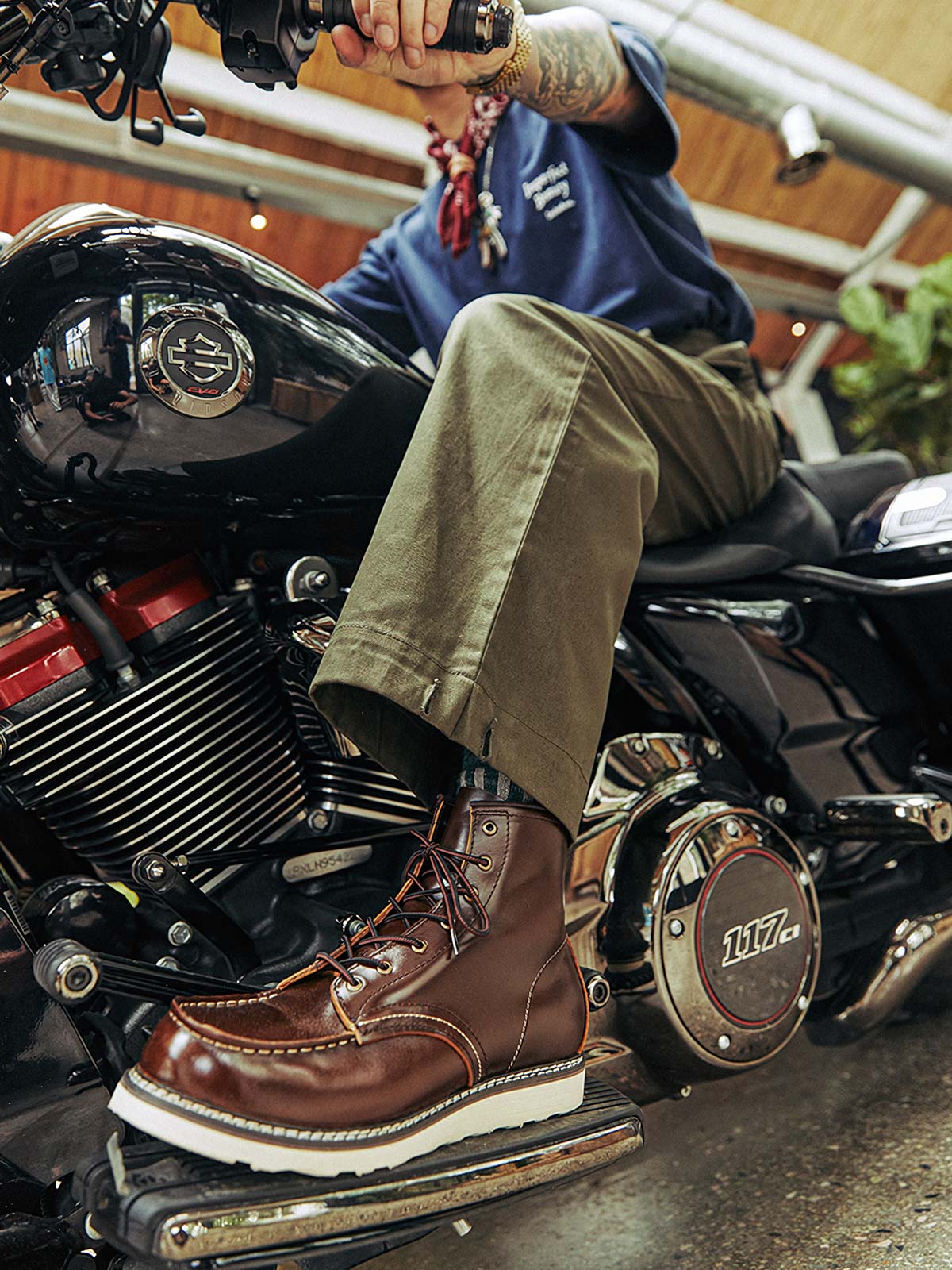 このワークウェアブーツは、伝統的なデザイン要素を採用し、現代の工芸技術で製作されています。ショートタイプのデザイン(筒の高さ10-20cm)は着用の便利さとファッション性を兼ね備えています。台湾の泰慶皮革工場の最高級の茶芯牛革を使用し、靴にレトロな外観を与えつつ、耐久性と快適さを提供しています。