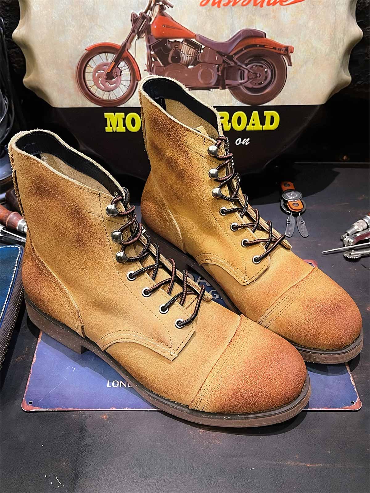 8113型パラトルーパーブーツは、深い歴史的背景を持つワークブーツスタイルのブーツで、そのデザインはクラシックな軍用ブーツにインスパイアされています。Burlapスエードを使用しており、この高品質素材は一般的なスエードよりも厚みがあり、素材選択における厳格な基準を示しています。8113型パラトルーパーブーツは、パラトルーパーブーツの堅牢な外観と頑丈な構造を継承し、卓越した耐久性と足の保護を提供します。独自のクイックフックデザインは811Xシリーズの利便性を反映しており、着用時のスピードと便利さを向上させています。