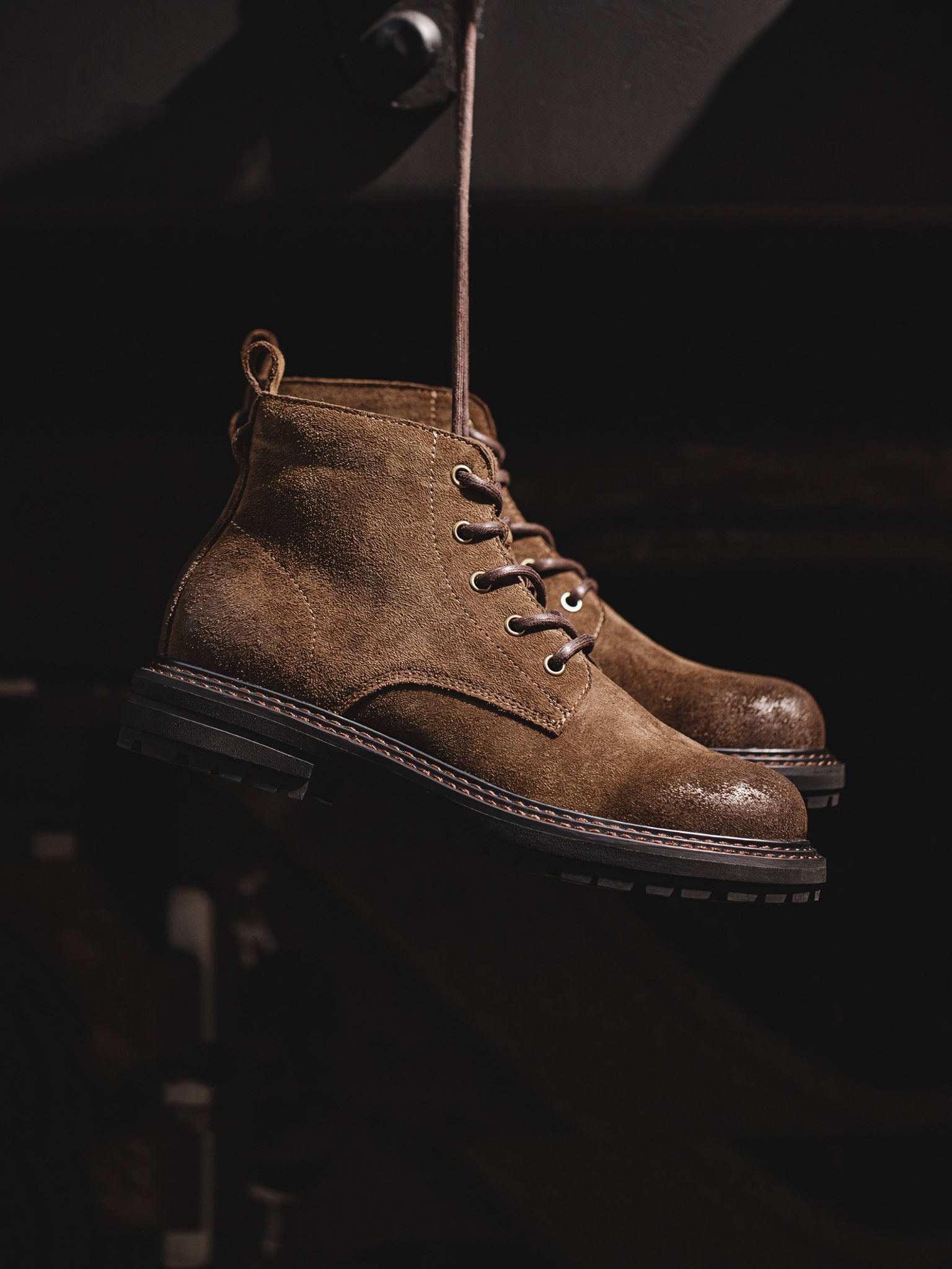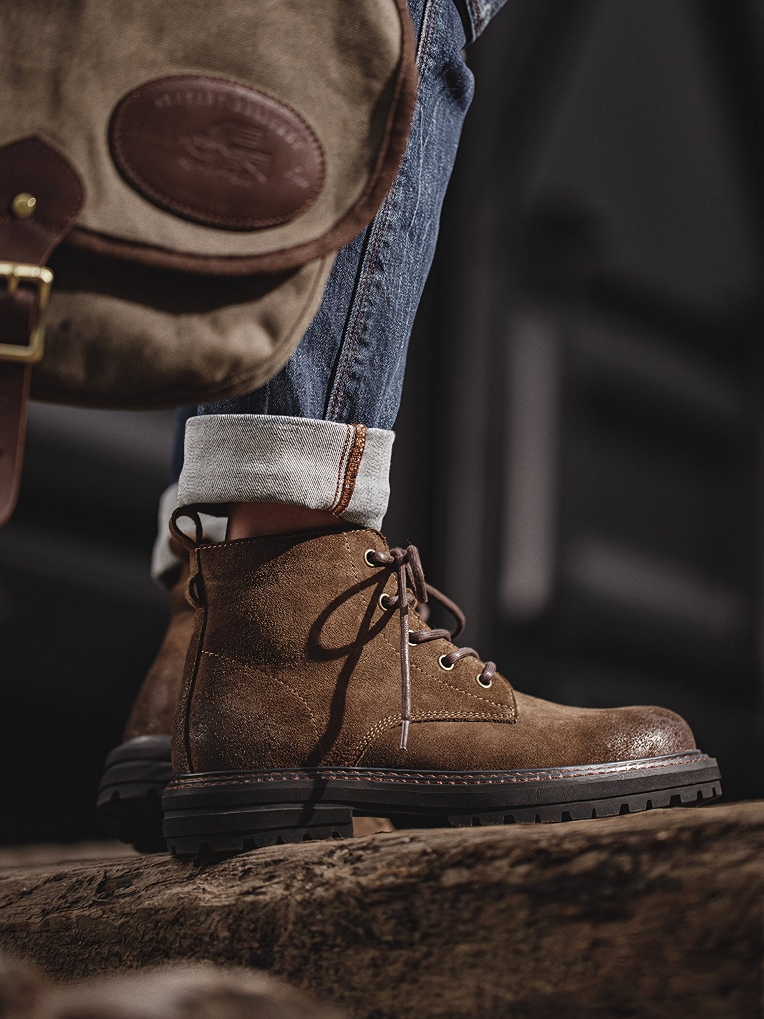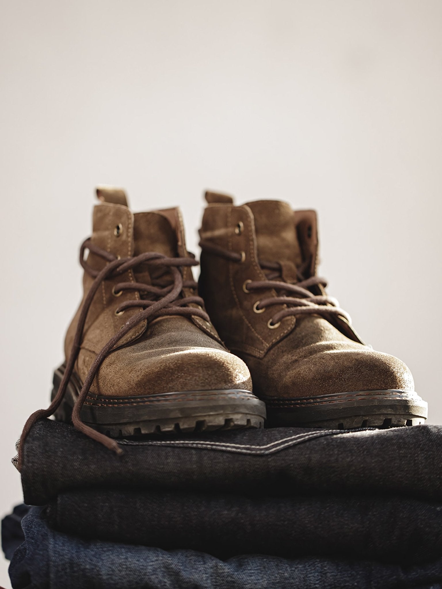 新作として、レザー素材の選択から工芸、靴型に至るまで、こちらのアイテムには色々な工夫と改良を重ねました。厚手のソールはこのワークブーツの特徴であり、靴型はワークブーツの魂です。靴の形状と快適さにおいて重要な役割を果たします。さらに、二種類のワックスがけされた靴紐を用意しており、お客様にはその組み合わせを楽しんでいただけます。