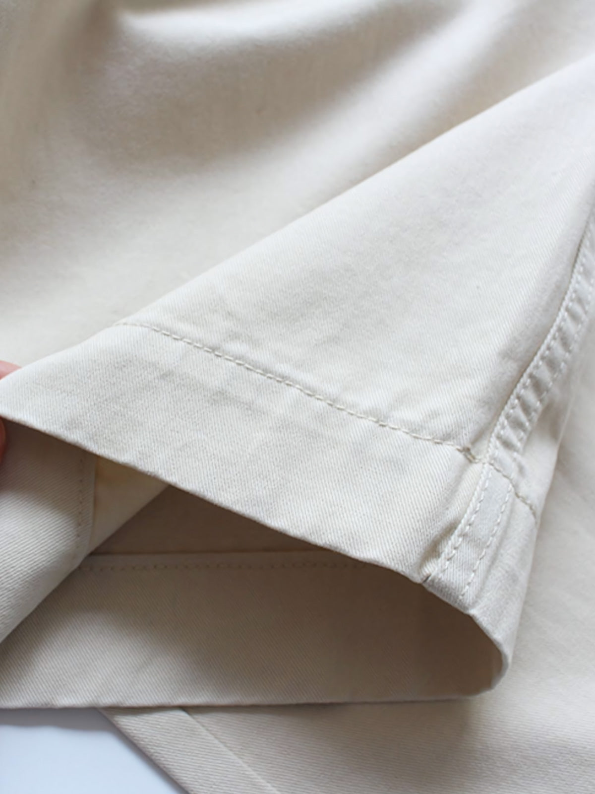 リラックスフィットの設計が快適さと動きやすさを提供し、日常着に特に適しています。ウォッシュ加工されたツイル生地は、柔らかさと快適さを高め、視覚的および触感的な独特の質感をもたらします。