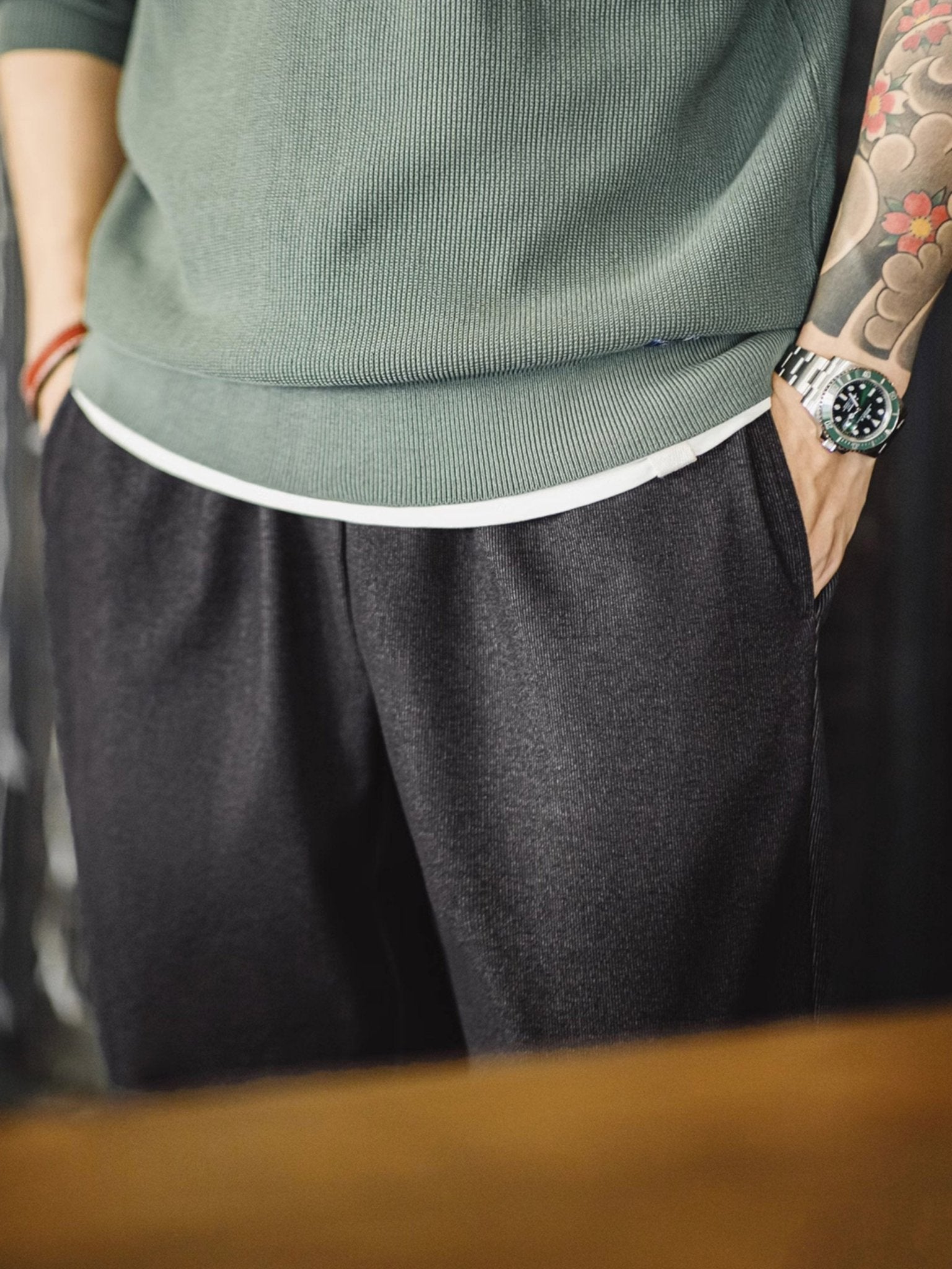 410g/mの混紡ウール生地を使用し、三角形の針状ブラッシング技術と組み合わせて、生地をより細かく堅牢にしました。この技術により、ウール生地は独特の3Dプロパティを持ち、パンツに立体感を与えます。