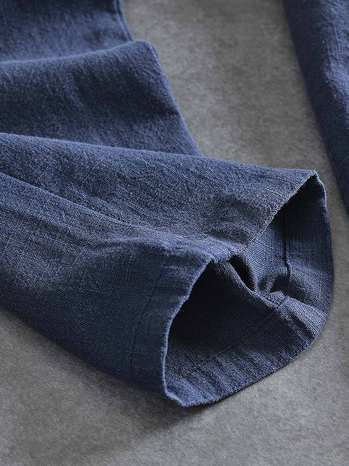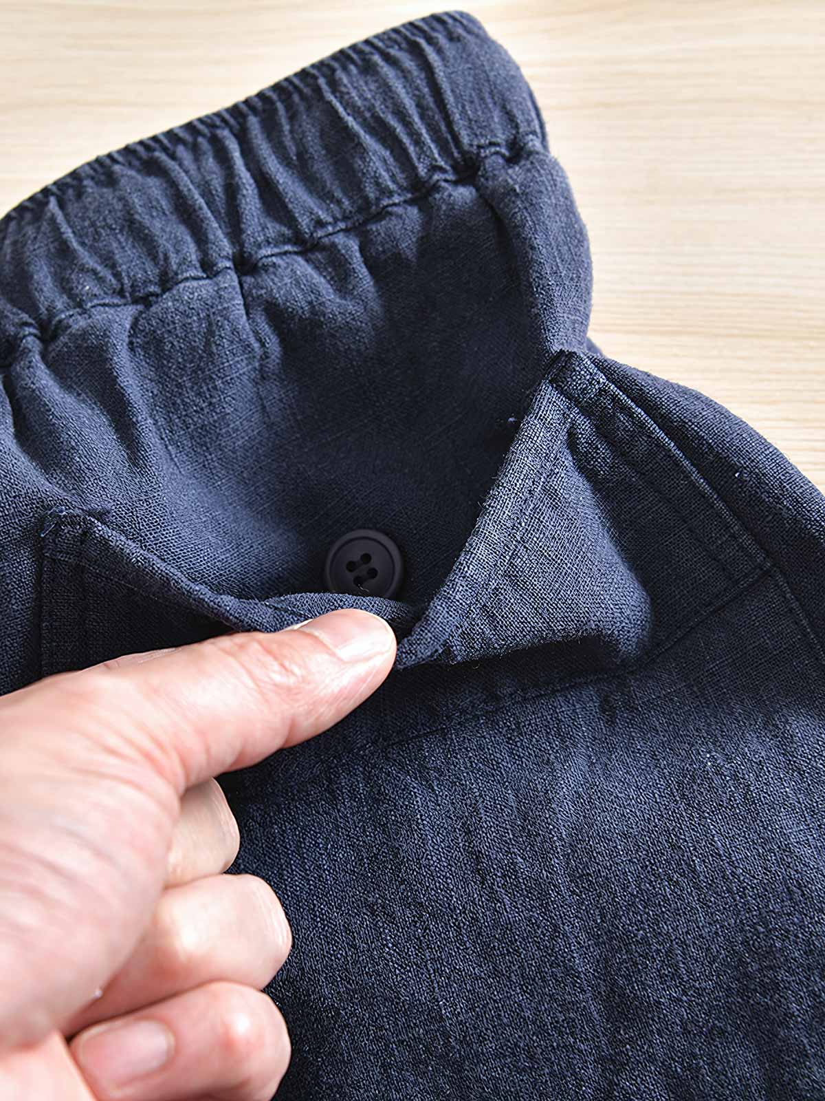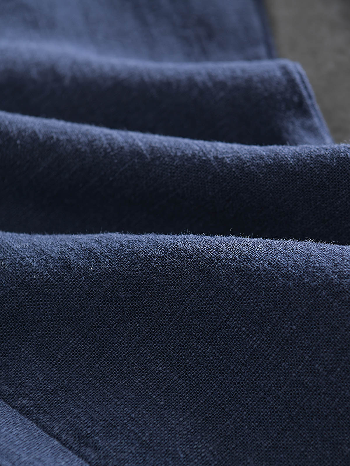 生地には70%の麻と30%の綿の混紡素材を使用しています。麻の自然な特性により、生地は涼しく通気性があり、夏でも快適な着用感を提供します。同時に、綿の添加により生地は柔らかくなり、一定の弾力性と耐久性を備えています。